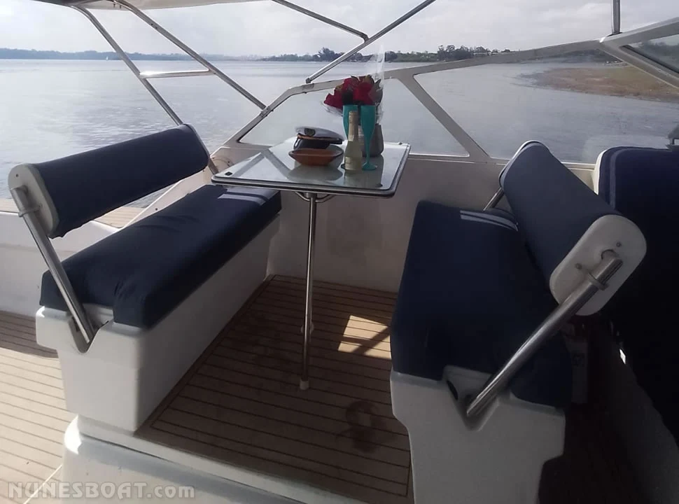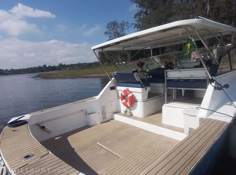 CÓD 4601 MARES 30: 1992, 2x mwm sprint 229 250hp, diesel, 150hs de uso, 30 top e 18 cruzeiro, pé de galinha, âncora, bateria, bomba de água doce, (3) bombas de porão, bússola, capota, carreta de encalhe, churrasqueira, chuveiro, (16) coletes, (2) defensas, defletor de radar, direção hidráulica, (2) extintores, flaps hidráulicos, geleira, guincho elétrico, rádio vhf, sanitário comum, teca eva... F/c. Nunes (13)99706-0395