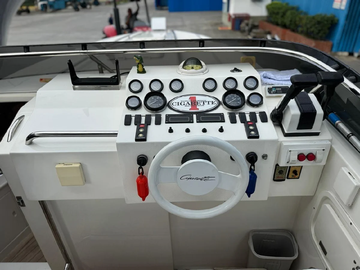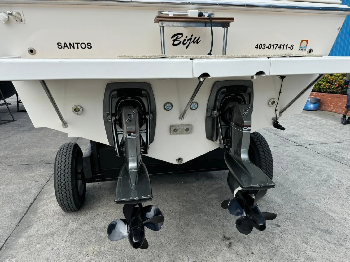 Intermarine Cigarrete 36 Ano: 1989 Carreta rodoviária 2 motores AQAD 41 Porões pintado na cor branco Âncora de aço inox com guincho elétrico Água quente com misturador em todos os pontos do barco Geladeira elétrica (12v e 127v) Inverter Xantrex Rádio VHF Rádio Am/Fm GPS Garmin com carta náutica + ecobatímetro Privada elétrica O barco se encontra na Marina Porto Astúrias - Guarujá. É de nossa propriedade por 20 anos e está completamente revisado.