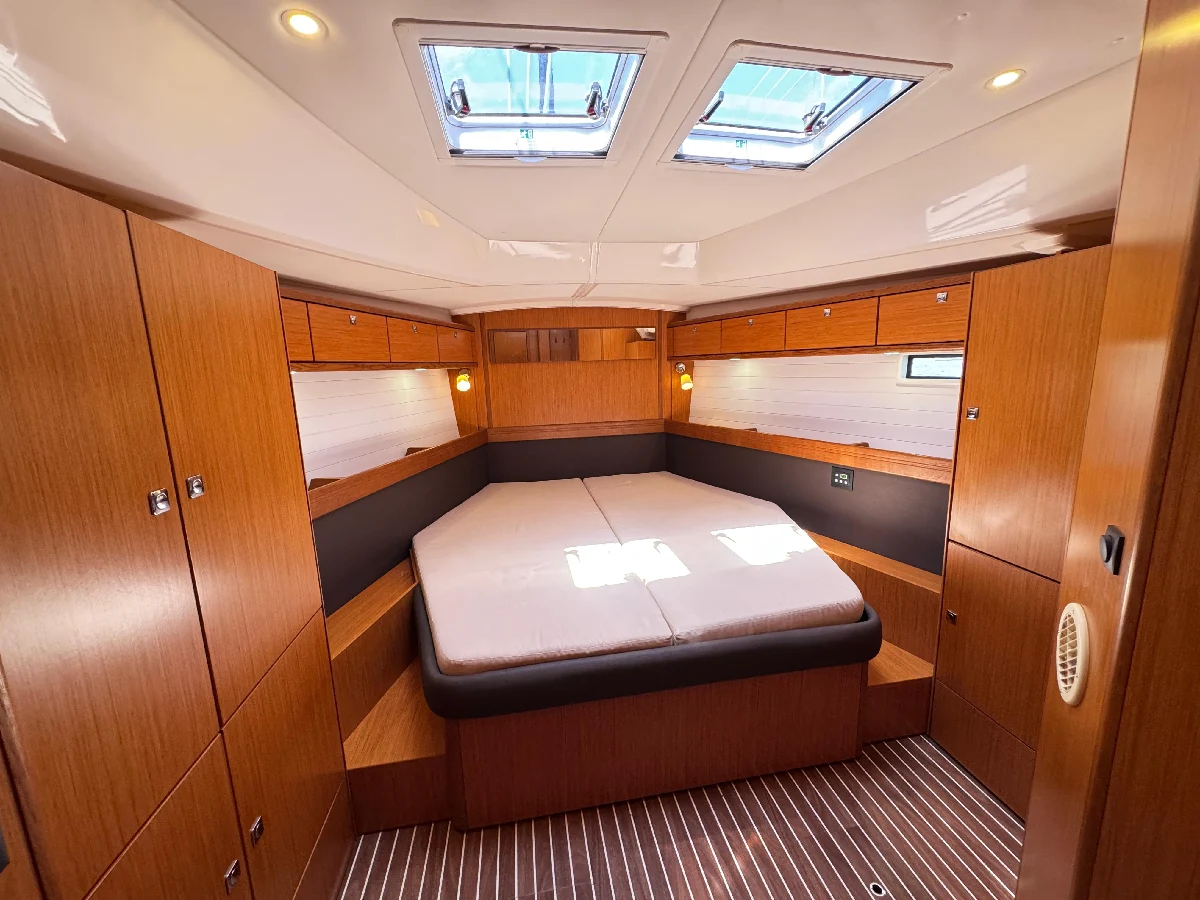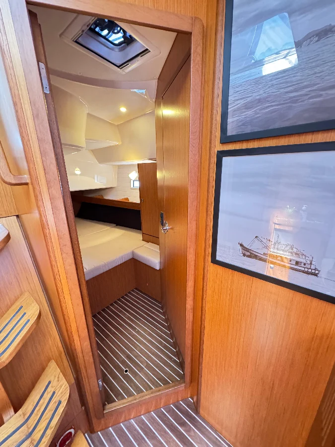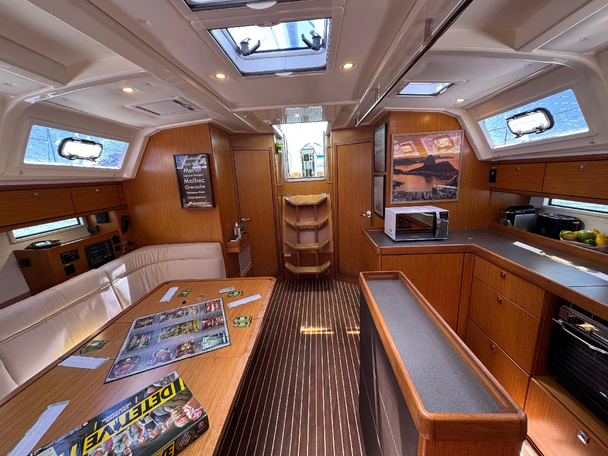 Parceria com a SAILBROKER Bavaria Cruiser 46 Eleito European Yacht of the Year 2015 na categoria Family Cruiser, o Bavaria 46 é um dos modelos mais premiados da marca: muito espaço, conforto de casa e segurança para travessias longas. O barco acomoda até 6 pessoas. A suíte master na proa é enorme, com banheiro dividido em duas áreas, e as cabines de popa também têm camas de casal e banheiros privativos. O salão é super iluminado, tem pé-direito alto, cozinha completa e acabamento em madeira nobre. No convés, destaque para o cockpit espaçoso, com mesa em teka e dupla roda de leme em fibra de carbono. A plataforma de popa vira um verdadeiro deck de praia, perfeita para banho de mar e embarque no bote. Projetado pelo Farr Yacht Design e construído pela Bavaria, é um veleiro que une performance, robustez e bem-estar. Histórico recente • Segundo dono, comprado em outubro/2023. • Desde a chegada ao Brasil, o barco foi pouco utilizado, o que se reflete nas baixas horas de motor (816 h). • Logo após a compra, passou por uma grande reforma no Iate Clube do Rio, incluindo elétrica, hidráulica, capotaria, mecânica, estofamento, janelas e teca. • Há 4 meses, após a substituição do hélice, a rabeta foi vistoriada na Píer Boat (Guarujá) pelo Wagner, referência nº1 da Volvo Penta no Brasil. Aproveitando a ocasião, o proprietário investiu mais de R$ 35 mil em peças preventivas (discos, anel de acoplamento e outros componentes fundamentais). • A última manutenção foi em 12/09/2025, com a troca das duas bombas de água dos aparelhos de ar-condicionado (instaladas Syllent novas). ? Hoje, o barco está 100% pronto para navegar, sem nada pendente. Localizado no Rio de Janeiro e disponível para visita, é só agendar. Valor: R$ 1.950.000,00 Abaixo segue o inventário completo e ficha técnica. Modelo: Bavaria 46 Cruiser Fabricante: Bavaria Yachts (Alemanha) Projeto: Bruce Farr / Farr Yacht Design Ano de construção: 2015 Comprimento total (LOA): 13,60 m Linha d’água (LWL): 12,90 m Boca (Beam): 4,35 m Calado (Draft): 2,18 m Deslocamento: 12.254 kg Capacidade de água: 360 L Tanque de diesel: 210 L Material do casco: Fibra de vidro Estaiamentos: Originais Mastreação: Seldén Pintura de fundo: feita em maio/2025 (1 demão de primer Intergard + 5 demãos de antifouling International UN1263 – AkzoNobel) Velame • Vela Mestra em Dacron, enrolar no mastro Seldén, com capa UV/UVA • Genoa em Dacron, enrolador Furlex 304S, capa UV/UVA • Gennaker em nylon, nunca utilizado (original, no saco) Motorização • Motor Volvo Penta D2-75 F (turbo), 816 h • Transmissão: Rabeta modelo 150S • Hélice fixa de 3 pás (Volvo Penta), instalada em ago/2025 • Bateria do motor: Heliar 100 Ah Eletrônicos e Navegação • Garmin GPSMAP XS (touch screen) integrado a radar, AIS e piloto automático • 2 displays multifunções (vento, velocidade, profundidade, etc.) • Rádio VHF Garmin GHS i (fixo, interno) • Rádio VHF Garmin GHS 20 (portátil, base de carga no leme bombordo) • Antena Statlink Sistema Elétrico e Equipamentos • Gerador Cummins Onan 7,5 kVA – 897 h (bateria Heliar 100 Ah) • Baterias de serviço: 3 Freedom Estacionárias 115 Ah • Inversor Knup KP-586, 3.500 W • Iluminação 100% LED (substituída em fev/2024) • Ar-condicionado: • 1x Dometic 16.000 BTU (salão + suíte de proa) • 1x Dometic 10.000 BTU (suítes de popa) • Eletrodomésticos: Freezer Isotherm 12 V, Geladeira Waeco, Micro-ondas Panasonic 21 L (127 V), Torradeira Electrolux TSN10 (127 V), Cafeteira Nespresso D62 (127 V) • Bombas: • Pressurização Jabsco Par-Max 2.9 (12 V) • Chuveiros Whale Gulper IC (12 V) • Porão Jabsco Par-Max (12 V) • Sanitários: 3 vasos elétricos TMC (12 V, um em cada suíte) • Plataforma de popa elétrica (subida/descida) • 2 catracas elétricas Lewmar 55” (escotas da genoa) Acessórios • Capotaria completa: Bimini + Dog House (Pepe Capas) • Capas de proteção: Dog House / Convés / Cockpit (Pepe Capas) • Bote de apoio Zefir 2,10 m (fundo rígido + capa UV/UVA) • Motor de popa Mercury 5 hp • Fogão a gás 2 bocas + forno (original) • Churrasqueira Magma inox • 2 pranchas de stand-up paddle (com capas térmicas e remos) • Catracas manuais Lewmar 45” (adriças, mestra, esteira, burro e sistema leva-e-traz) • 10 stoppers Spinlock • Moitões e ferragens Seldén Atracação e Fundeio • Âncora Bruce 20 kg • Guincho elétrico Quick • Corrente 100 m • Espias e defensas Salvatagem • Kit obrigatório completo • Balsa salva-vidas Documentação • Área de navegação: mar aberto / costeira • Capacidade máxima: 10 + 1 pessoas • Situação: toda em dia