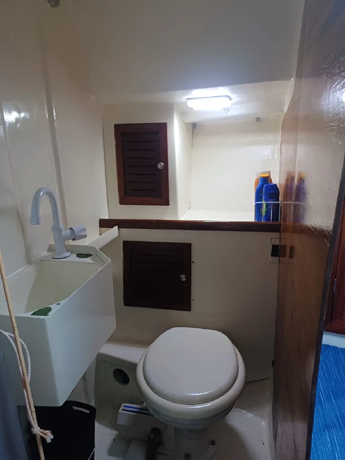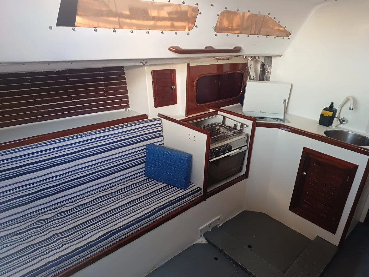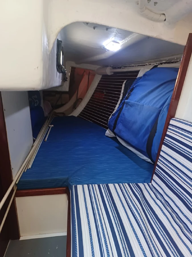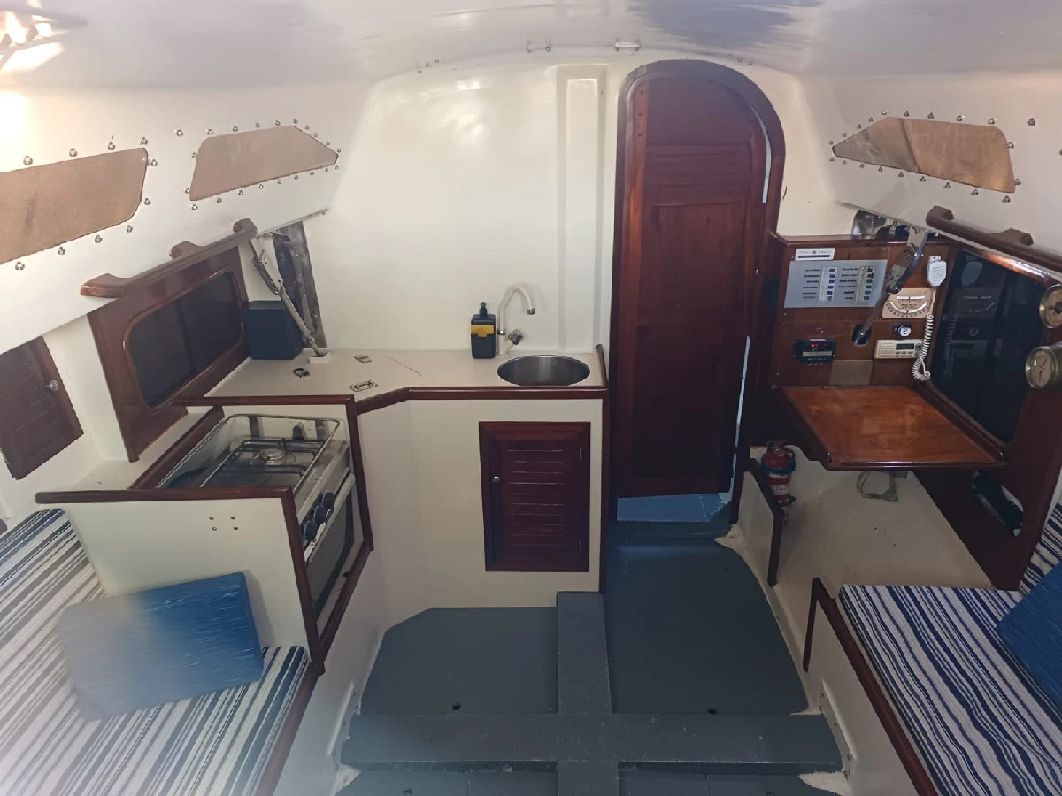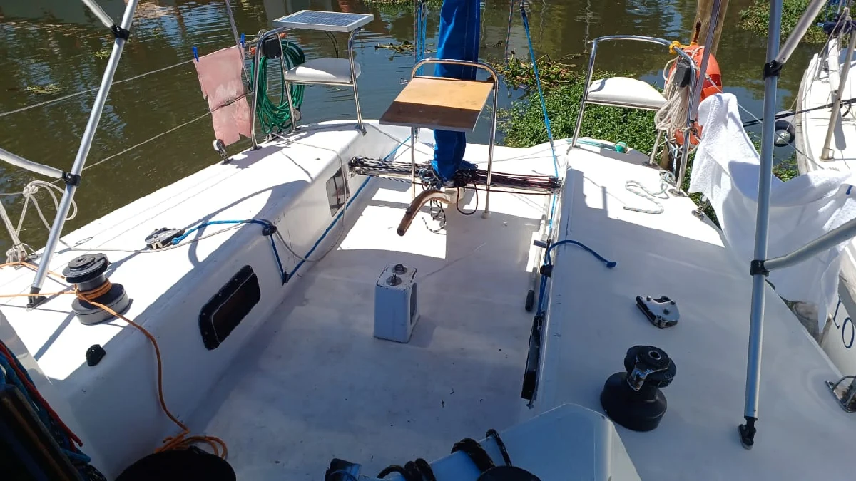 Veleiro fabricado pela Fibramar - 34 Pés Projeto Hon Holand (mesmo projetista do Fast345, Fast Halt Tonner, Cal 9.2) Ano 1981 Geladeira 12V WC Eletrico Bomba Pressurizadora de Água Bomba de Porão Fogão 2 Bocas c/forno Luminárias em Led Interior reformado todo em fibra de vidro 2 Tanques de Água de 75Lts cada em fibra Piloto Automático Autohelm 2000 Dephy HawkEye Rádio VHF Placa Solar C/controlador 4 Baterias, 60Ah/motor e 3x90ah/serviço (Estacionária) Vela mestra Triradial Dacrow Nova Quantun Sails Genoa 1 Dacron Triradial Nova Quantun Sails Balão Novo Quantun Sails Vela mestra Dacron Sobstad Genoa 3 Prolan Genoa 1 Prolan Genoa 1 Dacron Balão Lazy Jack Bimini Churrasqueira Mesa p/convés 2 Catracas Lewmar c/Self n°42 2 Catracas Lewmar c/Self n°30 8 Stoppers Spinlock Ancora arado c/10m corrente e 30m de cabo 30m de cabo de ancora extra Motor Yanmar 3Cilindros Helice Folding Caixa de Ferramentas Pintura de fundo em Nov/25 Pintura de Costado em Nov/22
