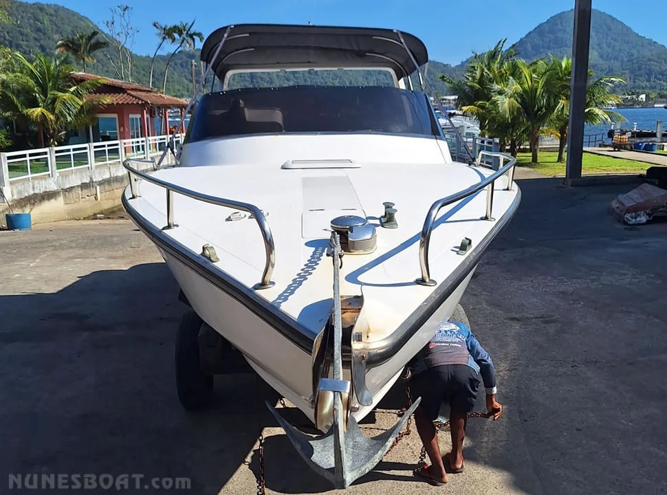 CÓD 5655 PANTHER 33: 1987, 2x vp aqad 41 200hp (revisão feita em dezembro 2025), diesel, 720hs de uso, 38 top e 26 cruzeiro, rabetas vp 290 dp, âncora, antena de vhf, (3) baterias, bomba de água doce, (2) bombas de porão, bússola, capota, carregador de bateria, carreta de encalhe, churrasqueira, chuveiro de popa, (8) coletes, extintores, direção hidráulica, geleira, gps c/plotter, guincho elétrico, iluminação em led, rádio vhf, sanitário elétrico, som, strobo em led... F/c. Nunes (13)99706-0395