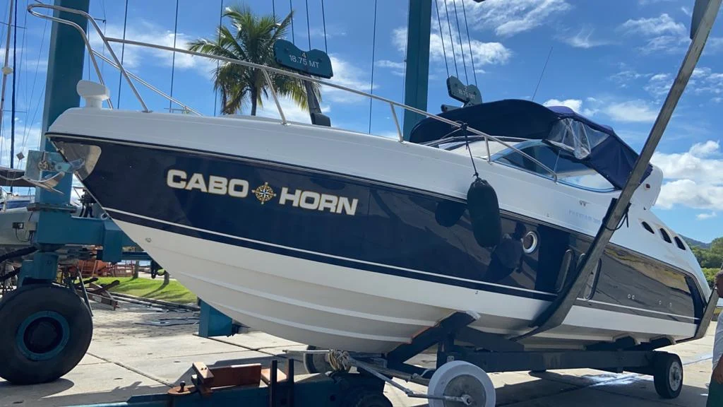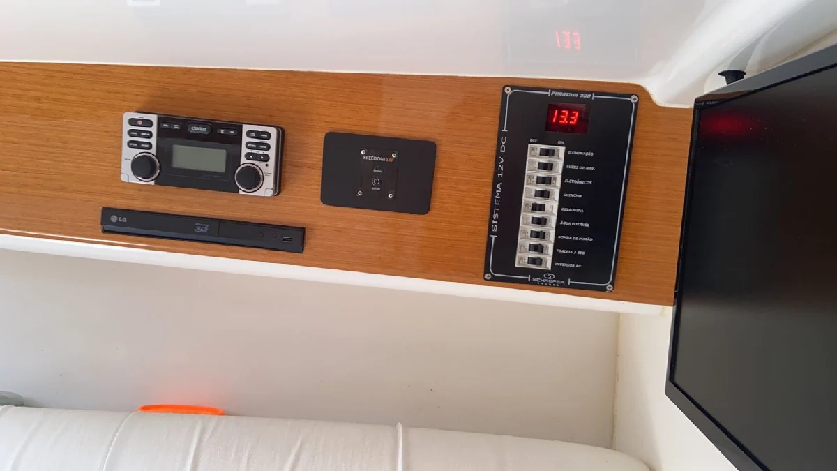 MOTORIZAÇAO:VOLVO 8.2 GASOLINA, 450 HORAS. ITENS: PLATAFORMA SUBMERGIVEL, GPS GARMIM, SOM COMPLETO CLARION, FRIGOBAR, MICROONDAS, BOILER, INVERSOR XANTREX, GHINCHO ELETRICO, WC ELETRICO, LUZ SUBAQUATICA, FAROL, CARRETA, CAPOTA COM FECHAMENTO TOTAL, PAINEL COMPLETO, VOLANTE LUXO COM TOQUE AMADEIRADO, FLAPS, TECA 100% EM MADEIRA, CHURRASQUEIRA MAIS MESA DE APOIO, TOMADA DE CAIS, DEFENSAS.