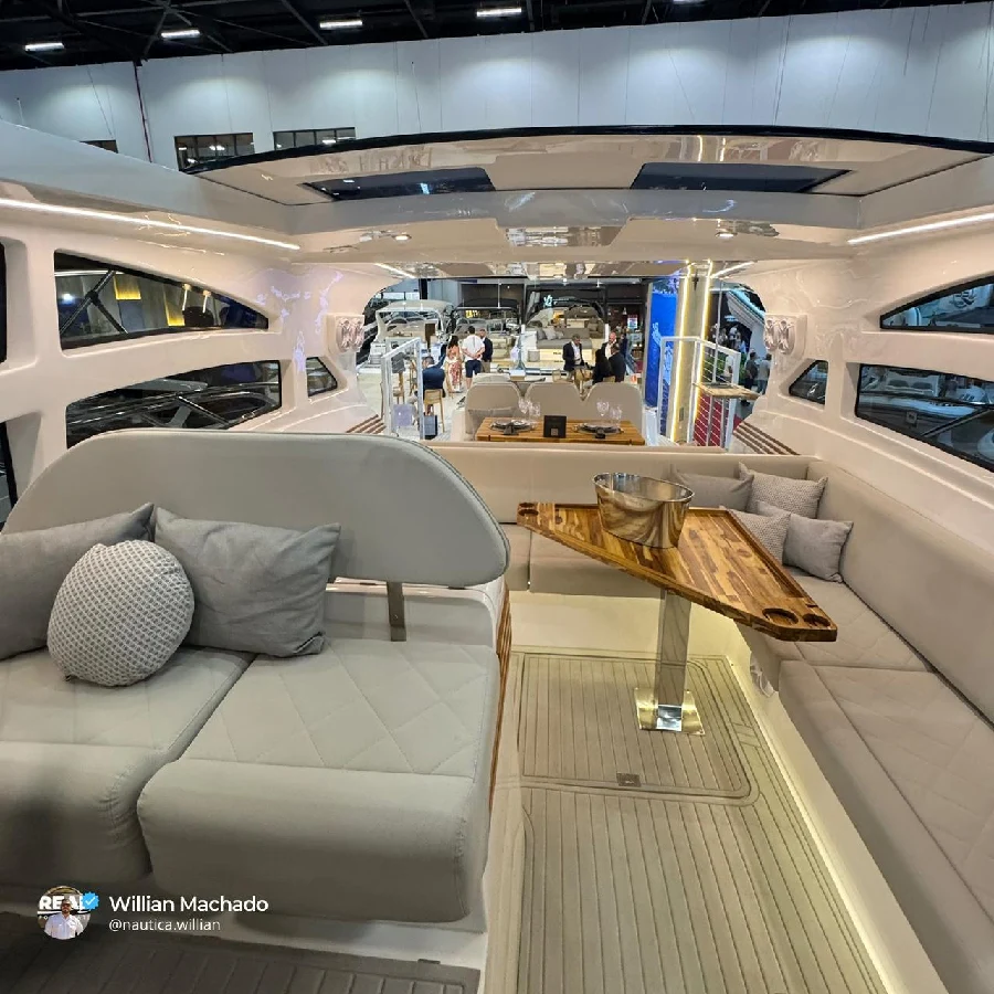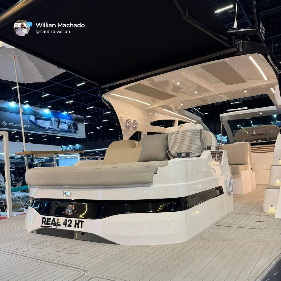 Lancha Real 42 Hardtop com parelha de popa – 42 pés de inovação, motor de popa Mercury ou Yamaha e espaço premium | Real Powerboats A Real 42 Hardtop é o ápice da linha “Luxury” do Estaleiro Real Powerboats: Uma embarcação que une esportividade extrema, layout otimizado para convivência e tecnologia de motorização de popa, entregando navegação ágil, economia e elegância. Se você está em busca de uma lancha com parelha de popa,esse será a sua próxima aquisição. Chega de se preocupar com a troca das muflas,com alto custo de revisão e manutenção. Com a parelha de popa seu barco inclusive pode morar na água.(necessário pintar o fundo do casco) Agende uma visita agora mesmo : WhatsApp : 21 96787-7462 Willian Machado Destaques principais: Comprimento de 12,76 m Boca de 3,70 m Capacidade para até 16 passageiros em day-use. Pernoite para 6 Adultos Motorização inteligente de popa (2×300HP ou 2×400HP) que reduz consumo em até ~ 30% em comparação à centro-rabeta. Menor custo de revisão,manutenção,alem de poder morar na água (necessário pintar o fundo do casco) Solário de popa acima dos motores, aproveitando a motorização de popa sem reduzir a área de convívio – O melhor dos dois mundos bem aqui ! Design esportivo: posto de comando elevado, cockpit integrado,abertura elétrica do teto panorâmico, convívio fluido entre popa, centro e proa. Marca consolidada: Real Powerboats com tradição, produção própria, destacando sua confiabilidade no mercado. Já são mais de 39 anos de experiência em construção,mais de 12.000 barcos entregues. Por que escolher este modelo? Se você busca uma lancha de 42 pés que combine esporte, luxo e layout voltado ao lazer a bordo, a Real 42 Hardtop se destaca. Ideal para quem quer performance, espaço social e economia operacional. Venha conhecer a Real Hardtop, sinta a ergonomia do cockpit, experimente a motorização de popa no mar e comprove o aproveitamento inteligente do espaço. Entre em contato para condições de lançamento. Disponível também na versão Cabriolet WhatsApp : 2196787-7462 lancha Real 42 Cabriolet • Real Powerboats 42 pés • Hardtop Lancha motorização de popa 42 pés • lancha 42 pés design esportivo • espaço popa solário lancha • comprar lancha Real 42 Motor de popa Mercury ou Yamaha. Motores de popa