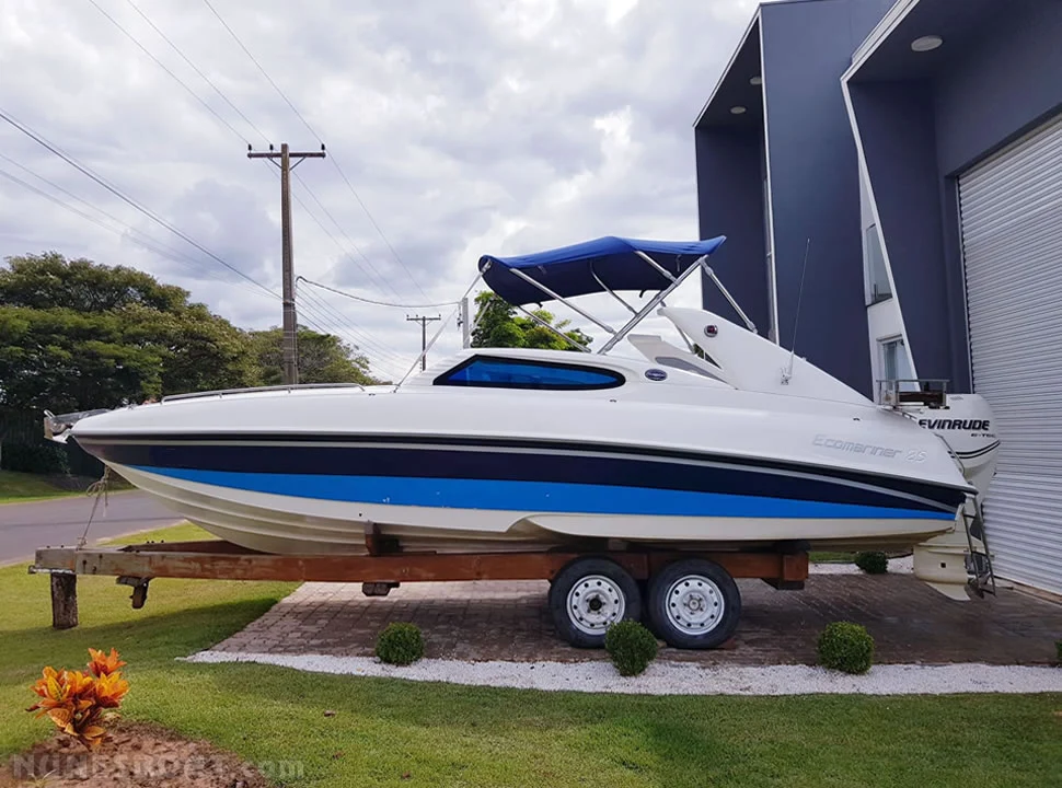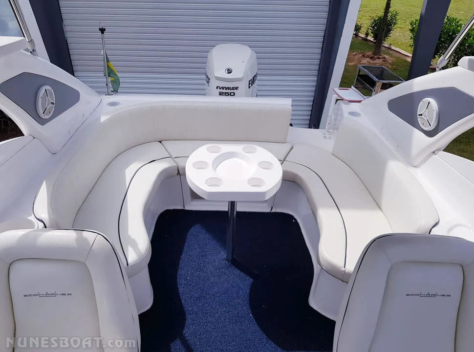 CÓD 2300 ECOMARINER 25: 2013, evinrude 250hp, gasolina, 155hs de uso, 42 top e 30 cruzeiro, âncora, antena vhf, bateria, bomba de água doce, bombas de porão, bússola, capota, carreta de encalhe, churrasqueira, chuveiro de popa, (10) coletes, (4) defensas, farol, gps c/plotter, rádio vhf, som... F/c. Nunes (13)99706-0395