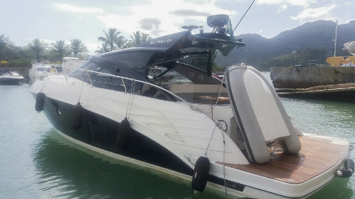 Phantom 400 HT 2013 com 660 horas de uso. Motorização 2X VOLVO 300 HP Lancha comprada por nossa mãe, afim de passarmos mais momento em família. Fomos muito felizes nela, enquanto as crianças eram menores, pelas praias paradisíacas da Ilha Grande, desde que compramos em 2013. Ultimamente, temos ido pouco ao apartamento, portanto temos passeado pouco de lancha também. Somente 660 horas de uso. Capacidade para 14 pessoas em turno diurno, e 5 pessoas durante o pernoite. 2 suítes, Bússola, Churrasqueira, Fogão por indução, Geladeira, Gourmet, Gps garmin, Manetes eletrônicos, Mesa central, Microondas, Pia na plataforma de popa, Rádio vhf, Solário de proa, Som bluetooth, Toldo stobag, TVs (2) A Phantom 400 é um barco consagrado no mercado náutico pelo seu design único e sua agilidade e velocidade. O modelo traz um hard top exclusivo em sua categoria, e sua generosa plataforma com espaço gourmet reforça a tradição da Schaefer Yachts de privilegiar o espaço externo. Com o alto pé-direito das cabines, e a única da categoria com duas suítes, você confere o conforto e requinte que tornam a Phantom 400 uma extensão da sua própria casa.
