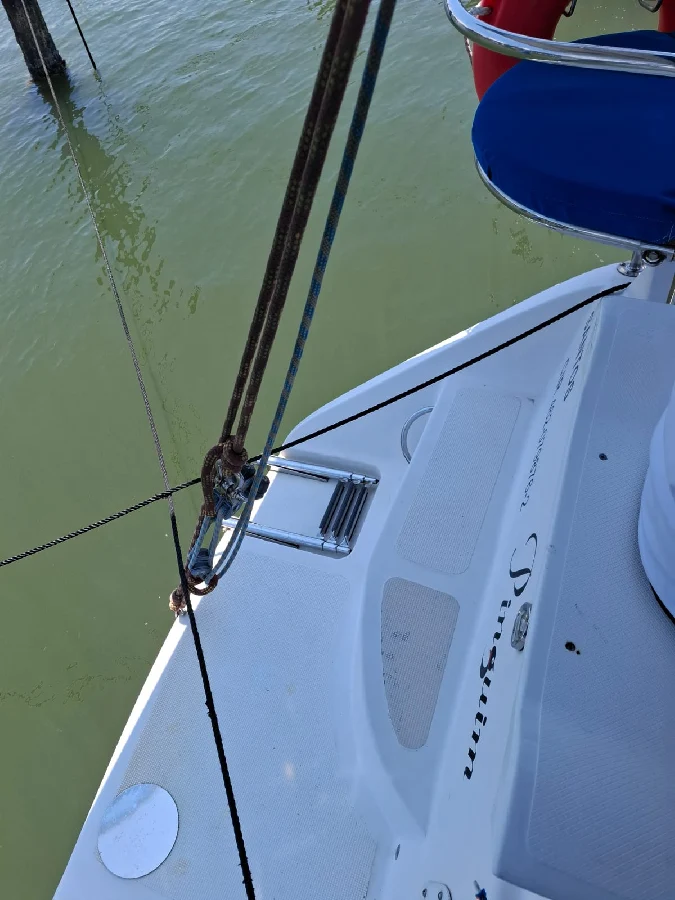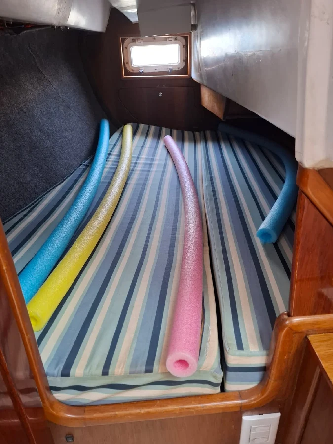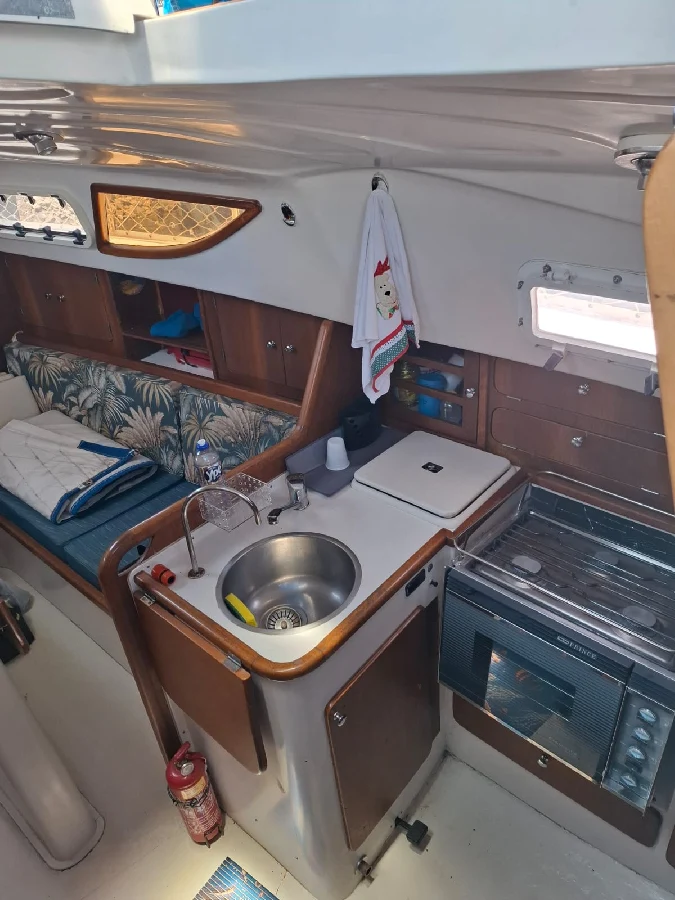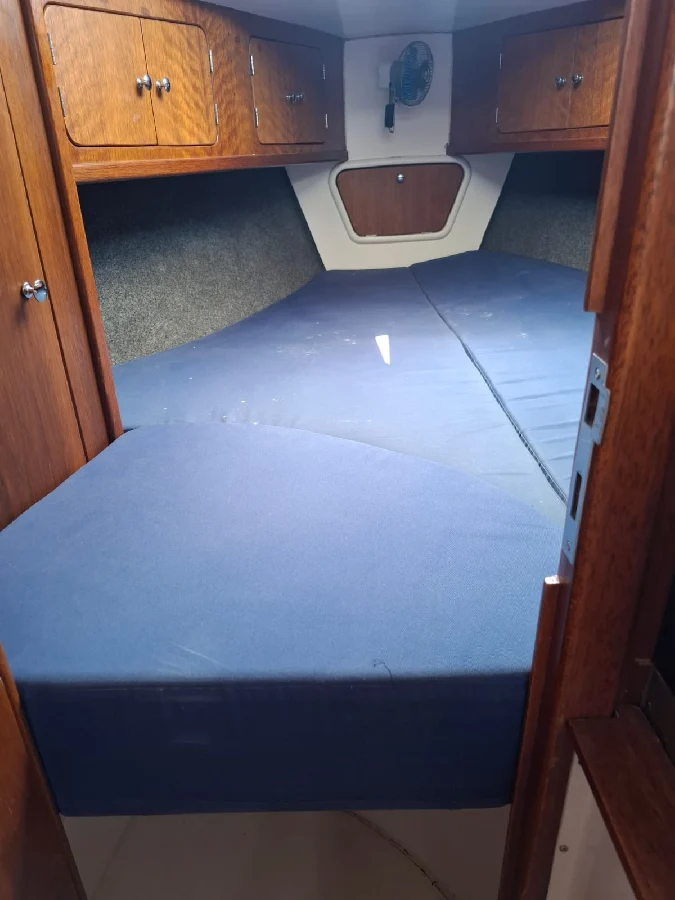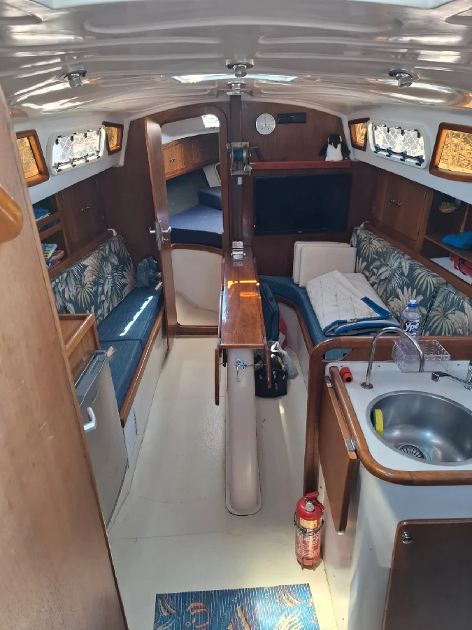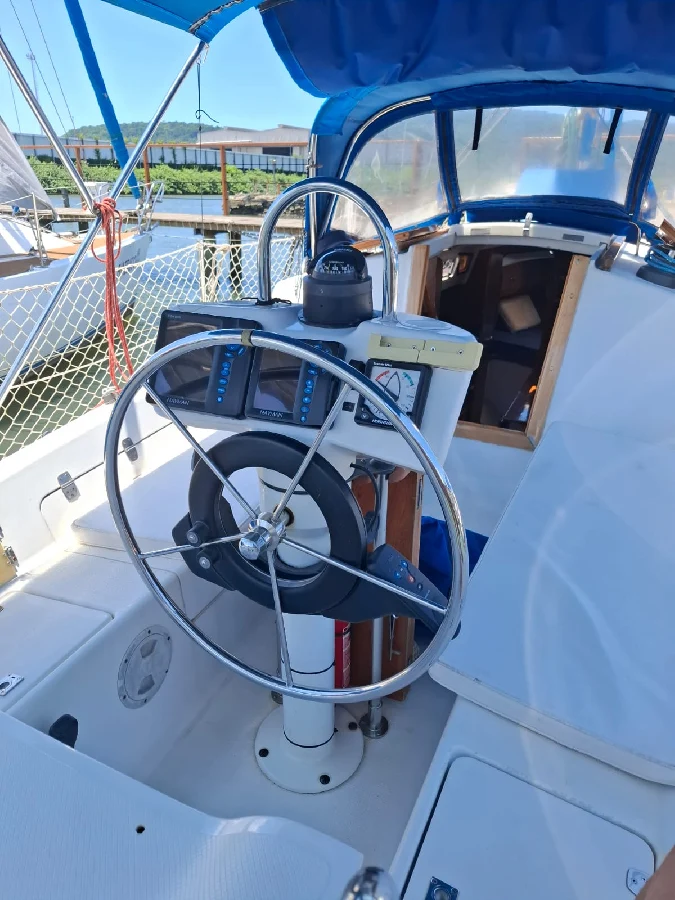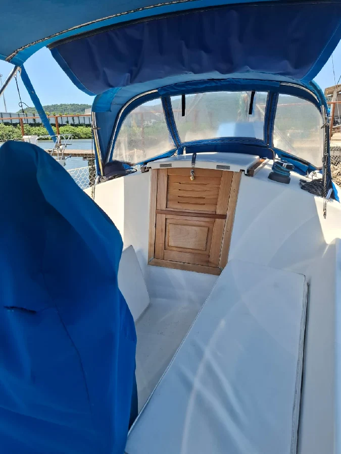 Barco com excelente custo benefício: CARACTERÍSTICAS: 1 cabine na proa + 1 cabine popa + 1 banheiro fechado com ducha e água quente por boiler (troca de calor com motor) + sala de estar com mesa de jantar em 2 abas + sofás laterais nos costados de BB e BE + cozinha em L com pia com misturador de água quente/fria, com fogão com 3 bocas e forno a gás, e armários + paiol grande para guardar cabos / boias/ churrasqueira / cadeiras / ferramentas, etc. Capacidade de água: 200 litros com 2 tanques de inox de 100 litros cada localizados sob os sofás. Capacidade de diesel: 100 litros. MOTORIZAÇÃO: Yanmar 2YM15 – transmissão por pé de galinha. Hélice de 3 pás. Pintura de fundo: fevereiro 2023. VELAS: 01 mestra em dracon em bom estado. 02 genoas em dracon com proteção UV em bom estado. 01 balão em excelente estado. 01 pau de spinnaker. Adriças e escotas para todos. Burro com acionamento manual. 03 Catracas Nautos 16 selftailing, 1 Catraca Nautos 8 simples no mastro; 02 manicacas. ELETRÔNICOS: ChartPlotter NAVMAN TRACKER 5500 com carta; Estação de Vento NORTSTAR; Sonda NAVMAN 4600; Piloto automático SIMRAD, montados em pedestal com roda de leme. Mesa de navegação e painel elétrico completo. Luminárias em LED. Radio VHF – marca UNIDEN SOLARA. ELÉTRICA: Banco de baterias: uma para acionamento do motor e 4 para serviços, com chave automática – bateria inteligente para motor. Targa com placa solar rígida 390W com controlador de carga MPPT e banco nos púlpitos. ACESSÓRIOS: Bimini, dog house e lazy bag Enrolador de genoa. Plataforma de popa com escada e suporte apoio para churrasqueira. ATRACAÇÃO/FUNDEIO: guincho elétrico windlass de 900w com acionamento no púlpito. Ancora Rocna de 12kg com 40m de corrente de 7mm. ACESSORIOS PARA NAVEGAÇÃO: boia circular, facho holms, artefatos pirotécnicos, defensas, coletes salva-vidas, crock. Barco com quilha retrátil de 450 kg fibrada e leme retrátil com clamcleat, e leme de fortuna. DOCUMENTAÇÃO Em dia e em meu nome.