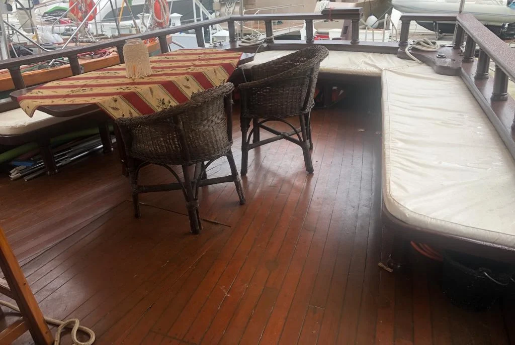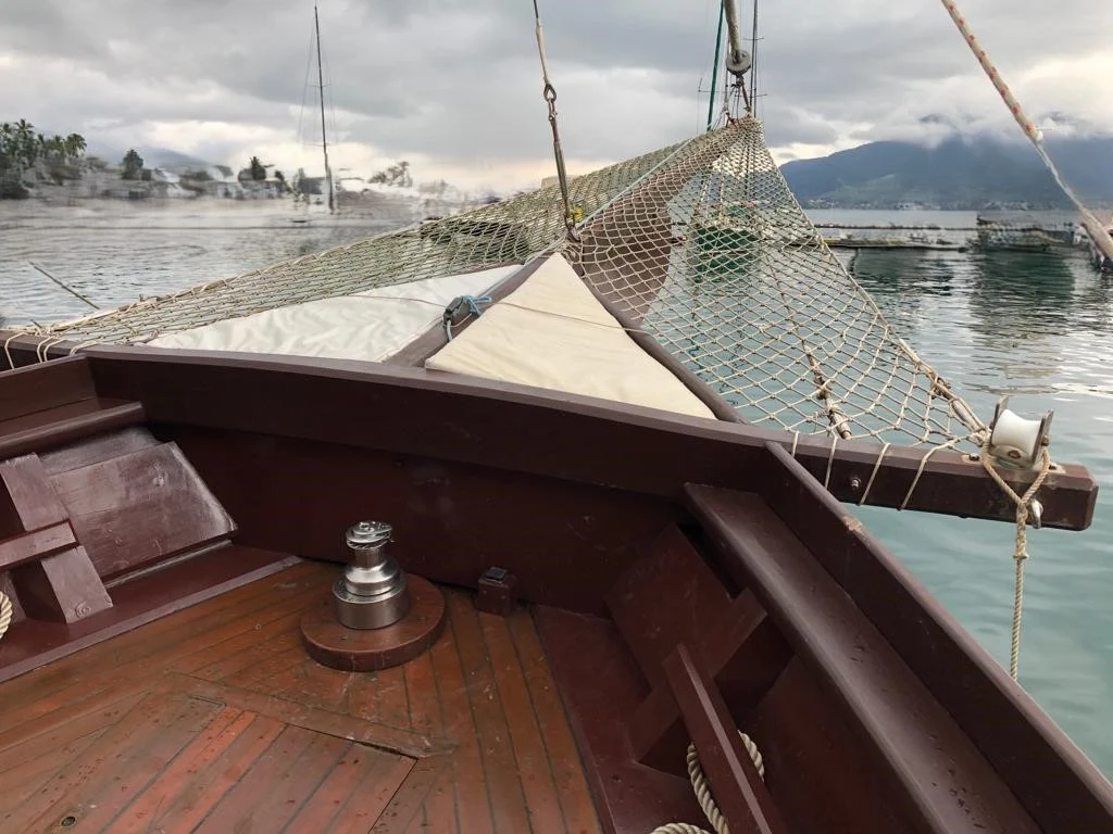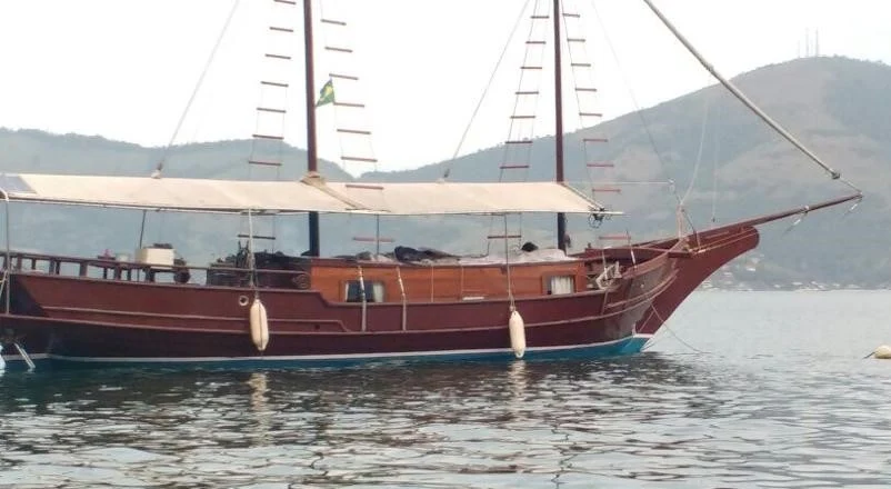 ESCUNA 48 PÉS – ANO 2006 ESPECIFICAÇÕES TÉCNICAS Construída em Valença, Bahia Lançada em 12/07/2006 Primeira viagem: 11/10/2006. Comprimento Total: 14,5 metros, não contando Pau de Giba Manga, largura: 4,59 metros Calado: 1,20 m Pé direito: máximo 2 m Classificação: Esporte e recreio, mar aberto Capacidade de passageiros: 20 Capacidade Combustível diesel: 400 litros Capacidade de água: 400 litros MOTORIZAÇÃO Motor MWM 145HP Aproximadamente 1.500 horas de uso Consumo médio: 9 a 10 Litros por hora. Excelente estado de manutenção VELARIA / MASTREAÇÃO Vela de proa confeccionada na Holanda. (Hagort Sails) INSTRUMENTOS / ELETRÔNICOS Plotter GPS Garmin com calculo de rota e Fish Finder Radio VHF Garmin novo ELÉTRICA 06 baterias 150 KWA Carregador de baterias tipo “inteligente” marca Victron Energy 12volt 1600va 70 amp. Painel Solar com blue solar charger MPPT 75=15. HIDRÁULICA Bomba de água salgada Jabsco Flo 5.0 Bomba de água doce Jabsco Par Max 4 Bomba de água servida Jabsco Convés com chuveiro de água doce e mangueira com água salgada para lavagem do deck. ANCORAGEM / FUNDEIO Guincho para facilitar recolhimento de ancora e manuseio da vela de proa. 01 âncora Rocna 20 kg 02 âncoras Bruce SALVATAGEM / APOIO Salva vidas a bordo INFORMAÇÕES ADICIONAIS Espaçoso convés com mesa bancos ao redor e duas cadeiras de vime. Possui pequena cozinha externa com reservatório de gelo. Camarote para casal, banheiro completo com chuveiro, pia e vaso sanitário elétrico TMC. Sala com banco que pode ser transformado em cama Varias gavetas e estante de livros. Armário amplo para louça, copos e diversos utensílios Cozinha com pia ampla e torneira de água doce Fogão a gás (bujão de gás fica fora na pequena cozinha em um armário) Geladeira Elber de inox própria para embarcações 12Volt Manutenção de carpintaria e diversas reformas elaboradas pelo Mestre Rodolfo Lungo de Oliveira, Praia do Machado Angra dos Reis. Barco sobe todo ano para inspeção do fundo e manutenção. Valor: R$ 579.000,00