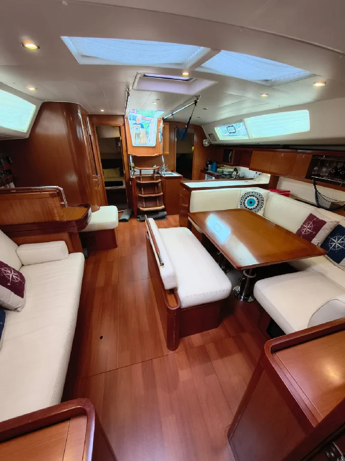 *ESPECIFICAÇÕES TÉCNICAS* Construtor: Chantiers Beneteau Ano: 2011 Casco: Fibra de vidro Comprimento: 16,70 m Boca: 4,90 m Calado: 2,30 m Capacidade de passageiros: 11 + 1 Número do casco: 105 Mar Aberto - Navegação Oceânica *DESTAQUES* Dessalinizador 60 L/Hora – (funciona em 12v ou 220v) Bowthruster 24v Balsa Salva Vidas Lalizas - 08 pessoas (adquirida em 2022) Gerador Onan de 9kva - 2.335 Horas – (última Revisão: 28/11/2024) 03 Aparelhos de Ar Condicionado Câmera de térmica no Mastro visão noturna /diurna – Zoom 4X 03 Catracas elétricas (convés) Epirb 406 com GPS Máquina de Lavar Pratos Lavadora e Secadora de Roupas 3kg Holding tank nos dois banheiros. *LAYOUT* 03 cabines internas 01 cabine externa de proa com banheiro para marinheiro 02 banheiros Salão Cozinha *MOTORIZAÇÃO* Motor: Yanmar 110 HP Turbo Helice Folding 03 pás Limpeza e revisão no hélice em maio/2024 Capacidade De Óleo Diesel: 02 Tanques de 237 L – Total 474 Litros *VELARIA / MASTREAÇÃO* Vela Mestra de enrolador no mastro Genoa Enrolador de genoa Genneaker com enrolador - cod zero Trinqueta 15 m2 com enrolador Mastreação Seldén - Fracionado 04 catracas (sendo 03 Elétricas) Pau de Spi Burro Telescópico *ELETRÔNICOS* Sistema De Navegação B&G novo (2021) Monitor Zeus 3s 12 B&G Combo Radar Halo 20 Plus 02 Pilotos Automáticos (01 Raymarine + 01 B&G) - ambos com repetidor Wi-fi portatil AIS – Banda A/B transmite e recebe 02 Rádios VHF Estação Repetidora de rádio VHF no cockpit Monitor Zeus 3 S 9" B&G na mesa de navegação Conjunto Display Triton com controle Piloto B&G Conjunto Triton2 Sdw Depth/Speed/Wind B&G Módulos czone e sensores em três tanques de água e dois de diesel (também sensores analógicos) *ELÉTRICA* 02 Geradores Eólicos de 400 Whats cada um com Sistemas de Proteção 02 Placas Solares - 400 Whats cada 02 Controladores De Carga Epver de 40 Amp cada com Sistema Wifi – disjuntores de Segurança Sistema de Segurança de Carga de Cais com 02 Chaves contadoras para excesso de energia ou falta 03 Carregadores de Baterias sendo 02 de 20amp e 01 Master Volt de 70 Amp totalizando 110 Amp de Carregamento Hora Inversor Matervolt 2.000 Whats Banco de Baterias de Serviço: 06 Lithium de 160 A/H cada – Total 960 Ah (2021) Banco de Baterias Bowthruster: 04 Baterias Optima 50 Amp –Total 200 Amp (jul/2022) Banco Motor: 01 Bateria de 100 Amp (2022) Banco Gerador: 01 Bateria de 100 Amp (2022) Chave de Interligação dos Bancos de Bateria em caso de pane 02 Cabos de ligação de energia de cais Todo sistema de iluminação em lâmpadas de Led Tomadas 12 volts e adaptadores USB em todo barco Energia 220 Volts em Todas as Tomadas 01 Tomada 127 Volts Tomada de Cais para água doce externa *HIDRÁULICA* Capacidade de Água Doce: 03 Tanques – totalizando 970 litros Vasos sanitários elétricos Duchas higiênicas cabine de proa e de popa Vaso Sanitário Manual cabine do marinheiro externa *ANCORAGEM / FUNDEIO* Guincho elétrico Lewmar - 1600 Whats com controle manual e controle remoto no cockpit Âncora Roka galvanizada 25 kg (Principal) com 90 m de corrente 12mm galvanizada Âncora Fortress Aluminio 27 kg (Reserva) com 17 m de corrente e cabo de 100 m Âncora de tempestade (Drog) com cabo Cabos de amarração Defensas *SALVATAGEM / APOIO* Bote Flexboat 310 fundo ríigido com compartimento de tanque (2024) Motor 15 HP Evenrude (revisado 2024) 02 Linhas de vida para convés 06 Coletes Salva Vidas com cinto de segurança e válvulas hidrostáticas 06 Strobos de braço que acompanham os coletes salva vidas *INFORMAÇÕES ADICIONAIS* Pintura de fundo - maio/2024 Salão com mesa reversível para cama de casal Geladeira Freezer Micro-ondas Cafeteira Nespresso Sanduicheira Máquina de Fazer Gelo TV 43 Polegadas Led No Salão 02 Dvds / Radio /Cd / Porta USB – Ligados nas TVS no salão e cabine principal 01 Bluray ligado na Tv do salão 01 Home Theater Boss com 02 Caixas + Boster 02 Autofalantes Externos 07 Ventiladores de 12 Volts em todas as cabines e Salão Forno e Fogão 03 Bocas Sistema de Gas do fogão - 02 Bujões P5 com troca de bujão por válvulas Capotaria nova Dog House e Bimini com fechamento total (Tlaloc/2023) Almofadas Externas (Tlaloc 2023) Targa em Inox para transporte do Bote com Iluminação 10 Galões vermelhos plásticos de 22,5 L para transporte de diesel extras