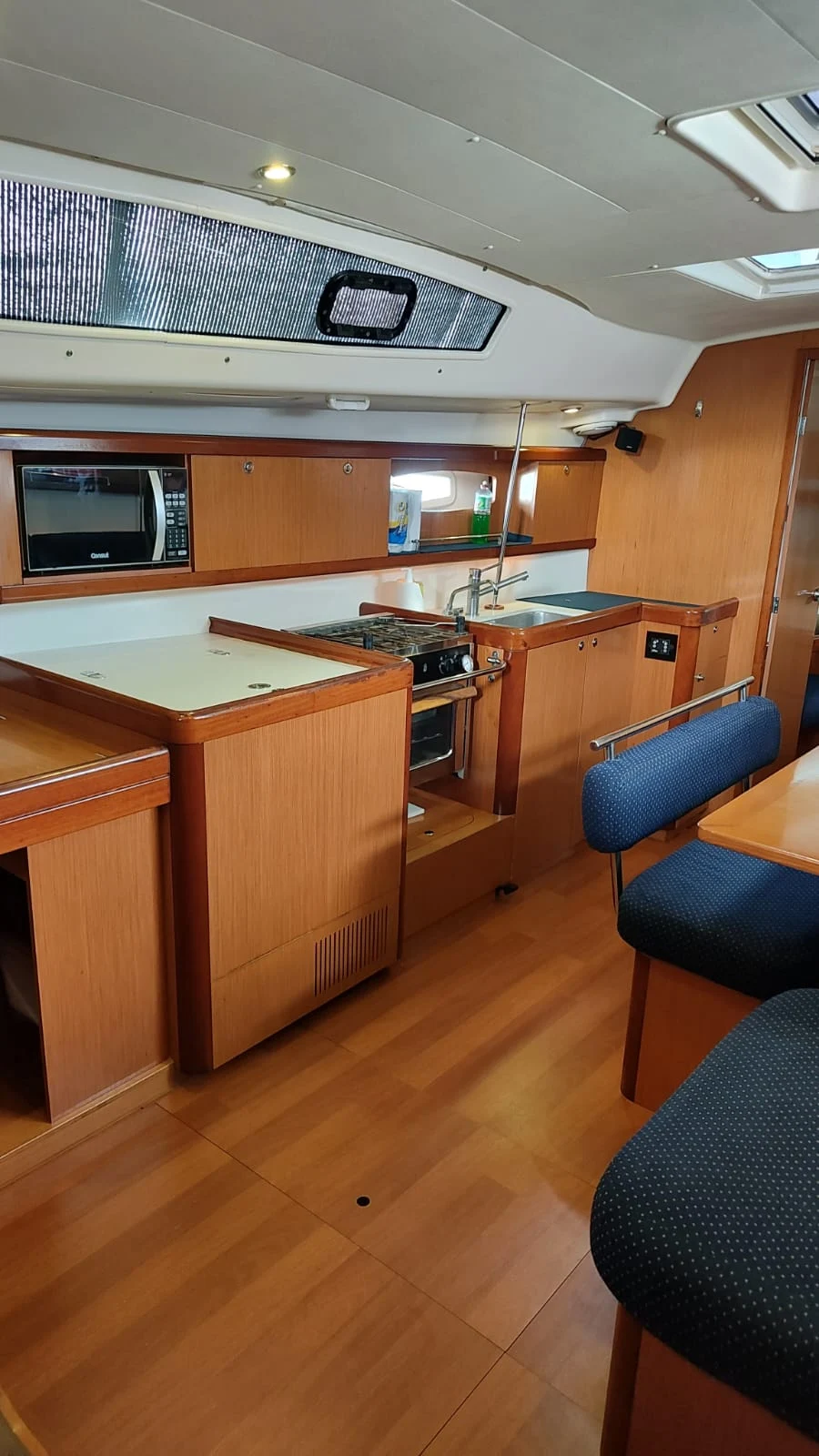 *ESPECIFICAÇÕES TÉCNICAS* Fabricante: Beneteau Yachts Comprimento total: 13,10 metros Boca: 4,12 metros Calado: 1,85 metros Deslocamento: 8.875 kg 02 Rodas de Leme *LAYOUT* 03 Cabines 02 Banheiros Salão / cozinha *DESTAQUES* 01 Catraca elétrica Lewmar Gerador Kohler 6,5 KWA 02 Ar-Condicionados *MOTORIZAÇÃO* Yanmar 54HP *VELARIA / MASTREAÇÃO* 01 Vela grande North Sails (Enrolar no Mastro) 01 Genoa North Sails Mastro com enrolador 04 Catracas Lewmar, sendo 01 catraca elétrica Enrolador de Genoa Stoppers Manicaca *ELETRÔNICOS* Wind direction (painel novo) Wind Speed Piloto Automático (painel novo) VHF (cabine e cockpit) Ecossonda GPS e Ploter E120 (Cockpit) Radar Painel de nível de água e diesel Barômetro *ELÉTRICA* Painel solar fotovoltaico Baterias Shore Power *HIDRÁULICA* 02 banheiros elétricos 02 bombas de porão automáticas Água pressurizada Chuveiro no Cockpit Boiler elétrico *ANCORAGEM / FUNDEIO* Âncora Rocna Âncora de popa Defensas Croque *SALVATAGEM / APOIO* Bote e motor de apoio Extintor Fogos 02 Boias circulares Refletor radar *INFORMAÇÕES ADICIONAIS* Dog House Bimini Capotas para todo o barco Capas das gaiutas Escotas Fogão com forno Escada de popa Ice box Cama reversível no salão Geladeira 12v 02 TVs Sistema de som FUSION