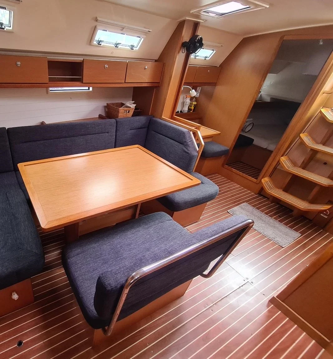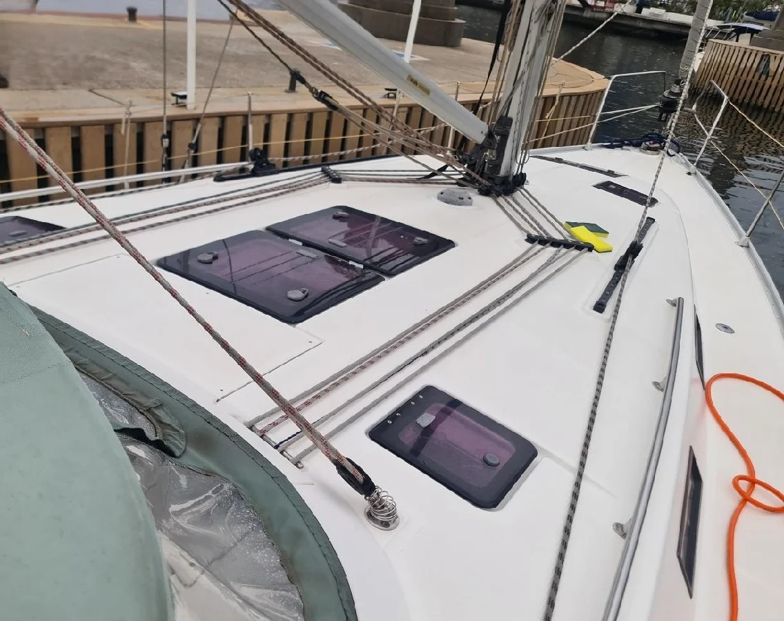 *INFORMAÇÕES TÉCNICAS* Modelo: Cruiser 40 Fabricante: Bavaria Yachts (GER) Projeto: Farr Yacht Design Material do casco: Fibra de vidro Boca: 3,96m Calado: 2,10m Altura da cabine/banheiro: 1,97m/1,82m 02 Rodas de leme Área de navegação: Mar aberto Capacidade máxima de passageiros: 1+9 Tanque de água: 360L Tanque de combustível: 210L *LAYOUT* 03 Cabines 02 banheiros Sala Cozinha *MOTORIZAÇÃO* Marca: Volvo Penta Modelo: D2-60F Potência: 60 HP Ano: 2022 Transmissão: Rabeta Volvo Penta Tipo do hélice: Gori folding de 03 pás Motor e rabeta instalados em Abril de 2022 Revisão total do motor (out/2024) Revisão total da rabeta (out/2024) Troca de anodos rabeta (out/2024) Troca de anodos da quilha (out/2024) *VELARIA / MASTREAÇÃO* 01 Mestra em Dacron 01 Genoa em Prolan com proteção UV (2021) 01 Storm Jib em Dacron 01 Gennaker 04 Catracas Lewmar com self tailing Ano do estaiamento: Extensores trocados em 2020 (cabos originais) Enrolador de genoa Furlex Burro hidráulico *ELETRÔNICOS* GPS Chart Plotter Garmin Map 7410 de 12” – touchscreen (2018) Piloto automático Garmin (display 2018) AIS 800 Garmin Epirbi Display Tridata Garmin: Wind, Depth e Speed (2018) Rádio VHF Garmin (2022) *ELÉTRICA* 02 Painéis solares de 100W 02 Baterias de serviço Moura de 150Ah 01 Bateria de partida Moura de 80Ah Controlador de carga MPPT Inversor Power DC12V AC220V 4000W 02 WC elétricos 02 Bombas de água pressurizada (2022) Luzes em LED * ATRACAÇÃO/FUNDEIO* Guincho elétrico Quick Âncora Bruce de 25Kg em aço inox 50m de corrente Âncora reserva de 15Kg com 30m de corrente Espias 03 Defensas F3 02 Defensas A2 *SALVATAGEM / APOIO* Bote de apoio inflável Zefir de 2,30m (2020) Motor de popa Mercury de 5hp (2020 *INFORMAÇÕES ADICIONAIS* Pintura de fundo (out/2024) Troca dos registros (out/2024) Plataforma de popa articulável Bimini (2022) Dog house e Lazy jack (2017) Suporte de motor de popa Escada de acesso na popa Vigias (algumas foram trocadas em Set/22) Fogão de 02 bocas com forno Geladeira 12V Micro-ondas Ventiladores 02 Bússolas Aparelho de som Garmin Fusion com bluetooth 04 Autofalantes Barco totalmente revisado em out/2024