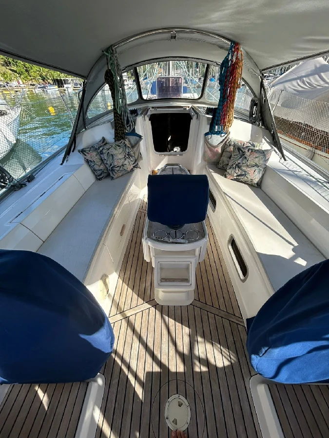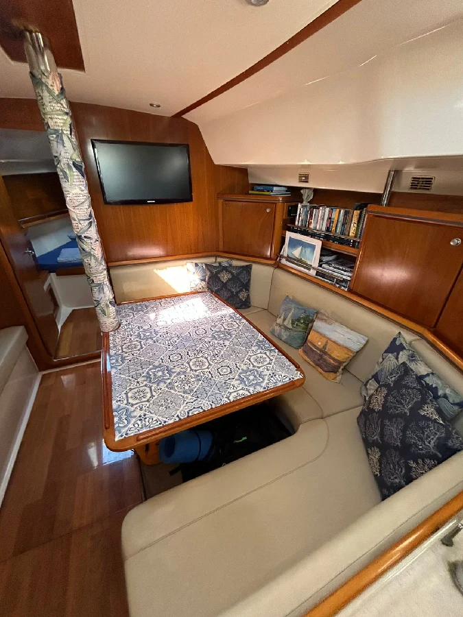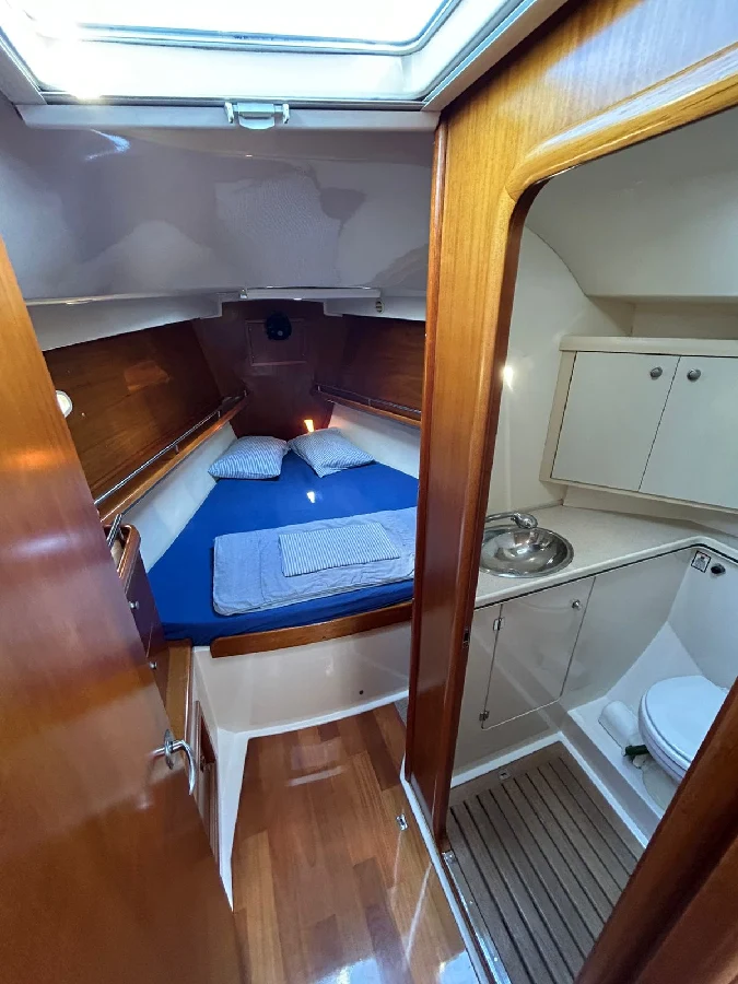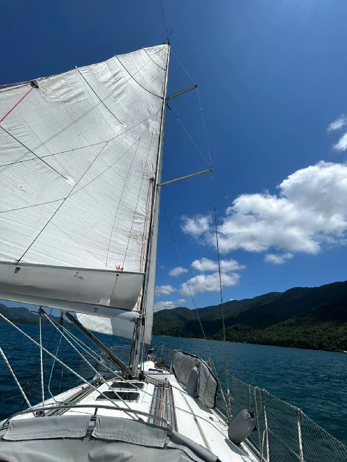 *ESPECIFICAÇÕES TÉCNICAS* Fabricante: Delta Yachts Designer: Nestor Volker Comprimento total: 12,60m Boca máxima: 3,95m Mar Aberto Capacidade de passageiros: 1 + 8 pessoas *LAYOUT* Versão 02 Cabines / 02 banheiros 01 suíte de proa 01 cabine mais 1 banheiro na popa (banheiro de popa com box para banho separado) Salão Cozinha *DESTAQUES* Gerador Fischer Panda modelo PMS 4200 FCB, 120V-60Hz-3, Ar-condicionado Icemaster 16700BTU 120V 60Hz Model IC16CH 01 Catraca elétrica Nautos 44 Balsa de Salvatagem em casulo de fibra para 6 pessoas EPIRB Modelo com AIS e receptor GNSS *MOTORIZAÇÃO* YANMAR 54hp Todas as revisões feitas anualmente por profissional da Yanmar (última revisão completa feita em 15-Jan-2025, com 2351h, incluindo limpeza do tanque de diesel) Bateria Heliar 70ah (Abril, 2024) Hélice Fixa 3 pás / Hélice reserva nova, com porca e parafuso Rabeta SD-50 (cone já substituído por novo) *VELARIA / MASTREAÇÃO* Mestra Elvstron (revisada e instalado 3º rizo em 2021) Genoa Elvstron (revisada em 2021) Buja Autocambante Elvstron Genneker Enrolador de Genoa Nautos Catracas Nautos 2 catracas 44 (sendo 1 elétrica), 2 catracas 54 Stoppers Spinlock Pau de Spinaker: DELTA YACHTS alumínio Sistema autocambante: NAUTOS Gurupés removível *ELETRÔNICOS* Chartplotter Garmin GPS Map 923 xsv (novo – Abril 2023) Rádio VHF Standard Horizon GX 2150 AIS, com repetidor no cockpit (Rádio recebe emissão AIS) com antena no mastro AIS Amec Class B Camino 108 (emite e recebe) com antena exclusiva na popa Piloto Automático: Raymarine Smart Pilot X10 Estação de Vento Garmin GWS 10 Ecobatimetro AIRMAR SmartTri Multisensor Barômetro/Termômetro/Higrômetro 02 Bússolas Plastimo Offshore 135 *ELÉTRICA* 04 baterias de serviço Freedom DF2000 115ah (Junho 2024) Painel elétrico Blue Sea System Carregador de baterias Usina 60a, Reserva JFA 60a Inversor de energia GW 2000 Transformador de energia GW 5000 TR Bivolt Automático Monitor de baterias Victron Energy (novo 2023) 02 placas solares Canadian Solar de 275W cada (total 540W) Controlador MPPT Solar Charge Controller EPEVER Triron N Series (4210N) *HIDRÁULICA* 03 tanques de água (Tanque proa, Tanque Central, Tanque Bombordo) 430L Bomba pressurizadora 01 Jabsco Sensor Max VSD 5.0 (Mod. 32755-0000, 5,0gpm) Bomba de Chuveiro 02 Jabsco Shower Drain Pump Model 50880-1000 (16LPM); 1 em cada banheiro Bombas de Escoamento – Poceto 02 bombas de escoamento – poceto central (Shurflo 1500GPH com automático Seaflo) e área do motor (Rule 1000GPH com automático Rule) 02 Sanitátios elétricos 1 Jabsco e 1 TMC Boiler 20 litros para água quente interligado a rabeta para aquecimento com a água de refrigeração do motor (com registros de isolamento no motor) Torneiras e chuveiros com sistema monocomando quente-frio. Bomba de pedal da pia da cozinha instalada bomba nova em Junho de 2021 (inclui registro para usar água doce do tanque ou água salgada) *ANCORAGEM / FUNDEIO* Guincho Lewmar CPX3 1000W, 12V, com botões de subida e descida na proa e na popa 01 Âncora Roca 15kg (galvanização completa a fogo em Novembro 2023) Corrente 8mm, 63m (galvanização completa a fogo em Novembro 2023) Cabo poliéster 12mm, 40m Âncora reserva: Âncora Bruce 20kg, manilha, destorcedor, cabo 40m 6 defensas cilíndricas *SALVATAGEM / APOIO* Balsa de Salvatagem em casulo de fibra para 6 pessoas, com armação de inox na borda feita especialmente para acomodação e liberação rápida. Fabricação: Jan/2021, Fabricante: Shanghai (Emares-Ayromar Incêndio e Salvatagem), Modelo KHY-6, Palamenta Solas B, Validade: Agosto/2025) Bote de apoio Equinautic 2,40m, com fundo rígido, banco para sentar, remos, âncora 2kg e cabo. Parte inflável completamente substituída em 2021. Motor de popa Mercury 9,9hp (comprado em Maio-2021, todas as revisões anuais feitas em autorizada Mercury. Funcionamento perfeito EPIRB Modelo com AIS e receptor GNSS para melhor acurácia de posicionamento; com casulo e válvula hidrostática de libração automática. Fabricação: Mar/2021, Fabricante McMurdo, Modelo SmartFind G8 AIS, Validade Certificado: Mar/2026, Validade Bateria Nov/2031. Pendente: manutenção da válvula hidrostática 09 Coletes Classe II Adulto, 1 Colete Classe III Criança 02 Bóias Circulares com cabos retinidas e fachos holmes Pirotécnicos Validade Setembro 2027 - 2 Sinal Fumígeno Laranja Flutuante, 2 Facho Manual Luz Vermelha, 2 Foguete Manual Estrela Vermelha com Paraquedas 04 Extintores de Incêndio: 4 validades (1º semestre 2026 – 3; 1º semestre 2030 – 1) *INFORMAÇÕES ADICIONAIS* Dog House, Bimini e Laterais de Fechamento: Toda capotaria nova feita em Outubro de 2020 por Marcelo (mesmo que faz pra Delta no Rio Grande do Sul), revisada em Maio 2022 e em Janeiro de 2025 (Recostura, Limpeza e Impermeabilização de Bimini, Dog House e União) Capa completa para fechamento do barco inteiro (cobre todo convés, da proa a popa) Capas para todas as defensas, gaiútas, catracas, rodas de leme e equipamentos eletrônicos Targa na popa para içamento do bote de apoio, sustentação das placas solares e dos bancos de popa Pau de carga para içamento do motor do bote de apoio 02 suportes duplos móveis para pranchas de Sup ou Caiaques 02 suportes para varas de pesca 01 suporte fixo específico para balsa de salvatagem Geladeira Módulo eletrônico novo Danfos 2023 (pode ser usado em 12V ou 110V) Forno de Microondas Consul 20L Churrasqueira Magma Inox 05 ventiladores silenciosos Caframo (3 na sala, 1 quarto proa, 1 quarto popa) Fogão Inox 2 bocas e forno 2 botijões de 5kg Manuais de todos os equipamentos