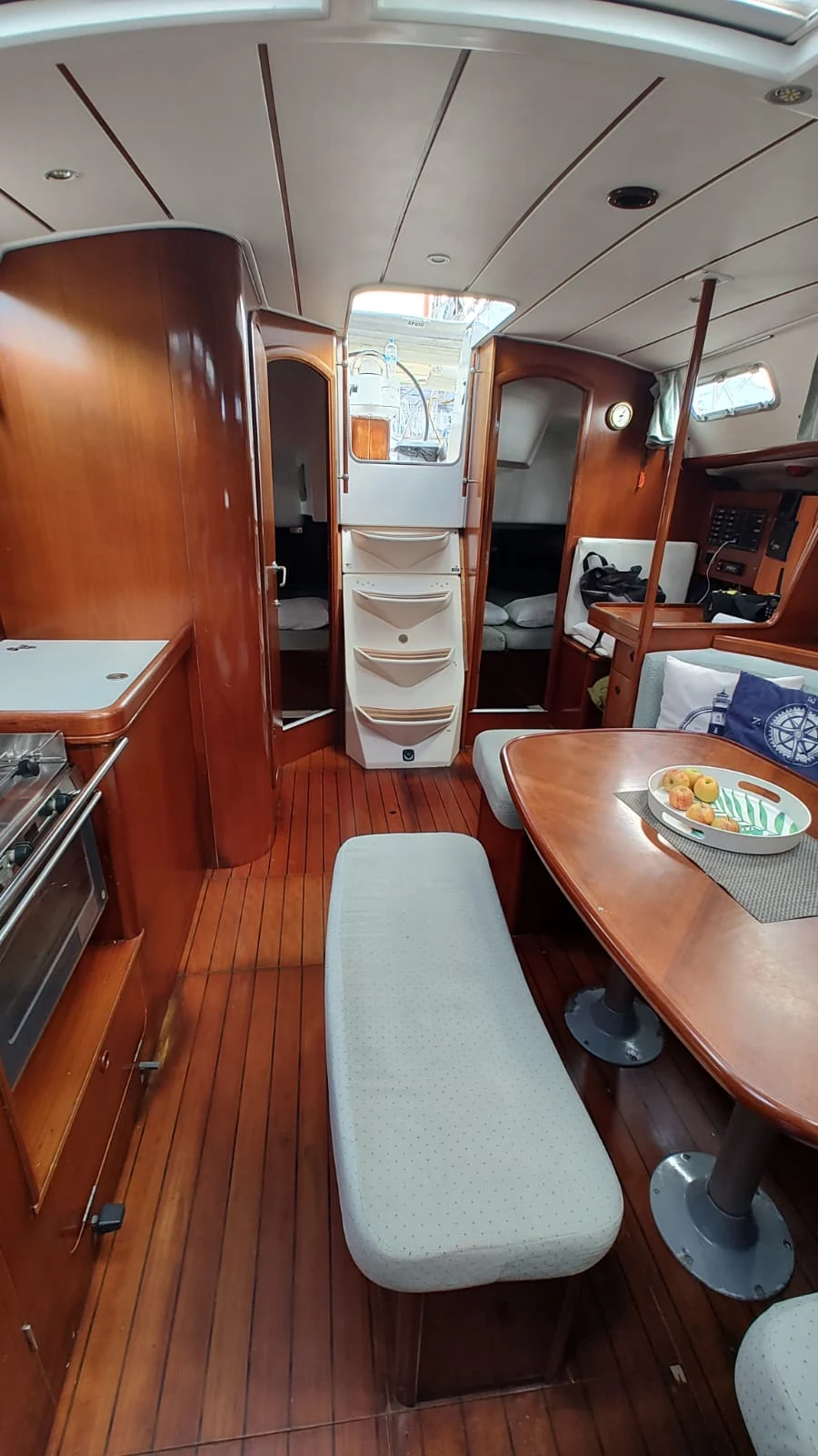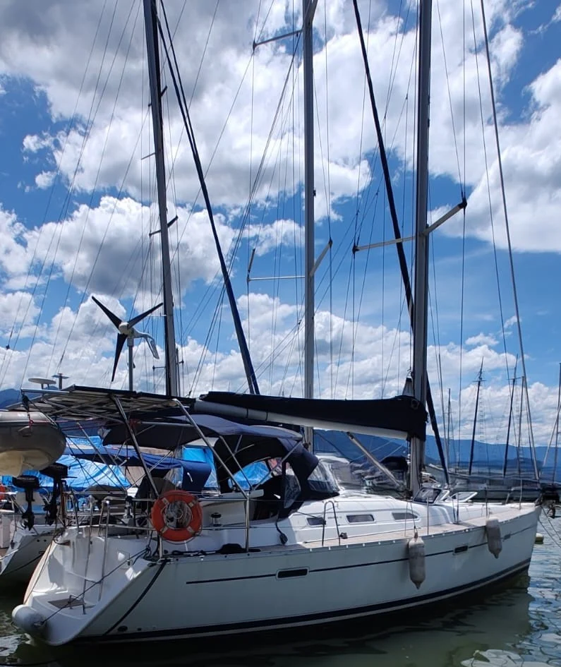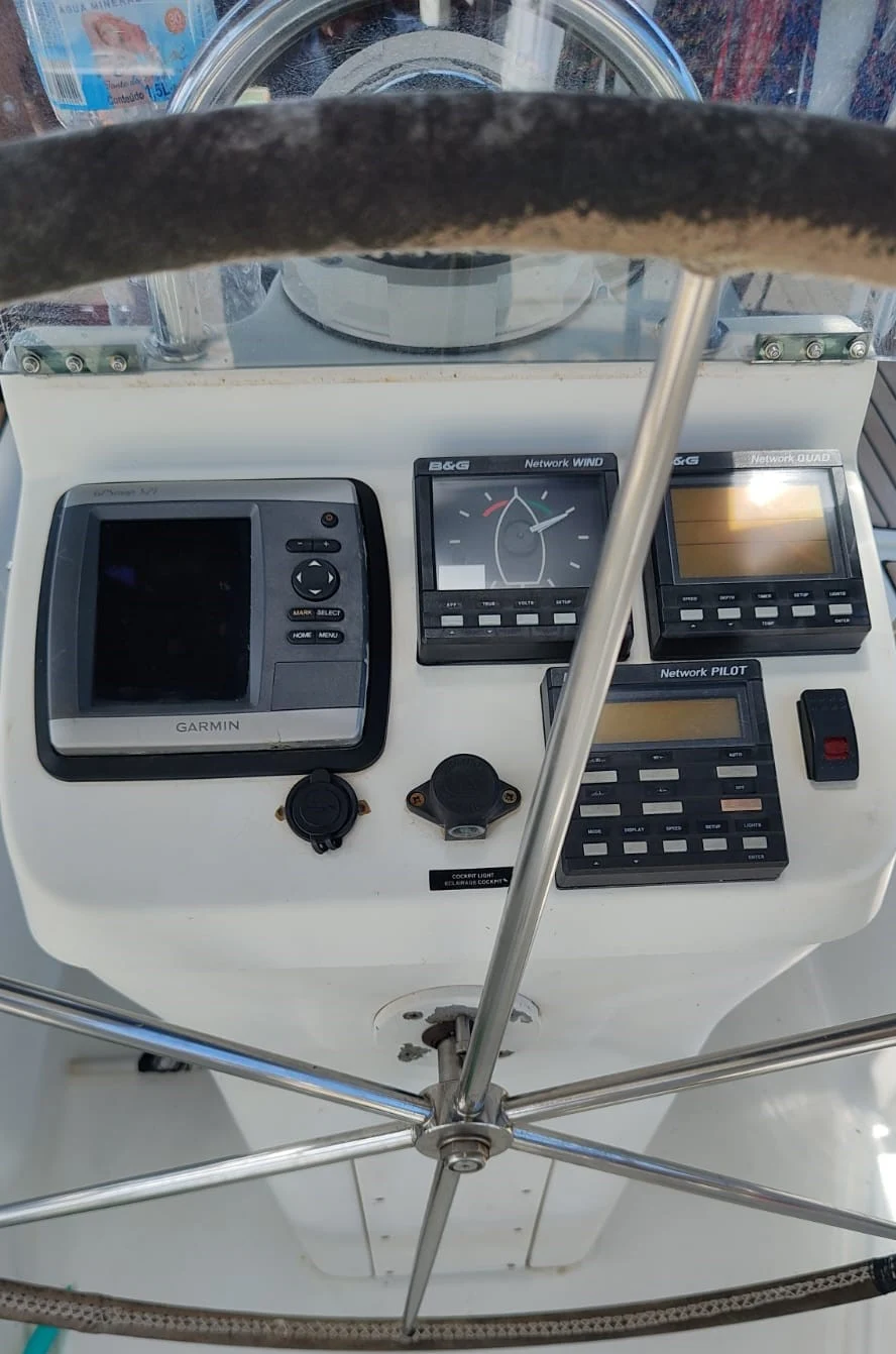 *ESPECIFICAÇÕES TÉCNICAS* Fabricante: Beneteau Modelo: Oceanis Clipper Projeto: Jean BERRET / Olivier RACOUPEAU Ano de Fabricação: 2002 Comprimento: 11,98m Boca: 3,93m Calado: 1,80m Deslocamento: 7,9 toneladas Material: Fibra de vidro Tanques de Água: 500 litros Tanques de Diesel: 138 litros *LAYOUT* 03 Cabines, sendo uma suíte 02 Banheiros Salão Cozinha *MOTORIZAÇÃO* Motor: Volvo 55Hp Reversor eixo Pé de galinha Motor retirado em ago/2025 para revisão e manutenção geral *VELARIA / MASTREAÇÃO* 02 velas mestras 03 velas Genoas Mastreação será revisada (set/2025) *ELETRÔNICOS / ELÉTRICA* Piloto automático elétrico hidráulico Profundímetro Tridata Garmin Charterploter garmin Anemômetro (não está mostrando o número da velocidade do vento mas mostra a direção) Rádio VHF portátil 04 baterias de 100ap 04 placas solares Gerador eólico Carregador e inversor 110v *ANCORAGEM / FUNDEIO* Âncora tipo Rocna 40 m de corrente 8mm 100 m de cabo *SALVATAGEM / APOIO* Bote e motor novo de popa novos (ago/24) Coletes 02 coletes para linha de vida, são auto infláveis se cair na água. *INFORMAÇÕES ADICIONAIS* Última pintura de fundo: 2022 Plataforma de Popa Cockpit em Teca Completo Capotaria Completa Dog house Bimini Lazy bag Tendas retranca Mesa Retrátil no Cockpit Ar-Condicionado pequeno Geladeira com Congelador Fogão Inox 2 Bocas Boiler Quick 20L Aquecido pelo Motor Chuveiro com Água Doce na Popa Botijões de Gás P13 Som com Alto-falantes Marinizados
