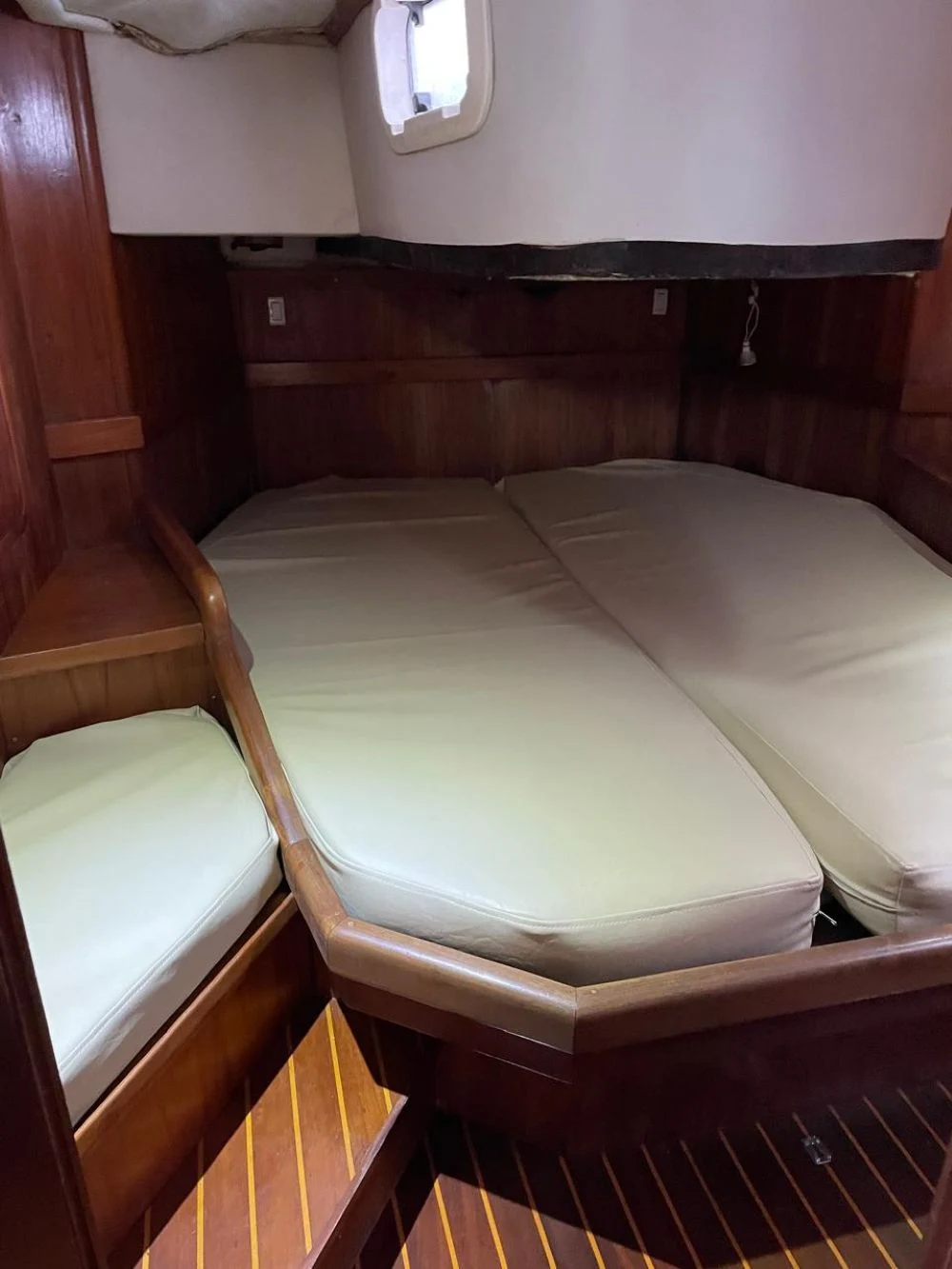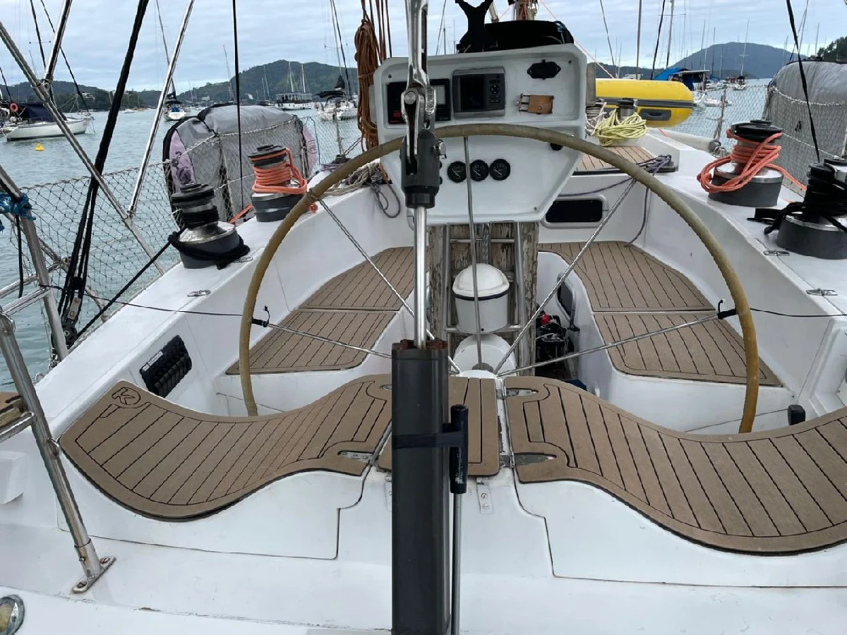 *ESPECIFICAÇÕES TÉCNICAS* Fabricante Marte Náutica Projeto Judel / Vrolijk Comprimento (LOA) 13,6 m | 44,5 pés Largura (LWL) 10,8 m | 35,4 pés Boca 4,2 m | 13,7 pés Casco Fiberglass (GRP) *MOTORIZAÇÃO* Motor volvo D2 50 novo 150 horas Comprado zero e instalado em dezembro de 2023. Tanque de diesel de 150 litros Rabeta 130 S Nova, comprada e instalada em dezembro de 2023. (Compra e instalação feita pela autorizada volvo do Guarujá PIER BOAT). Motor e rabeta na garantia. *VELARIA / MASTREAÇÃO* Vela mestra nova 2025 02 genoas (ótimo estado) 01 vela assimétrica Cabos novos 2025 *ELETRÔNICOS* GPS Garmim Piloto automático Raymarine Profundimetro Estação de vento (necessita reparos) Rádio VHF *ELÉTRICA* Elétrica nova (feita completa em 2025) Banco de baterias com placas instalado em 2024 *HIDRÁULICA* Tanque água doce de 400 litros Bomba água doce 02 vasos sanitários elétricos Bomba porão Boiler água quente Ducha de popa Água quente nos dois banheiros Água quente na pia da cozinha *ANCORAGEM / FUNDEIO* Guincho elétrico (2024 ) 60 metros de corrente galvanizada a fogo 04 defensas *SALVATAGEM / APOIO* Bote de apoio com motor de 5hp Coletes salva vidas *INFORMAÇÕES ADICIONAIS* Pintura de Costado e convés feita final de 2023 Geladeira Capotaria nova feita em 2025 Mesa da sala retrátil Suíte na popa 02 quartos na proa, com 1 beliche cada