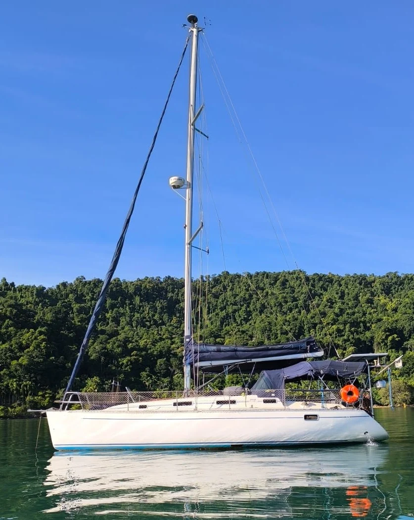 *ESPECIFICAÇÕES TÉCNICAS* Projeto: Roberto Barros (Cabinho) Construção: Estaleiro B&B Barcos Comprimento Total: 10,80 m Boca: 3,50 m *MOTORIZAÇÃO* Motor Yanmar 3YM30 29 HP 1398h Rabeta com hélice duas pás Capacidade tanque de diesel: 180 litros. *VELARIA / MASTREAÇÃO* Vela Mestra (tecido nacional) com capa, lazy Jack e Batten car Nautos Vela Genoa (tecido nacional) com proteção UV. Enrolador de genoa Nautos Genaker com enrolador Nautos Catracas Nautos *ELETRÔNICOS* Radar Raymarine (funcional com tela danificada) GPS AIS ONWA KP-39A Piloto automático Raymarine Rádio VHF Raymarine Novo *ELÉTRICA* 03 baterias de 105 amperes para serviço (janeiro 2025) 01 bateria de 75 amp. para motor Inversor Xantrex 3000Va Painel Solar 450w Inversor MPPT 30Ah *HIDRÁULICA* Sistema hidráulico (pressurizado na cozinha e banheiro e popa) Capacidade do tanque: 400 litros água Ducha de popa com água quente e fria Boiler (sistema de água quente) *ANCORAGEM / FUNDEIO* Guincho elétrico de ancora. Âncora Cabos *SALVATAGEM / APOIO* Bote Fibra Artsol 3,5m Motor de apoio do bote de 15HP *INFORMAÇÕES ADICIONAIS* Gaiutas e vigias Moonlight CD MP3 Bluetooth. Geladeira elétrica.Elber Fogão 02 bocas inox Estofados e colchões Novos Bimini e Dog-house em inox com capotaria Tlaloc Targa Super resistente