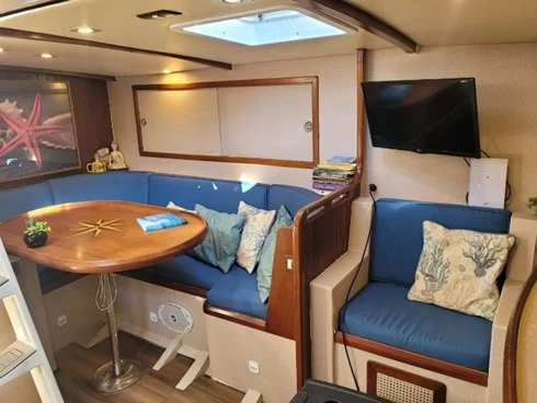 *ESPECIFICAÇÕES TÉCNICAS* Construtor: Barco Sul Calado: 2,60 m Pé direito: 1,80 m Casco Stripplanking Convés Divinicel Capacidade de Passageiros: 12 *LAYOUT* 02 cabines (sendo 01 suíte) Banheiro Salão Cozinha Cama de solteiro separada dos quartos e da sala *MOTORIZAÇÃO* Motor Yanmar 52 HP Horas do motor: 3.500 Revisado Capacidade Tanque de combustível: 200 litros (01 tanque de inox) *VELARIA / MASTREAÇÃO* Velas Genoa North Sail Mestra Quantum 02 genoas Vela Balão Pau de Spinnaker Estaiamento revisado (jul/2024) *ELETRÔNICOS* Piloto automático de quadrante Raymarine type 2 Display piloto automático Raymarine (novembro de 2024) Chartploter Raymarine Axiom 9 (fevereiro 2024) Profundímetro e transducer (fevereiro 2024) Estação de vento Raymarine Radio VHF Antena Starlink *ELÉTRICA* Elétrica revisada 02 Placas solares de 550w (Total 1100W) 02 Controladores Epever 04 baterias de 100 AH (400AH baterias chumbo) 02 baterias de 200 AH (400AH bateria de lítio) Inversor 3000W Xantrex Tomada de cais Tomadas 110v e 12v (sala, quarto e cockpit) *HIDRÁULICA* Aquecimento da água do chuveiro por boiler 02 banheiros elétricos Capacidade Tanque de água: 500 litros (02 tanques de inox 250l) *ANCORAGEM / FUNDEIO* Guincho Quick (Revisão jan/2025) 01 âncora Roca de 15 kg 50 metros de corrente em inox *SALVATAGEM / APOIO* Balsa de abandono revisada Bote Zefir 3 metros (com capa) Motor Mercury 15hp *INFORMAÇÕES ADICIONAIS* Licença MMSI Ar-condicionado (necessita revisão) Geladeira 120 litros Freezer 33 litros Fogão 4 bocas com forno (fev/2025) Micro-ondas Pintura de fundo micron (nov/22) - Pintura, e registros Marelon já comprados para próxima subida Troca de registros (nov/2022) Targa com turco reforçado (sobe o bote com motor) Capotaria com fechamento total (jul/2023) Box separado Prancha SUP Diversas ferramentas e peças de reposição Barco bem construído, rápido, seguro e confortável. Campeão Refeno 2025