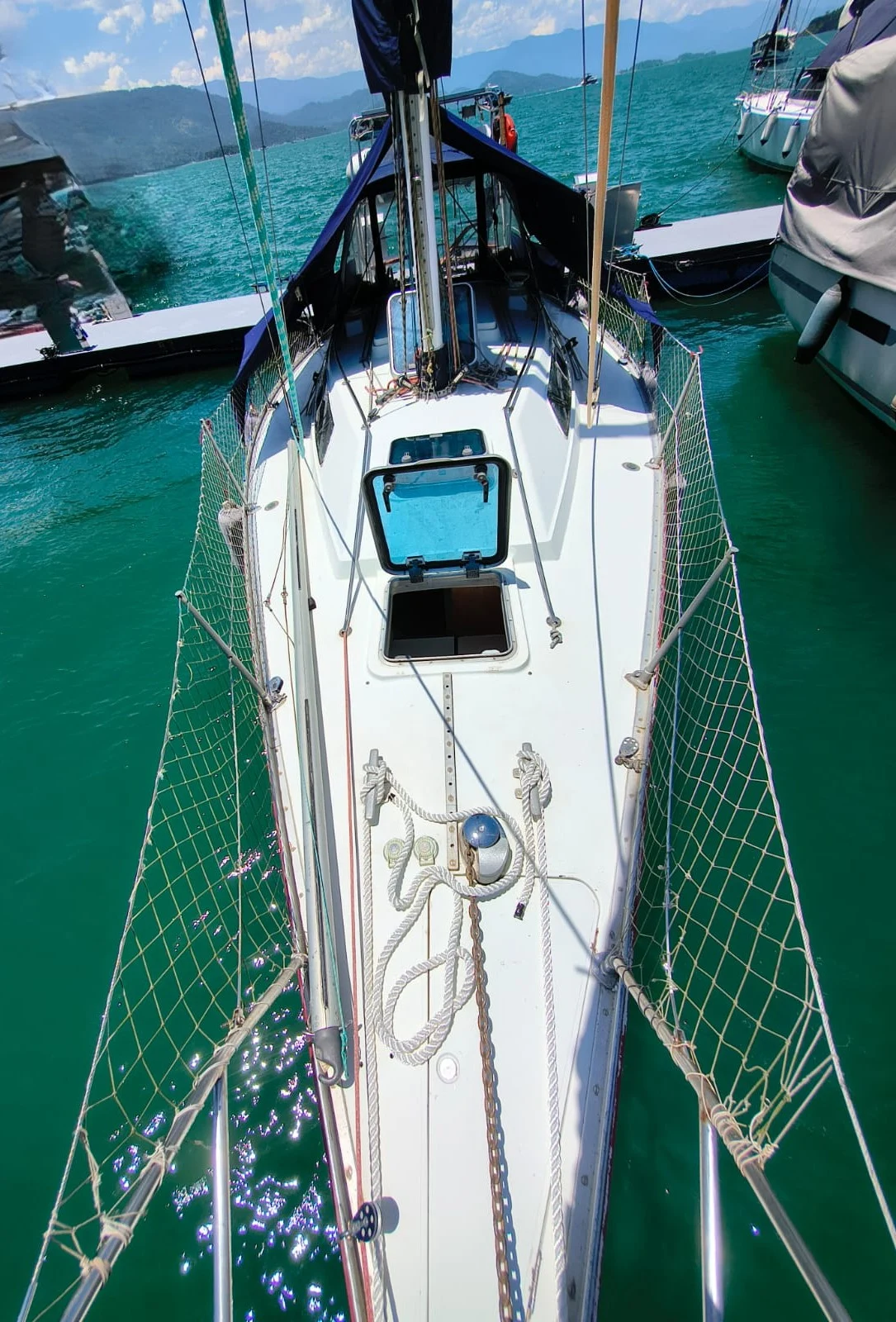 *ESPECIFICAÇÕES TÉCNICAS* Projeto: Ron Holland Fabricado em 1981 pela Fast (foi o 5º a ser construído, sendo os 10 primeiros fabricados com quase todo material importado. Fase 1 (1981) foi pra a´gua em 1984 Material: Fibra de vidro Cana de Leme Calado: 1,80 m Capacidade de passageiros: 5+1 Mar Aberto Capacidade Tanque de água: 120 litros Capacidade de combustível: 120 litros de diesel *MOTORIZAÇÃO* Motor Volvo Penta 2003 29 HP Retificado em outubro de 2024 150 horas Pé de galinha e selo mecânico novos (out/2023) *VELARIA / MASTREAÇÃO* 01 Mestra Dacron 01 Mestra Prolan 01 Genoa 2 01 Genoa 3 01 Balão Mastreação importada Estaiamento top todo trocado em 2022 08 catracas, sendo 02 individuais só para o balão Pau de spinnaker *ELETRÔNICOS* GPS Raymarine Piloto automa´tico ST2.000+ Estac¸a~o de vento Raymarine Ra´dio VHF *ELÉTRICA* Placa solar de 175w 03 baterias náuticas para serviço de 105a cada 01 bateria do motor (set/2024) Iluminação completa de led Tomadas 12 volts 05 tomadas 110V (para uso no cais) Inversor 500w para TV *HIDRÁULICA* 01 bomba elétrica pronta para emergência 01 bomba automática e uma terceira na chave 01 bomba automática para torneira de água doce 01 bomba automática para torneira de água salgada Vaso elétrico *ANCORAGEM / FUNDEIO* Guincho Quick 1.000w (na garantia, trocado em set/2024) A^ncora Rocna 12 kg 45 m de corrente 8mm 80 m de cabo *SALVATAGEM / APOIO* Bote fundo ri´gido 2m Remar Motor Mercury 3.3 Salvatagem dentro da validade *INFORMAÇÕES ADICIONAIS* Pintura de fundo feita em outubro/2023 Geladeira Elber 12v Fogão com forno em Inox Bucha do leme nova. Capotaria completa em bom estado, inclusive com tenda de retranca Ótimo turco e guincho para içamento do bote Púlpitos de popa e mais um na proa Embarcação recebe cuidados 6 vezes na semana por marinheiro. Proprietário extremamente cuidadoso.