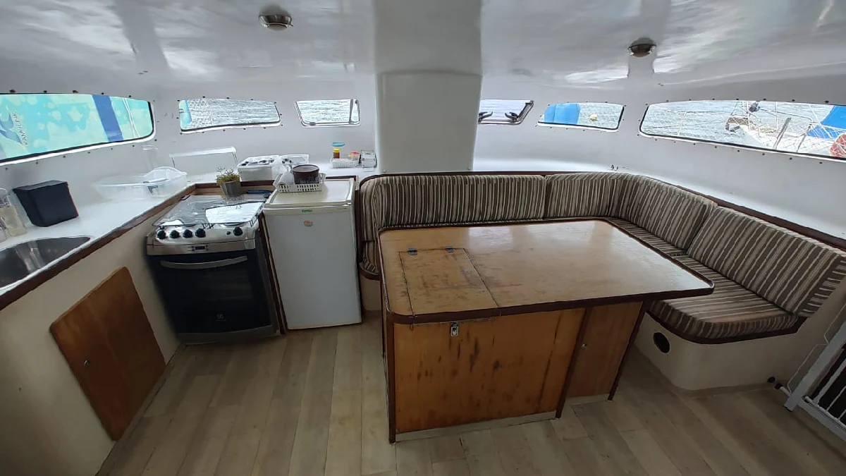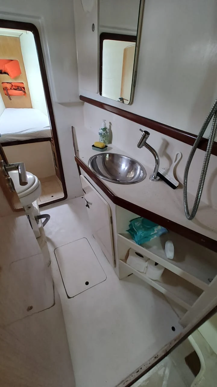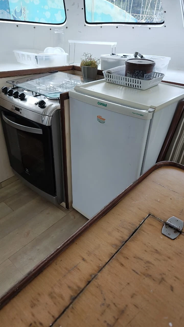 *ESPECIFICAÇÕES TÉCNICAS* Construtor: Bate e Vento Embarcações Artesanais LTDA Material: Fibra de vidro Capacidade: 1 + 15 Navegação: Mar Aberto Calado mínimo: 0,60 m Calado com bolina: 1,90 m Altura do mastro: 15,30 m Altura da cabine central: 1,85 m Capacidade Diesel: 300L Capacidade Água: 400L *LAYOUT* 04 camarotes 02 banheiros Sala e cozinha integrados COZINHA/SALA: 1 microondas, 1 freezer, 1 geladeira, 1 fogão a gás 4 bocas. *MOTORIZAÇÃO* 02 Motores Yanmar 3YM30, 39HP, de 3 cilindros em linha 02 rabetas Yanmar SD25 *VELARIA / FERRAGENS* 01 vela mestra marca Bate Vento 01 Genoa marca Bate Vento 01 vela buja marca Bate Vento 02 Enroladores de Genoa Nautos 01 mastro em alumínio, marca Manotaço 03 catracas Harken No. 32 01 catraca Harken No. 44 *ELETRÔNICOS* Chartplotter marca LOWRANCE, modelo HDS5 Piloto automático Raymarine ST6000 Rádio VHF Yaesu Rádio SSB EPIRB Estação de vento Raymarine, ST60 + Wind Bússola Luzes de navegação Buzina *ELÉTRICA* Placa solar 02 baterias Heiar 04 baterias Freedon 04 baterias estacionárias 185 amp Carregador de bateria Usina Bombas de porão 02 alternadores elétricos de 12v 01 inversor de voltagem Usina 1500 watts *ANCORAGEM / FUNDEIO* Âncora Rocna aço galvanizado 15kg 100 metros de correntes *SALVATAGEM / APOIO* Bote rígido em fibra de vidro Motor de popa Mercury 5HP 02 boias circulares Balsa salva vidas marca ANGEVINIER, modelo 2100, para 10 pessoas, vencida em 05/2020 *INFORMAÇÕES ADICIONAIS* Pintura feita em Novembro/2023 Toldo rígido com fechamento material Aberto a estudar propostas para pagamento à vista / avalia ainda possibilidade de pegar uma lancha pequena como parte do pagamento