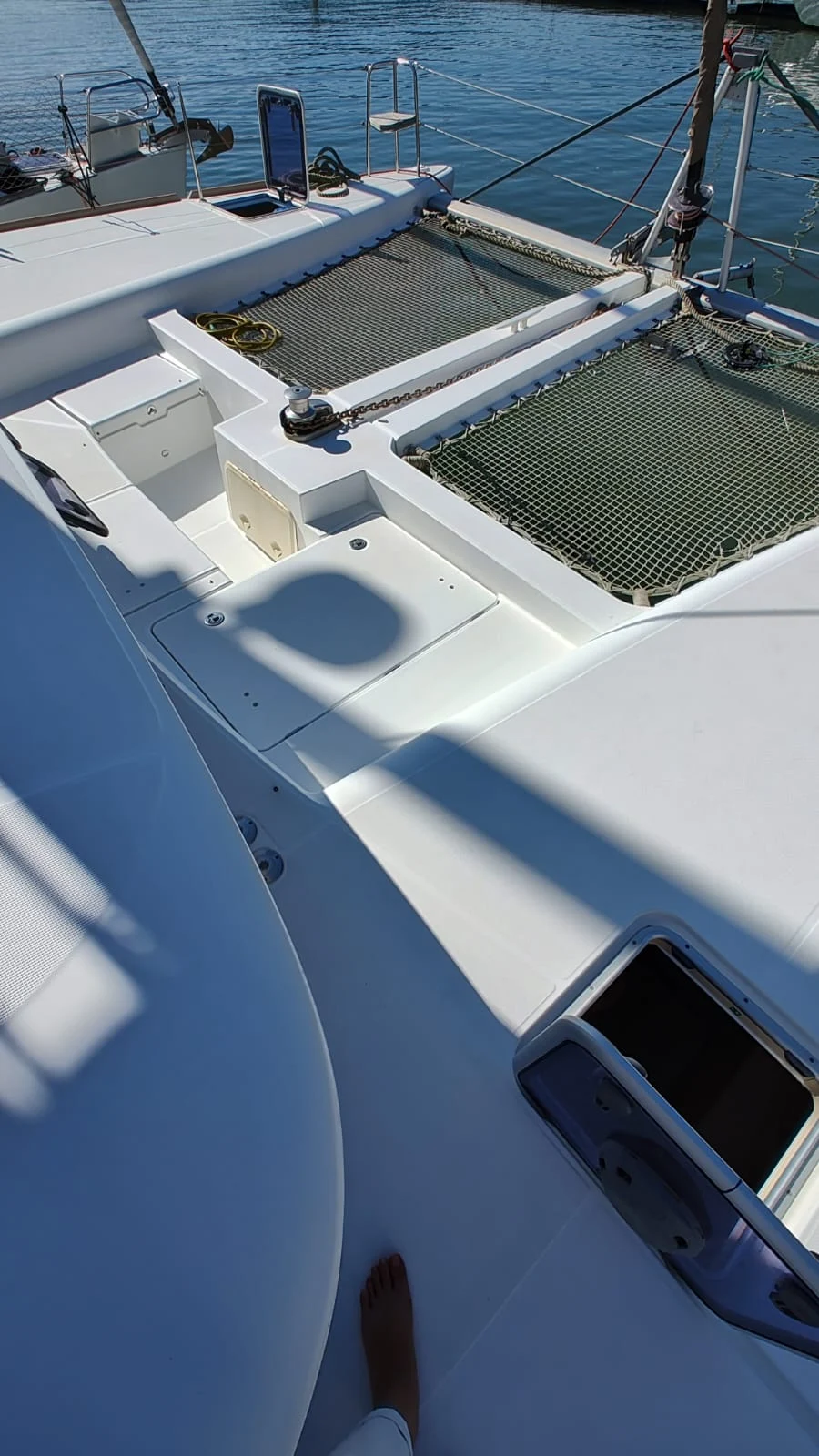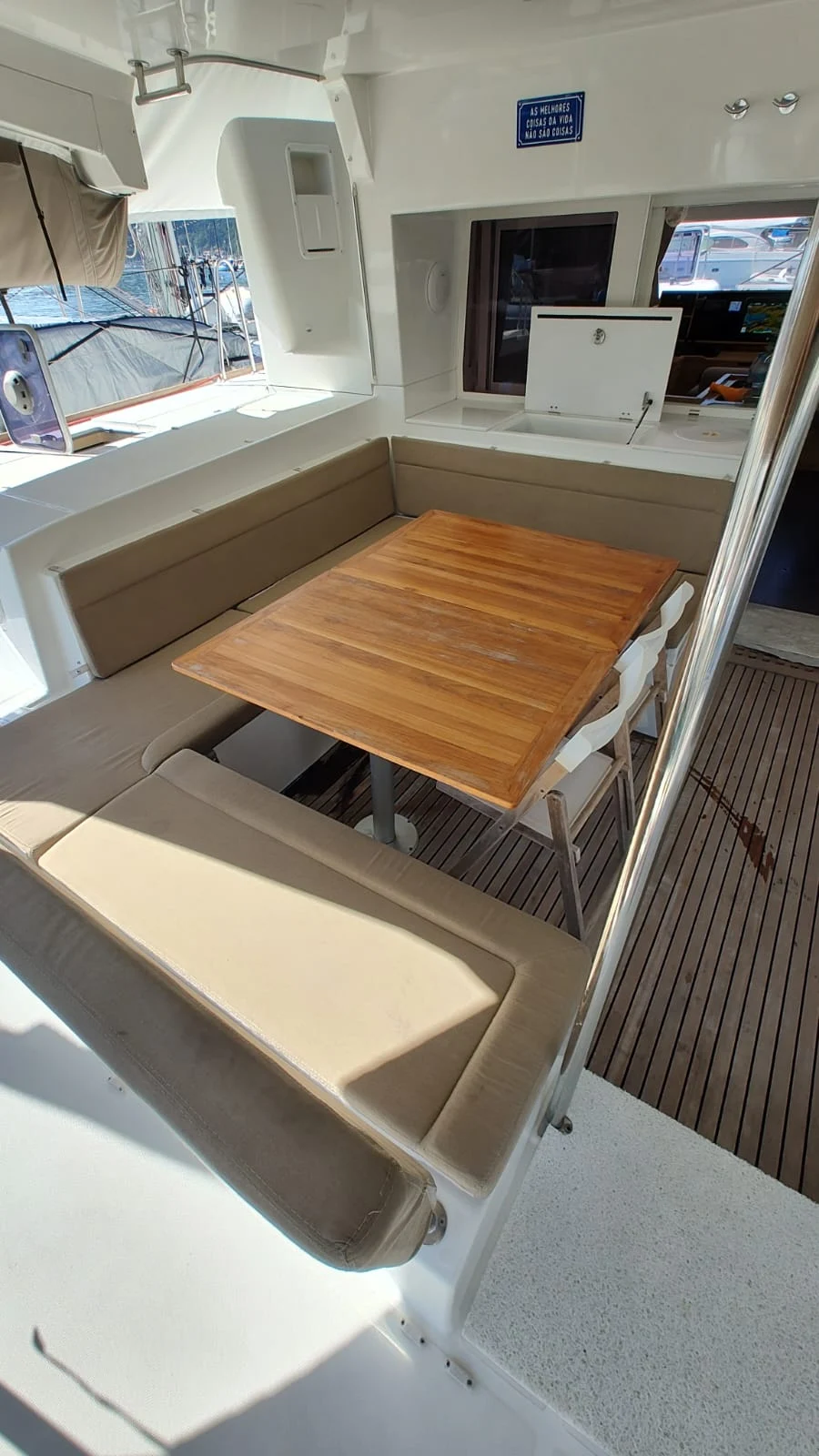*ESPECIFICAÇÕES TÉCNICAS* Fabricante: Lagoon Casco 299 Projeto: Van Peteghem-Lauriot Prévost Comprimento (LOA): 13,96 m / 45,79 pés Boca: 7,87 m / 25,81 pés Calado (Max): 1,30 m / 4,26 pés Capacidade Tanque de água: 600 litros Capacidade Tanque de combustível: 1.000 litros de Diesel *LAYOUT* 03 suítes, sendo uma master com escritório. Salão *DESTAQUES* Dessalinizador 220V e 12V – 100 litros/hora Enroladores de Genoa elétricos - Facnor Estaiamento Novos (2025) Ar-condicionado individual para todos os ambientes (4 unidades) 04 catracas elétricas Sky com antena, sistema amplificador de sinal de celular e StarLink instalados e funcionando Gerador Onan 12 KVA (revisão geral em 2022) Máquina de lavar louças Máquina de lavar e secar roupas *MOTORIZAÇÃO* 02 Motores Yanmar 54 hp com rabetas SD60 02 Hélices folding 3 pás Filtros duplos racor para motores e gerador. *VELARIA / MASTREAÇÃO* Velas Mestra square top Genoa com enrolador Gennaker Northsails com enrolador 04 catracas elétricas *ELETRÔNICOS* Sistema de navegação Raymarine Radar Estações e AIS com repetidores completos no salão, Fly e mostrador adicional no salão de popa. 2 pilotos automáticos com sistemas hidráulicos independentes (chave comutadora) Controle remoto do sistema Raymarine. 2 rádios VHF Raymarine (Salão e Fly) com antenas independentes. Sistema Epirb ACR Globalfix V4 GPS *ELÉTRICA* Gerador Onan 12 KVA (revisão geral em 2022) Inversores 2.500W 220V e 1500W 110V. Tomadas 220V, 110V, 12V e USB em todos os ambientes. Placas solares (4 x 120W) e controlador digital. Compressor elétrico. 2 bombas de porão adicionais com controle no Fly Luzes complementares de fundo e de popa Sistema de água doce e salgada pressurizado na proa. Pressurizador de água doce duplicado, com sistema de comutação. *ANCORAGEM / FUNDEIO* Guincho de âncora com repetidor no Fly Âncora Roca 45Kg 100m de corrente 12mm. Âncoras adicionais: Delta 45Kg e Bruce 30Kg *SALVATAGEM / APOIO* Bote com comando e roda de leme 03 motores de popa: 4T Yamaha 15HP, 4T Yamaha 2,5HP e Mercure 15HP 2T. *INFORMAÇÕES ADICIONAIS* Fly total para 6 pessoas Microondas Máquina de lavar louças Máquina de lavar e secar roupas Sanduicheira 02 geladeiras 12V Máquina de gelo Freezer 12V Televisão 32” com lift e 55”no salão Televisão 26” na suíte master. Home Theater completo e sistema de som Bose, sub woofer e caixas no salão, no cockpit e Fly. Capotaria completa com fechamentos laterais, fabricada em 2022 pela TlaLok. Balcão em Teca para churrasqueira e lavatório de popa. Registros para instalação de banheiro de marinheiro no paiol de proa Mesa escamoteável em Teca no salão de popa Alojamento próprio com 3 tanques de mergulho autônomo.