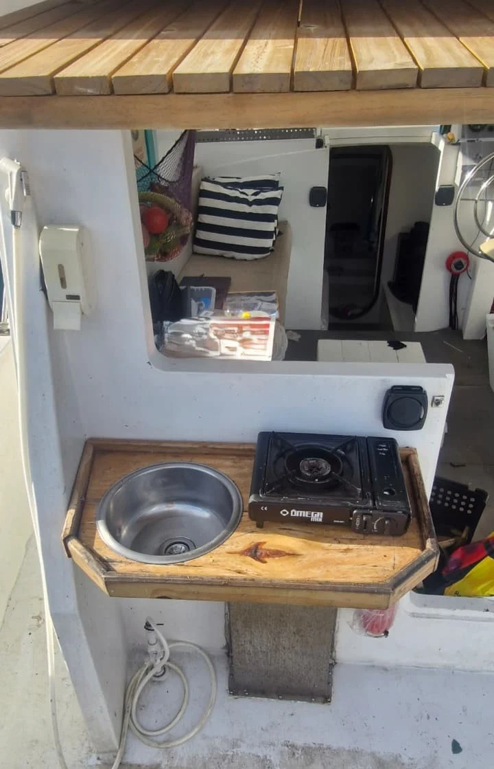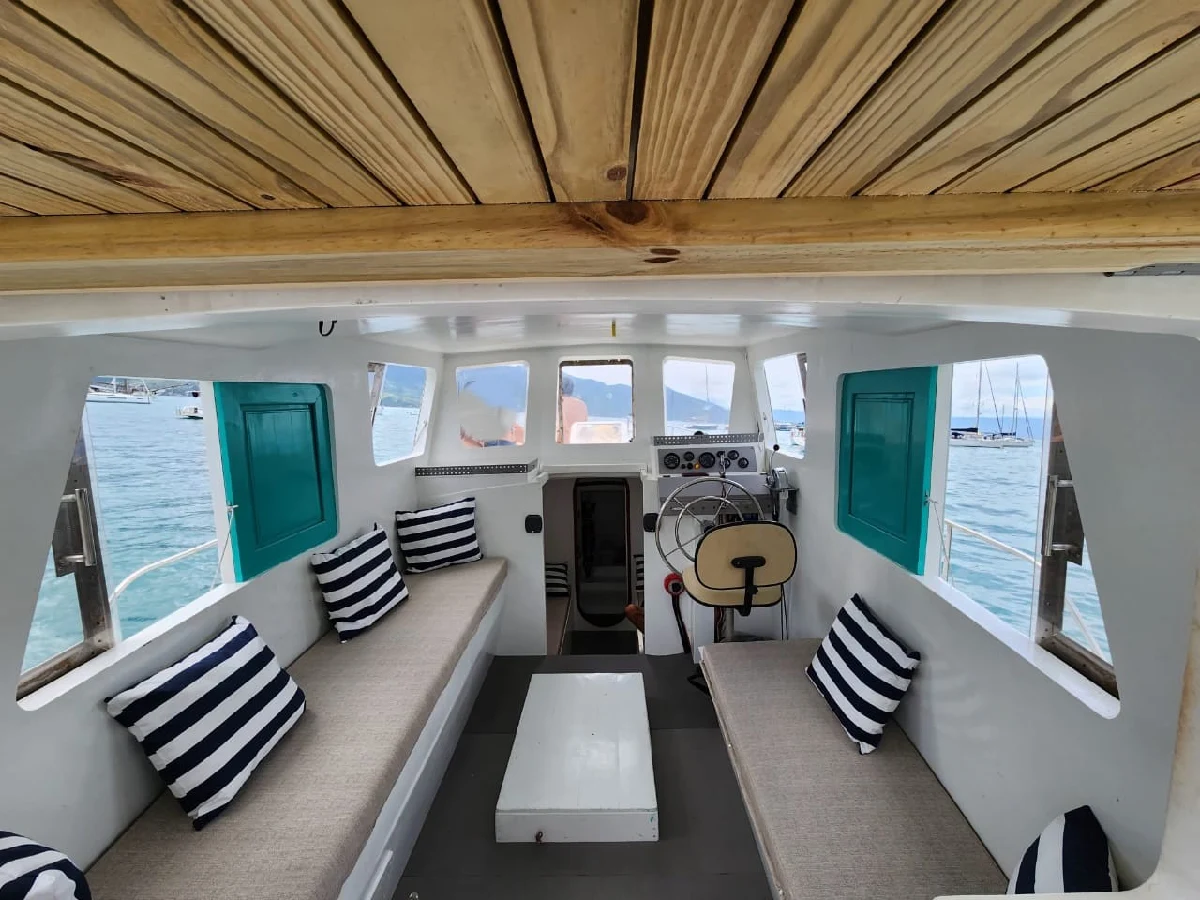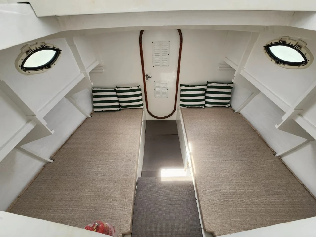 *ESPECIFICAÇÕES TÉCNICAS* Projeto: Roberto Barros Engenheiro Naval: Luis Gouvea Material casco: cedro revestido em fibra Comprimento Total: 8.70 m Boca máxima: 3.52 m Calado: 0,52 m Deslocamento: 4.800 kg Capacidade de passageiros: 1 + 12 *MOTORIZAÇÃO* Motor MWM 229 75 HP Pé de galinha Reverso hidráulico ZF Consumo 5l/h a 6 nós Capacidade do tanque: 120 litros diesel *ELETRÔNICOS* Radio VHF novo *ELÉTRICA* 02 Baterias de 150 AH *HIDRÁULICA* Capacidade tanque de água: 800 litros 02 bombas de porão Bomba de água doce *SALVATAGEM / APOIO* 04 extintores 13 coletes *INFORMAÇÕES ADICIONAIS* Deck de popa com escada em Inox Estofamentos novos Equipamento de som JBL Alto-falantes JBL 10 estabilizadores Churrasqueira magma *Previsão de melhorias para os próximos dias:* Painel solar novos Regulador de voltagem Inverter 3000w sinusoidal pura Geladeira.