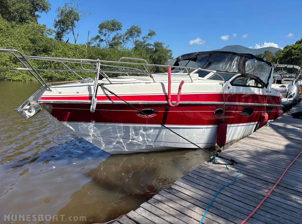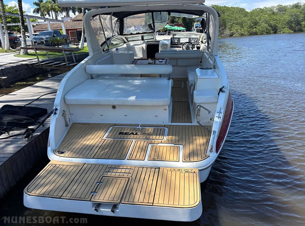CÓD 6000 REAL 350: popa estendida, 2011, 2x vp d3 220hp, diesel, 640hs de uso, rabetas vp dp, 38 top e 26 cruzeiro, âncora, ar condicionado, baterias, bomba de água doce, (3) bombas de porão, bússola, capota c/fechamento total, carreta de encalhe, (2) churrasqueiras elétricas, chuveiro de popa, (11) coletes, deck hidráulico, (6) defensas, direção hidráulica, extintor, farol, flap hidráulico, fogão indução, foguetes, geladeira, gps c/plotter, guincho elétrico, inversor, joystick, luzes sub aquáticas, microondas, rádio vhf, sanitário elétrico, som, sonda, teca eva, tv, tomada de cais, ventilador... F/c. Nunes (13)99706-0395