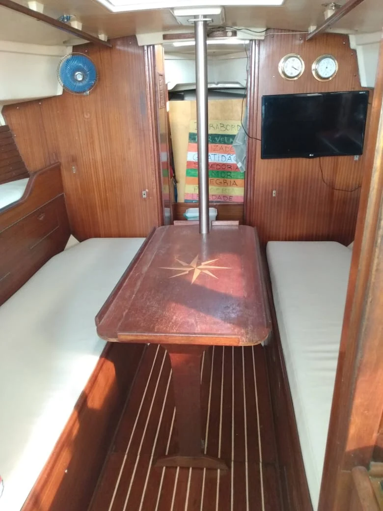 Veleiro Clássico Francês - Arpège 30 Projeto: Arpège 30 Estaleiro: Dufour - FR Ano: 1969/70 Tamanho: 30 pés / 9,25 m Boca: 3 m Calado: 1,40 m Casco em fibra de vidro Motor Volvo Penta 2002 18 hp em perfeito estado Barco na família a 9 anos! 2 Velas grande Dacron 1 velas Genoa 120% - Dacron Charnet 1 vela Genoa 100% - Quantum Sail com capa UV 1 Balão simétrico 1 Balão assimétrico - North Sail ; Lazy Bag - novo Enrolador de genoa Nautec; 2 catracas Lewmar de 2 velocidades 1 catraca lewmar na secretaria c/ 2 stopper harken 2 catracas no mastro; Adriças, escotas e cabos em bom estado, Traveller harken; Tanque de combustível com 40 litros em inox; Pintura de fundo e costado - NOVA !! (Fev/2026) Sanitário Jabsco com descarga elétrica. Água pressurizada nas pias do banheiro e cozinha. Chuveirinho na popa. Geladeira Resfriar 75 litros 12V Fogão Semer 2 bocas c/ forno; Gás de 5kg; 1 tanque água de inox em BB com 70 litros + 1 tanque inflável em BE 200 litros Targa com 1 placa solar de 265W; 2 baterias de serviço Heliar - Freedom 115 A 1 bateria de partida Heliar Frota de 70 A ; Controlador de carga Triron 2210n (20A) com mostrador digital; Inversor 1000w; Elétrica em boas condições; Tomada 12v; Rádio VHF Standard; Bomba de porão com automático; Piloto automático Autohelm 1000 Capotaria: Bimini e Doghouse (fev 2020 - Pepe Capotaria) Estofados internos e do cockpit em bom estado; 1 Ancora CQR - 25 lbs; 12 metros de corrente galvanizada + 30 de cabo