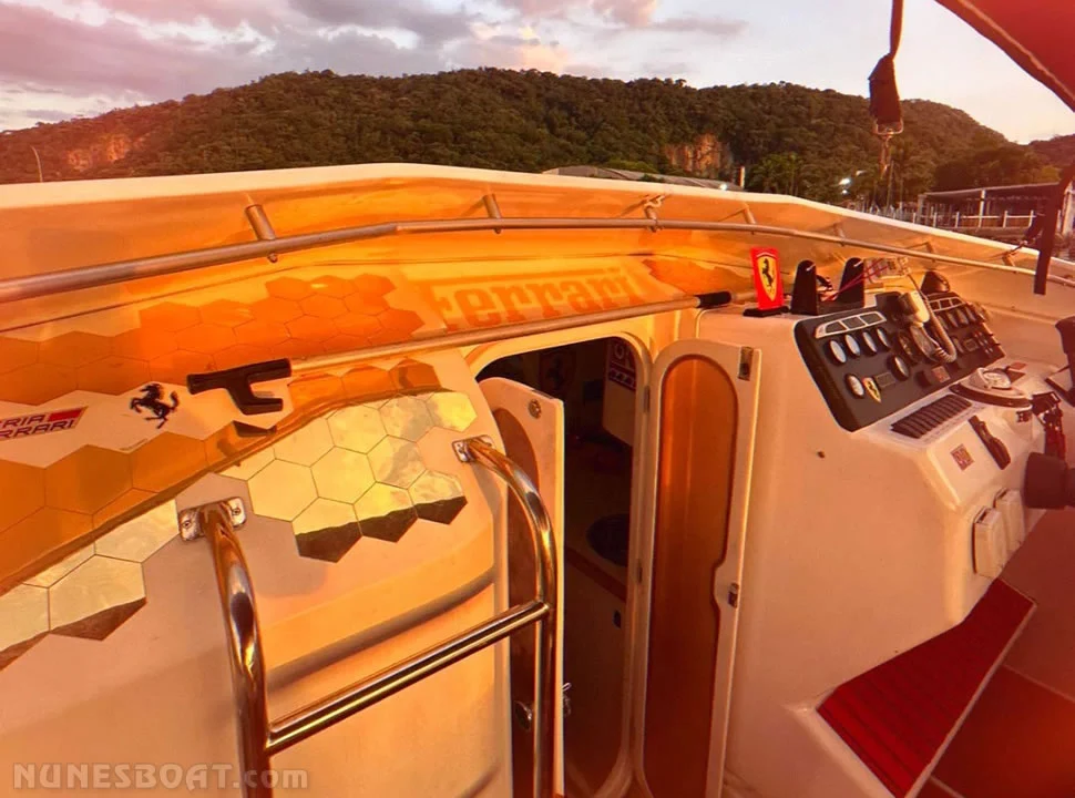 CÓD 7310 MAGNUM 42: 2000, 2x vp kad42 235hp, diesel, 100hs de uso, 60 top e 40 cruzeiro, rabetas vp dp, âncora, bomba de água doce, (4) bombas de porão, bote inflável jet turbo, bússola, capota c/fechamento total, carregador de bateria, carreta de encalhe, churrasqueira, chuveiro de popa, (16) coletes, (8) defensas, direção hidráulica, farol, geleira, gps c/plotter, guincho elétrico, inversor, microondas, rádio vhf, sanitário elétrico, som, teca eva, tv 30”, tomada de cais, (6) ventiladores... F/c. Nunes (13)99706-0395