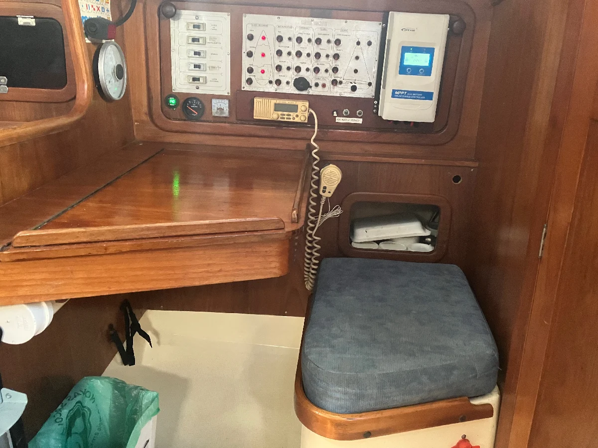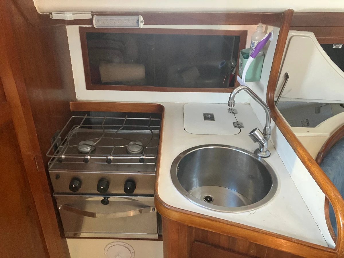 CARACTERÍSTICAS GERAIS • Boca 3,24 m, Calado 1,70 m, Altura da cabine 1,80 m • Documentação mar aberto 1 + 9 • Cana de leme de fortuna • Escada de popa retrátil de 5 degraus • Escotilhas: Salão: 1 Moonlight 51x38 cm com ventilador solar Camarote de proa: 1 Moonlight 51x38 com ventilador solar Bordos: 8 Moonlight • Fundo: pintado em agosto de 2024 com 3 latas de Micron • Porão completamente seco ATRACAÇÃO • Ancora Roca 12 kg com 35 m de corrente calibrada 7 mm adquirida em dezembro 2025 • Ancora reserva Danforth 7,5 kg dobrável com 10 m de corrente 8 mm • Guincho: Lewmar V700 ELETRO/ELETRONICA • GPS Raymarine Element 7 com Navionics e profundímetro –instalado em 01/22 • Baterias: Guincho: AC Delco 60 Ah, Novembro 2024 Motor: AC Delco 60 Ah, Novembro 2024 Serviço: 2 Estacionárias Freedom DF-3000 185 Ah, Outubro 2024 • Controlador de carga MPPT Epever Dual Battery (carrega serviço e motor simultâneas) • Eletricidade, tomada de terra: Medida exterior 52 mm, interior 45 mm • Estação de vento: Navman Wind 3150 • Inversor 1000 W novo • Sonda/odômetro/temperatura: Navsea Multi 400 • Placa Solar: Jinko JKM390M-72-V 390 W • Rádio VHF ICOM M59 no painel e um extra de mão Uniden • Relé automático de carga VSR Blue Sea 120 A. Permite motor carregar baterias de serviço sem danificá-las. MOTOR • Volvo Penta D1-30F instalado em setembro de 2021 com 179 horas • Painel com tacômetro digital, marcadores de temperatura, pressão do óleo e voltimetro, painel liga/desliga. • Filtro de água salgada • Válvula anti-sifão • Racor Parker (colocado em 05/2024) com botão de sangrar • Comando do motor Nautos • Diesel: Depósito: inox 60 L (49,5 x 23 x 61 cm) com tubo de nível • Motor de popa Mercury 3.3 comprado em 2020, estado de novo PROPULSÃO • Rabeta: 120SD em perfeito estado. Óleo, anodo e retentores trocados em 2024 • Hélice: Gori folding 16,5 x 13” instalado em agosto de 2024 2 Hélices de alumínio reservas com cone e parafusos: (16x13) HIDRÁULICA • Bomba de água doce e tanque acumulador de pressão Seaflo • Bomba de esgoto elétrica: Rule 1000 GPH • Bomba de esgoto manual • Boiler 20 L em aço inoxidável (água quente no banheiro com misturador) • Depósitos de água doce em inox • Passa cascos trocados em Julho 2022 por Trudesign com registros novos • Vaso Sanitário elétrico Jabsco Model 37255-Series (quiet flush) com filtro de água salgada • Válvula de retenção Jabsco (circuito de esgoto elétrico) • Torneira da pia do banheiro com misturador quente/frio CAPOTARIA • Bimini em aço inox com capotaria Tlaloc em outubro 2023 • Doghouse em aço inox com tapeçaria Tlaloc em janeiro 2024 • Targa em aço inox com suporte para placa solar e bote e com 2 bancos. • Toldo integral da retranca reformado na Tlaloc em 2024 • Toldo para proa cobrindo bote feito na Tlaloc em 2024 MASTREAÇÃO E VELAS • Batten Car na mestra, Nautos • Burro mecânico Nautos • Mastro com 12,60 m e Retranca com 4,60 m • Catracas: Adriças: 16 Aldo (duas) Escotas: 22 Aldo (duas) • Cunhos: 2 na proa e 4 na popa em inox • Enrolador de genoa Nautos • Lazy Jack novo refeito em 2024 na Tlaloc • Cabos de suspensão: Marlow 8PL P/S 5 mm • Manicaca Harken (2) • Mordedores (stoppers) Spinlock XA: • Pau de spinaker 3,56 m • Velas: Mestra (Dacron), genoa 120% (Dacron) e Geneker: Multisail (alterou nome para Sass) Genoa Prolam: Carlos Piccolo (nova sem uso) Genoa pequena (70%) Dacron: YUL • Estai de proa e popa de 7 mm trocados em 2020 • 3 brandais de cada bordo: 2 de 7 mm e um de 6 mm COZINHA • Geladeira: Elber 12V instalada em setembro 2020 com controle digital • 2 Botijões de gás P2 • Churrasqueira Magma inox redonda • Fogão de inox: 2 bocas e forno com suportes de panelas • 2 compartimentos de gelo • Pia com água doce pressurizada NAVEGAÇÃO • Bussola Richie Powerdamp de 5” e outra Rigel Poseidon 7” • Piloto automático na roda de leme: Raymarine ST4000+ • Bote fundo rígido: Zefir F200, ano 2007 - Trocado todo flutuante na Zefir em 02/2022 CONFORTO • Mesa no cockpit em Teka • Roda de leme inox removível com pedestal e navpod • Condicionador portátil Midea 10 mil Btu 110 VAC • Suporte lateral em inox para SUP SEGURANÇA • Extintores: 0,9 kg 1 na mesa das cartas, 2 na mesa do salão • 2 boias laranjas com cabo de retinida • 2 Fachos Holmes • Pirotécnicos: Facho manual luz vermelho: 2 Foguete manual estrela vermelha c/ paraquedas: 2