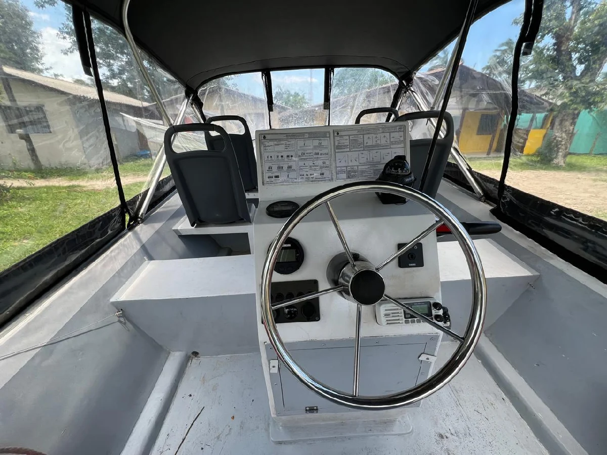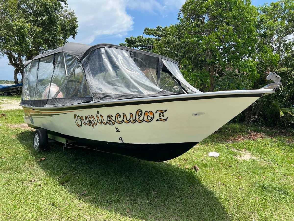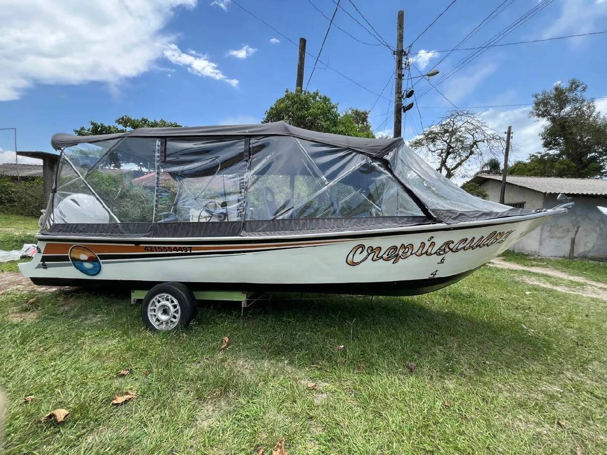 Lancha em vibra de vidro, comprimento 6,80 por 2,30 de boca, registrado como táxi Náutico para 13 pessoas. Motor Yamaha 115 HP, poucas horas de uso, comando hidráulico novo, não foi trocado o óleo de cárter e nem da rabeta (motivo não ter horas trabalhadas que necessite as trocas de óleos). Motor e casco praticamente zero. Acompanha: Coletes salva-vidas Boias 1 âncora 1 remo 1 bússola 1 rádio VHF 1 tanque 1 bateria 100 amp. Moura náutica 1 bomba de porão