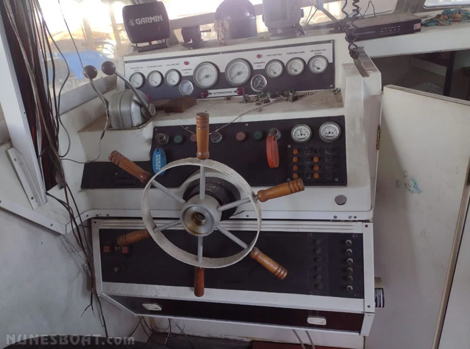 CÓD 5350 CARBRASMAR 32: modelo passeio, c/flybridge, 1986, 2x mb 352 220hp, diesel, pé de galinha, 100hs, 32 top e 20 cruzeiro, âncora, antena de vhf, baterias, bomba de água doce, (4) bombas de porão, (2) bússolas, buzina, carreta de encalhe, churrasqueira, chuveiro de popa, (10) coletes, extintores, (2) faróis, geleira, gps c/plotter, inversor, rádio vhf, sanitário comum, som, strobo, tv 22”, tomada de cais, (2) ventiladores... F/c. Nunes (13)99706-0395
