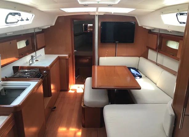 Veleiro Beneteau Oceanis 40 – 2007 (Fabricado na França) Motorização: Yanmar EJH4E 40 HP Layout: 3 Cabines / 2 Banheiros Velas: 1 Grande e 1 Genoa / Genoa com enrolador North Sail Geneeker Nome do Barco: Terra Natal (antigo) Localização: Clube Naval Charitas - Niterói Descrição: • Comprimento total: 11,82m • Comprimento do casco 11,23m • Largura total 3,91m • Largura do casco 3,91m • Capacidade de água doce 350L • Capacidade de combustível 200L • Capacidade frigorífica 130L • Potência máxima recomendada 30kw • Capacidade das baterias 2x105Ah + 2x 70Ah • Equipamentos Eletrônicos (Raymarine) • VHF (um fixo + um portátil) • Piloto aut. ST 6002 • Sonda ST 60+ • Wind ST 60+ • GPS • Chart Plotter Axiom – novo • Controle Remoto Raymarine • Acessórios e Equipamentos • Ducha para ancora Jabsco • Tv 43” - novo • Inversor Xantrex 1100- novo • Antena de TV Sha Shkespeare A23 • Boiler Eletrico -60L • Guincho Eletrico • Rádio vhf • Bimini com fechamento de popa e • 3 Ventiladores pressurizado lateral • GERADOR Onan 5 kV • Turco na popa em inox- novo • Ar Condicionado 2 - 12.000 Btus e 8.000 Btus Crusair+A37 • Fogão a gás 2 bocas • Geladeira/freezer 130L 12v • Bomba de porão com automático • Painel elétrico do wc, torneiras e • chuveiro todos água quente e fria • inclusive na ducha/chuveiro de popa. • 2 Saídas de som ext. + 2 internas. • 50 Metros de corrente 10mm com marcação ( 30 metros de cabo novo) galvanizada a fogo 2017 • Catracas Harken Painel • 1 leme hidráulico e manual • Teka somente nos acentos • Defensas • Eixo pé de galinha • 2 Bússolas. • Âncora 20kg em uso • Capotaria completa (cobertura geral, • doghouse e bimini com laterais, capa • do motor de popa e churrasqueira). • Suporte para 2 botijão de gás Glp de • 2,5kg cada. • Bolete de apoio • Motor de popa Yamaha 4hp