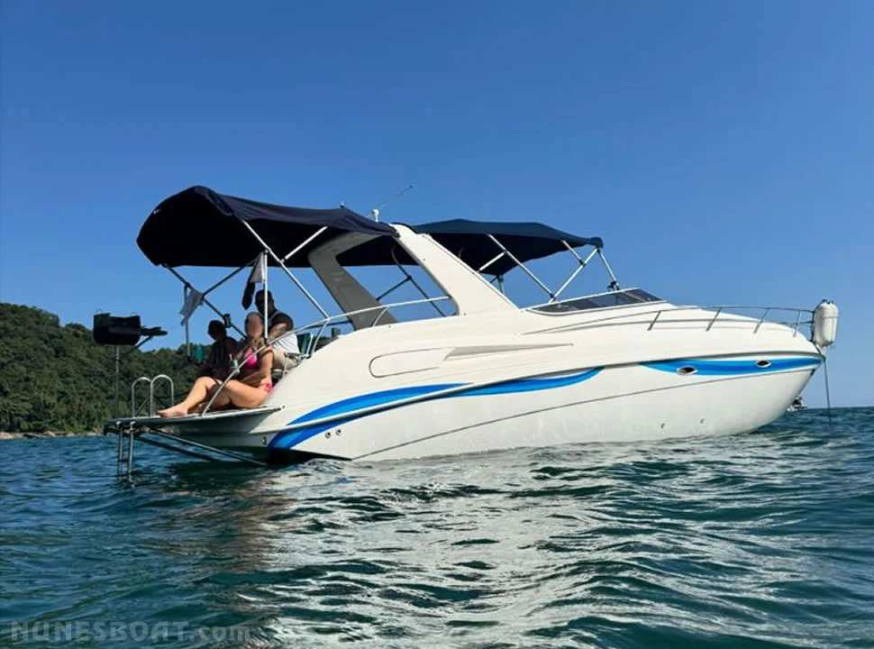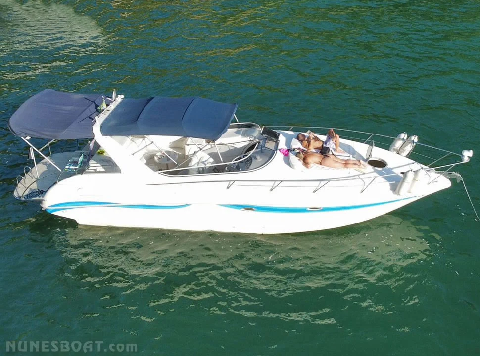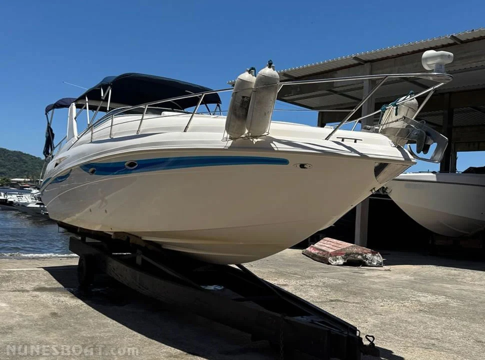 CÓD 5690 RUNNER 33.5: alongada, 2004, 2x mercruiser 1.7 120hp, diesel, 300hs de uso, 32 top e 28 cruzeiro, rabeta bravo one, âncora, antena vhf, bomba de água doce, (3) bombas de porão, bússola, capota c/fechamento total, carregador de bateria, carreta de encalhe, churrasqueira, chuveiro de popa, (13) coletes, (6) defensas, direção hidráulica, extintor, farol, flap hidráulico, geladeira, (2) gps c/plotter, guincho elétrico, farol, frigobar inversor, micro-ondas, rádio vhf, sanitário elétrico, som, teca eva, tv 26”, tomada de cais... F/c. Nunes (13)99706-0395