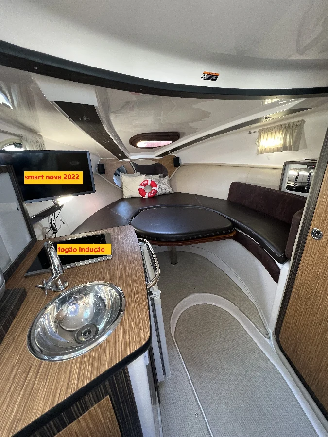 Lancha diferenciada com 500h motor mercruiser 5.7 Ano 2009 Plataforma estendida para 305 Sempre de água doce comprada zero em POA , terceiro dono! Equipada com: * Carreta 2021 * Microondas * Fogão indução * Frigobar * Tv smart * Medidor de âncora * Farol com controle remoto * Inversor * Tomada de cais * Carregador de bateria novo 100a * Solário * Som * Toda iluminação em led. * Fechamento total, até plataforma. * Capa proteção nova * Três baterias 150amp Moura * Radio VHF Maritmo * Lancha vistoriada com seguro total! Extremamente cuidada tanto na estética quanto manutenção Trocado recentemente, óleo e filtro motor , óleo de rabeta, filtro combustivel, bomba d'água, correia, tudo de marca original.. Sistema de combustivel revisado com limpeza de bicos..
