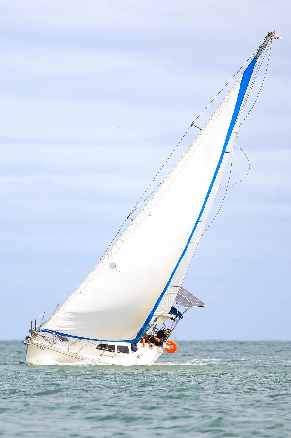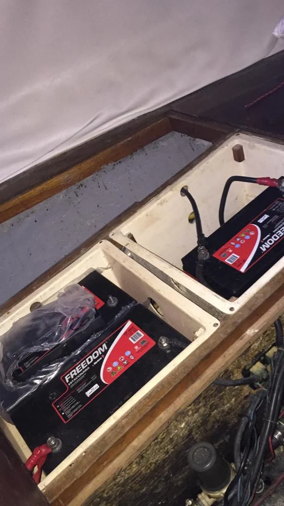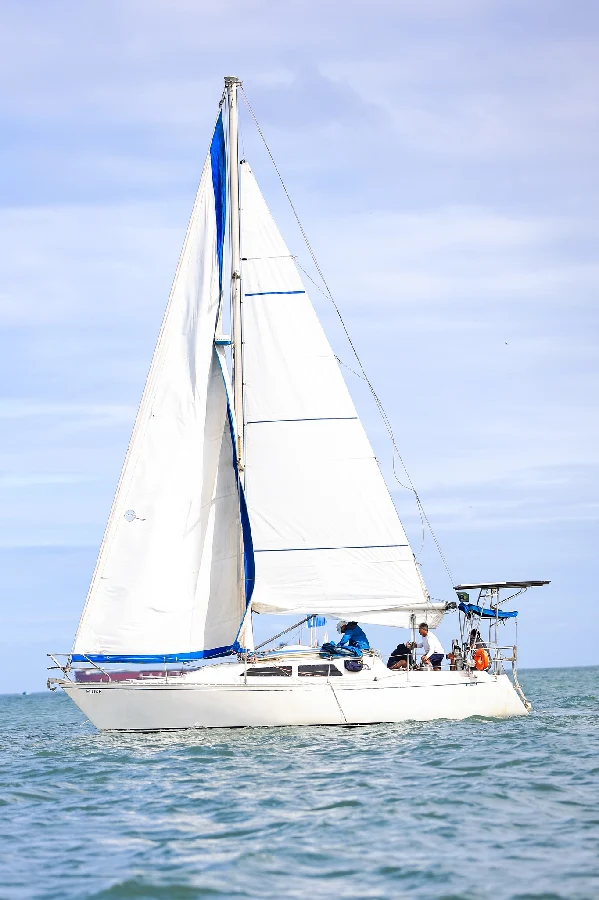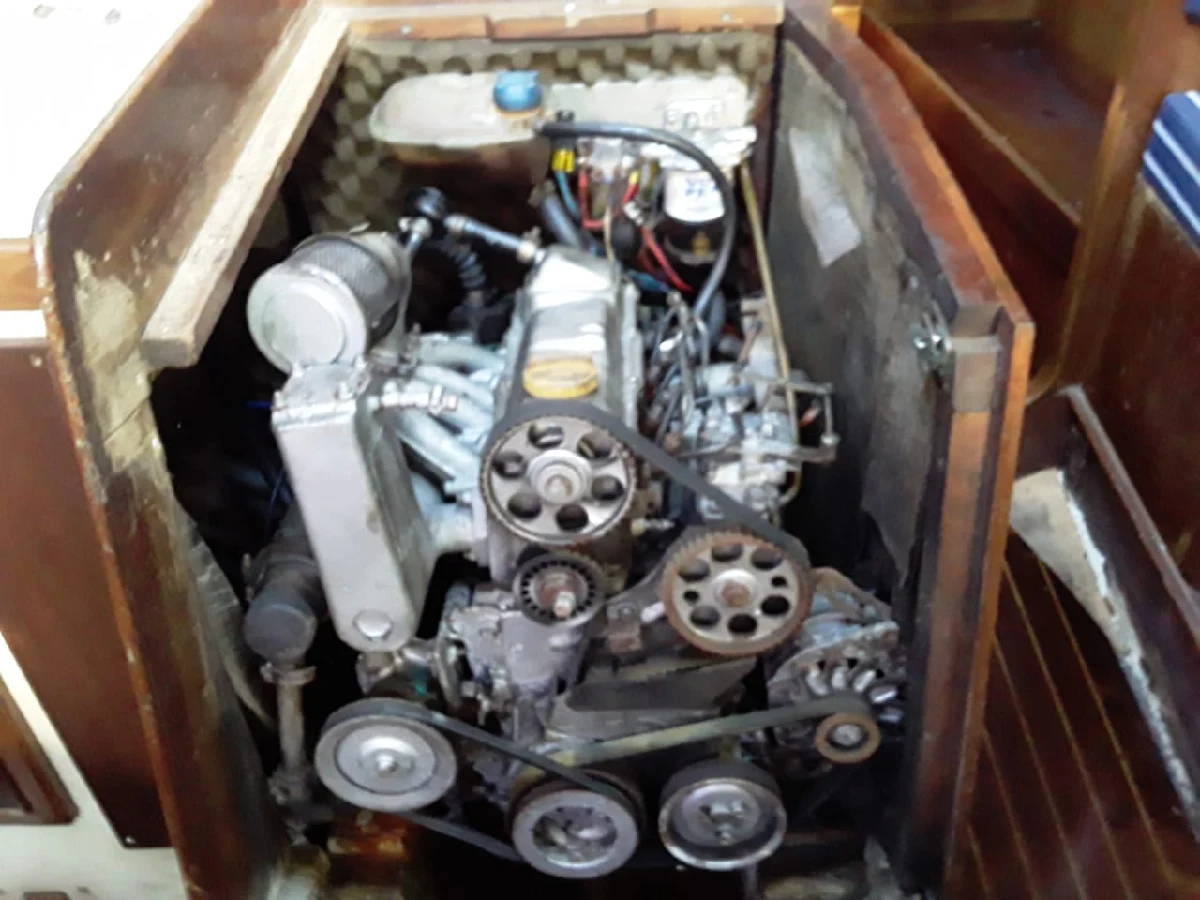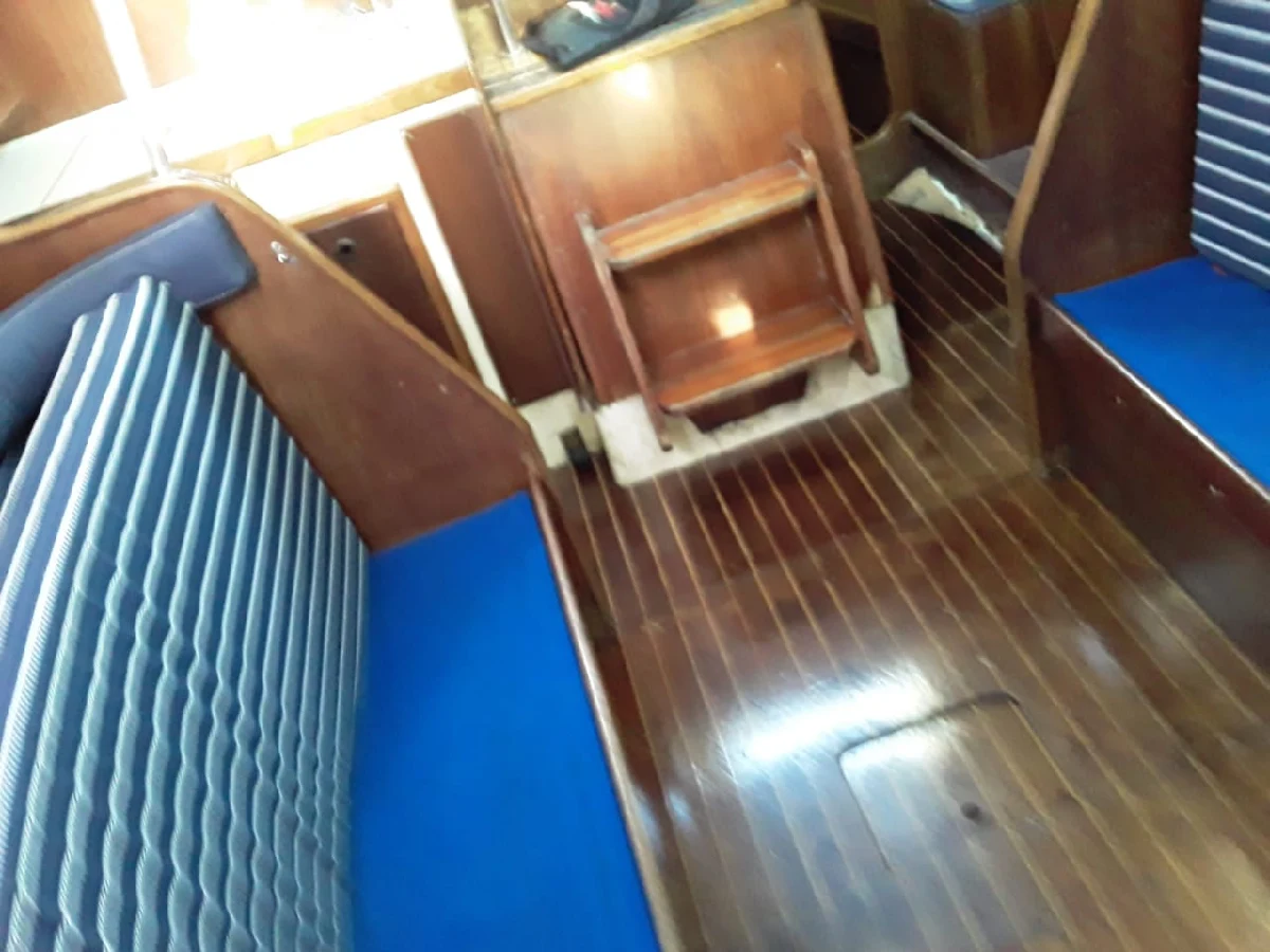 fibra de vidro. Embarcação em boas condições. 01.Motor de centro com caixa reversara e pé de galinha. VOLKSWAGEN CONTROL.04 cilindros em linha.48 HP.Óleo diesel.Cerca de 60 litros.(Estimado). 02 marca WIMAQ, modelos 16. 02 marca WIMAQ, modelos 30.02 marca WIMAQ, modelos 44. Enrolador marca NAUTOS. 01 Vela Mestra marca QUANTUM SAILS Triradial. 01 Vela Genoa. Baterias :01 marca MOURA.02 marca FREEDOM.105 Amp/h. 01 com inversor de voltagem marca XANTREX, modelo True Charge 20. Guincho eletrico.
