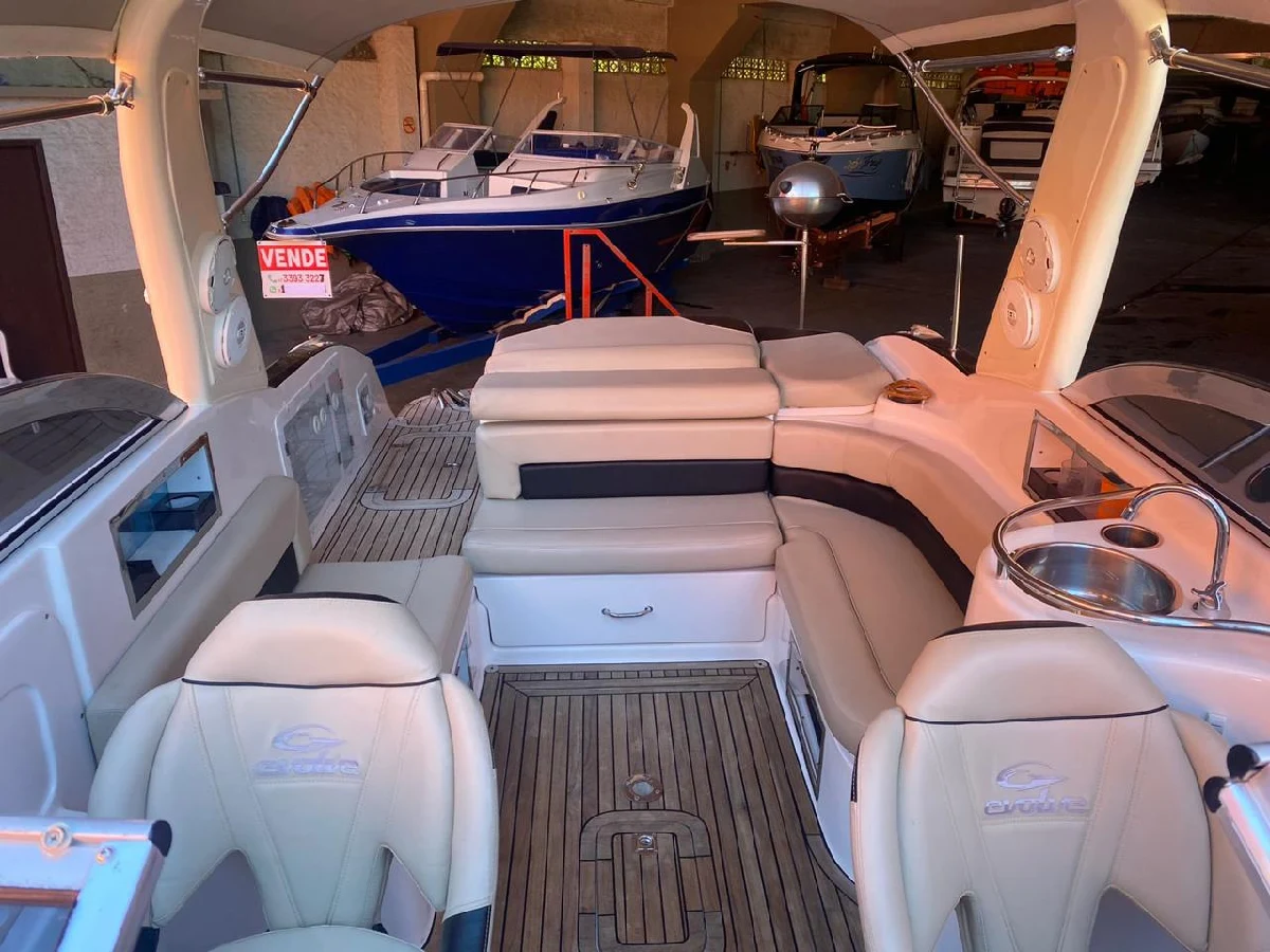 LANCHA EVOLUTION 265 PROA FECHADA - 26 PES ANO 2013 - EM EXCELENTE ESTADO. -CARRETA DE ENCALHE NOVA -MOTOR DE CENTRO MERCURY 5.0 265 hp -RABETA COM HÉLICE DUPLA -TAPETE NAUTICO MADEIRA - TEKA -MANCHE ELETRÔNICO -ÂNCORA ELÉTRICA -TRIM ELETRÔNICO -BOMBA DE PORÃO -BOMBA DE ÁGUA DOCE -DUAS BATERIAS -CAPA PROTETORA -CHUVEIRO DE POPA -PIA -SONAR/GPS -RÁDIO PIONNER BLUETOOTH -ALTO-FALANTES MARINIZADOS -BANHEIRO FECHADO -QUARTO FECHADO -RÁDIO COMUNICADOR -CHURRASQUEIRA EM INOX OBS: MUFLA TROCADA EM 2025. TODAS REVISOES FEITAS NA AUTORIZADA. SO NAVEGAR