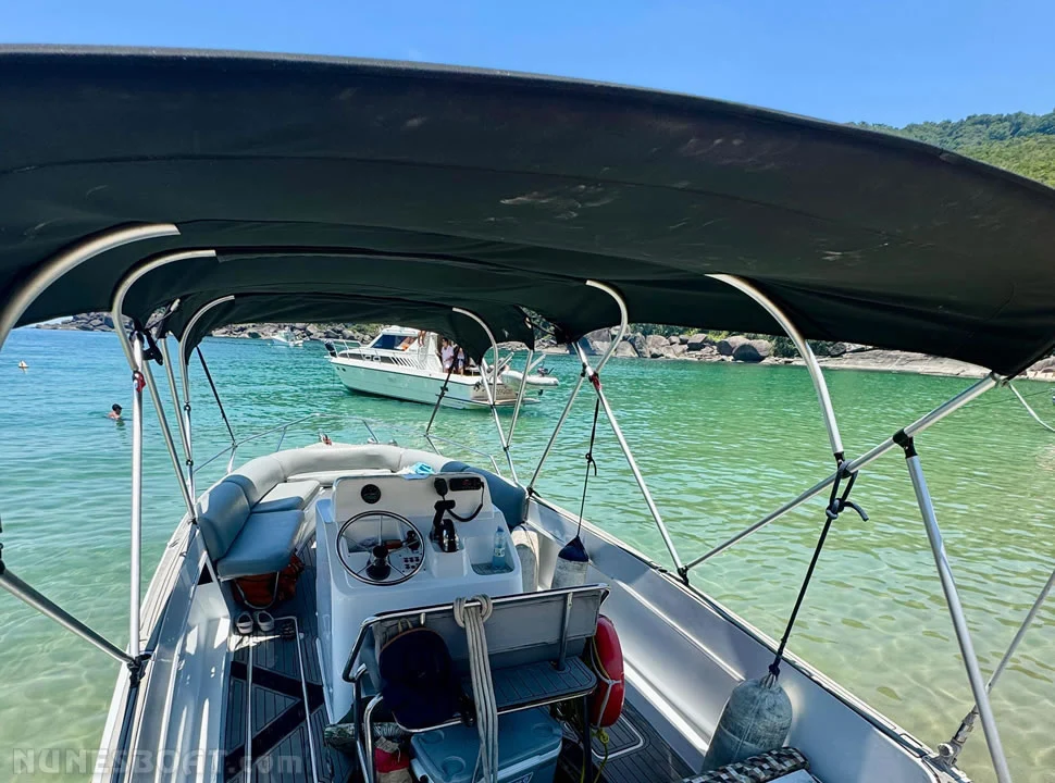 CÓD 2310 RIOSTAR 25: 1997, mercury 250hp, gasolina, 100hs de uso, 40 top e 28 cruzeiro, âncora, antena vhf, bateria, bomba de água doce, (2) bombas de porão, bússola, capota, carreta de encalhe, churrasqueira, chuveiro de popa, (14) coletes, (2) defensas, geleira, rádio vhf, sanitário elétrico, som, teca eva... F/c. Nunes (13)99706-0395
