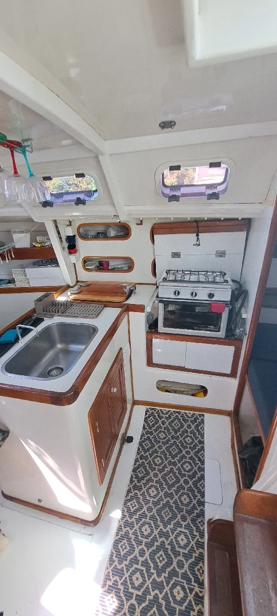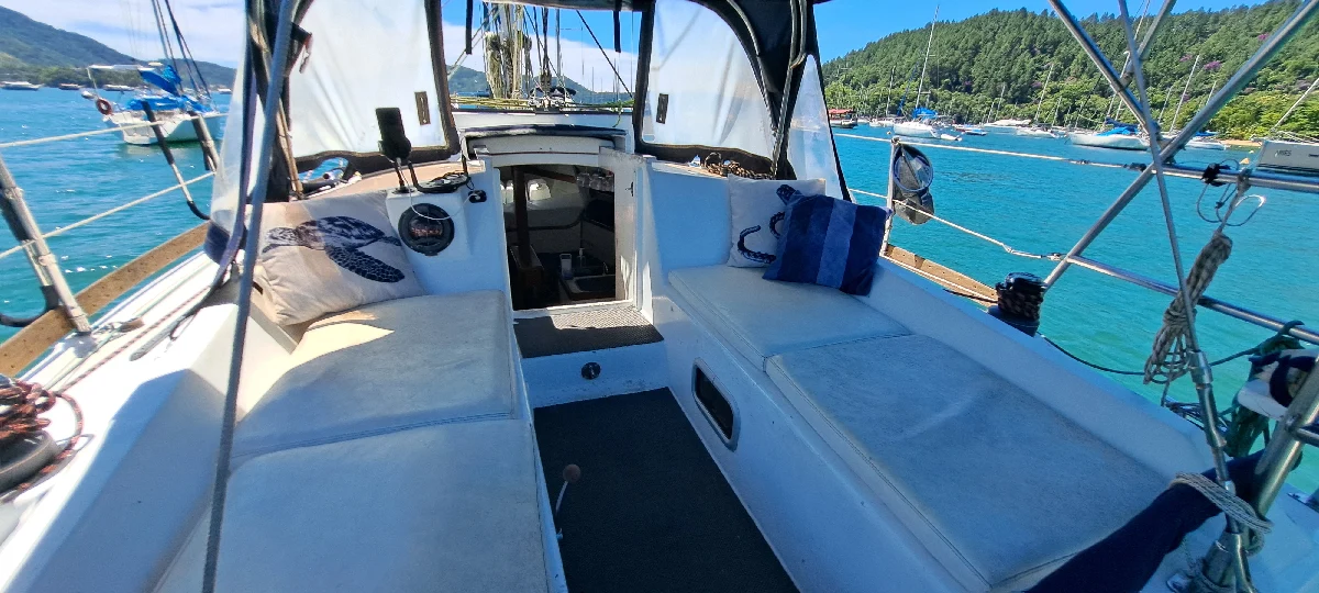 VELEIRO MULTICHINE 30 (2015) (Memorial Descritivo Março26) 1. PROJETO: Multichine 30' de Roberto Barros Yacht Design (Cabinho), 2015. Navega com 7 pessoas e pernoita com até 6. Além do cockpit, o interior conta com cama casal na proa, quarto de casal na popa, salão de refeição e cozinha com 2 camas de solteiro e banheiro grande para a categoria com paiol e casa de maquina. 2. MEDIDAS: 30 pés (9,25m) e boca de 3,54m 3. MATERIAL DO CASCO: Ply-glass, estruturado em compensado naval, laminado com mantas de fibra de vidro e resina epóxi. Laminação reforçada abaixo da linha d’água. 4. PINTURA DE FUNDO: Nova, Ago 2025 (Vinil Bronze + Antiencrustante Acquamarine, feito na Marina Kauai) 5. QUILHA: Quilha bulbo com 1.450kg e calado de 1,55m. 6. MASTREAÇÃO e VELAS: 3 velas: Genoa 1, 2 e Mestra da Northsail em boas condições. Enrolador de genoa. 2 catracas Harken 40 e 2 catracas Harken 16, com 2 manicacas. Estaiamento superdimensionado (Revisado 2022). Cabos em ótimo estado com kit reserva. 7. MOTOR: Yanmar 3YM30, 2015. Última revisão completa: Ago 2025, 1120 horas de uso (03/2026), tanque de combustível de 60 L, sistema de propulsão pé-de-galinha com cana de leme. 8. ANCORAGEM: Ancora: Rocna de 10kg (Reformada em 2025) com 50m de corrente + 50m de cabo. Guincho elétrico de ancora LEWMAR 1000W (Revisado em 2025). Cabos para amarração em marina pela popa. 9. ELÉTRICA: Painéis, chave seletora e disjuntores Bluesea, todos os cabos de energia estanhados Ocean Brazil, banco de baterias com 2 baterias estacionárias Moura 150Ah de serviço (2025) e 1 bateria de partida Moura 70Ah para motor. Placa solar UP285W e controlador solar MPPT 2440. Inversor Promariner True Power 2000w onda senoidal pura (2019) para conexão em marina, além de transformador 220-110v (2019) e inversor pequeno 110v de 200W para uso rotineiro. Ar-condicionado Zephyr 5000btu (2019) que necessita revisão. 10. INTERIOR: Interior todo acabado em compensado naval com fórmica branca e gelcoat, mesa de centro em cedro, mesa de suporte móvel também em cedro, estofamento novo e almofadas. Três ventiladores. Iluminação completa com 7 luminárias em led embutidas, sendo 4 com opção de luz vermelha, 4 luminárias móveis, seis tomadas 12V usb com entrada dupla de carregamento. Iluminação de navegação e deck para manobras noturnas. 11. ELETRÔNICA: Rádio VHF Uniden UM380, Profundímetro sonar e fishfinder Garmin Striker Vivid e Piloto Automático Sinrad TP22. 12. HIDRÁULICA: 300L de água doce em 2 tanques + 4 tanques portáteis de 20L cada. Bomba pressurizadora de água doce com saída no chuveiro de popa e chuveiro no banheiro com boiler de 20L para água quente. Banheiro com vaso elétrico Ocean novo (2026), caixa de dejetos com válvula Y Jabsco não instalada e bomba de pedal manual na cozinha e no banheiro. 2 Bombas de porão manual no cockpit e no banheiro, além de 3 bombas de porão elétricas com automático. 13. COZINHA: Geladeira/Freezer 12V Elber, Fogão náutico a gás com 2 bocas e forno embutido. 14. GERAL: Gaiutas e vigias Lewmar, salvatagem completa para 10 pessoas, churrasqueira inox. Capotaria completa de 2024 com bimini, dog house, lazy jack, fechamentos laterais para dias chuvosos e cobertura extra para dias de muito sol. Targa completa com turco para bote de apoio. Suporte de motor de popa. Porta standup paddle de inox. Estofamento externo removível. Bote de apoio 2,30m inflável com remo e motor Mercure 3.3hp (2022). Valor = R$296.000 Contato Proprietário: Matheus (19 991695747)