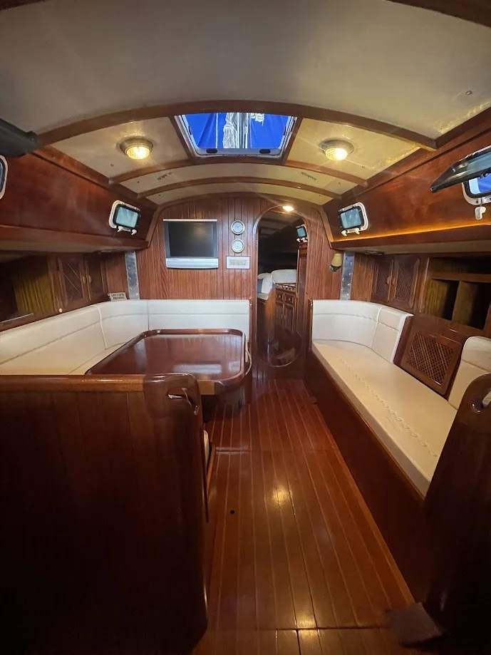 Veleiro de madeira, projetista German Frers, construído no estaleiro Barcosul em Porto Alegre. Motor a diesel 1.6 - 4 cilindros 50 CV, roda de leme, bimini, enrolador de genoa, bombas hidráulicas elétricas, instrumentação Raymarine, piloto automático, anemômetro, ecobatímetro, odômetro, bussola, GPS dragonfly 4, radio VHF Icon, catracas nautos, vaso sanitário elétrico Nautec, quilha removível, calado 0,90 m, mastreação alumíno, velas metras, genoa, balão, capas completas, salvavidas, 2 baterias, ancora Bruce.