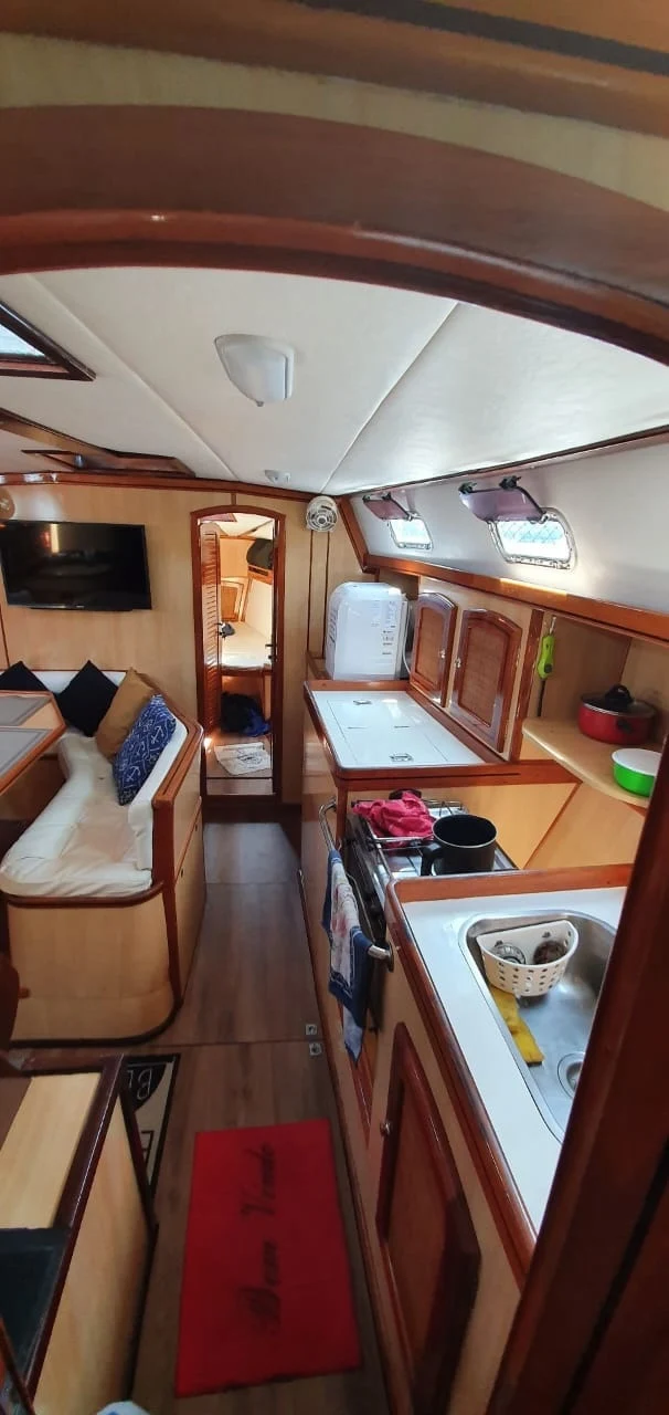 Veleiro MJ 38' Ano 2007 - Fabricante MJ Yachts. 38 pés de comprimento e 3,90m de boca. Pintura de fundo feita em agosto de 2019. Motor Yanmar 40 hp e hélice folding de 3 pás Gori. Velas Genoa, Tormentim, mestra Full Battens e Gennaker. Distribuição interna: cabine de proa (suíte) bem ampla com banheiro e box separado; duas cabines e um banheiro na popa; salão com mesa de navegação, TV 46", cozinha com fogão, geladeira e freezer e mesa para 6 pessoas (vira cama). Embarcação usada, no estado e sem garantia. Encontra-se em Rio de Janeiro, RJ. Tratar com Mara / WhatsApp = 82 99153 3096.