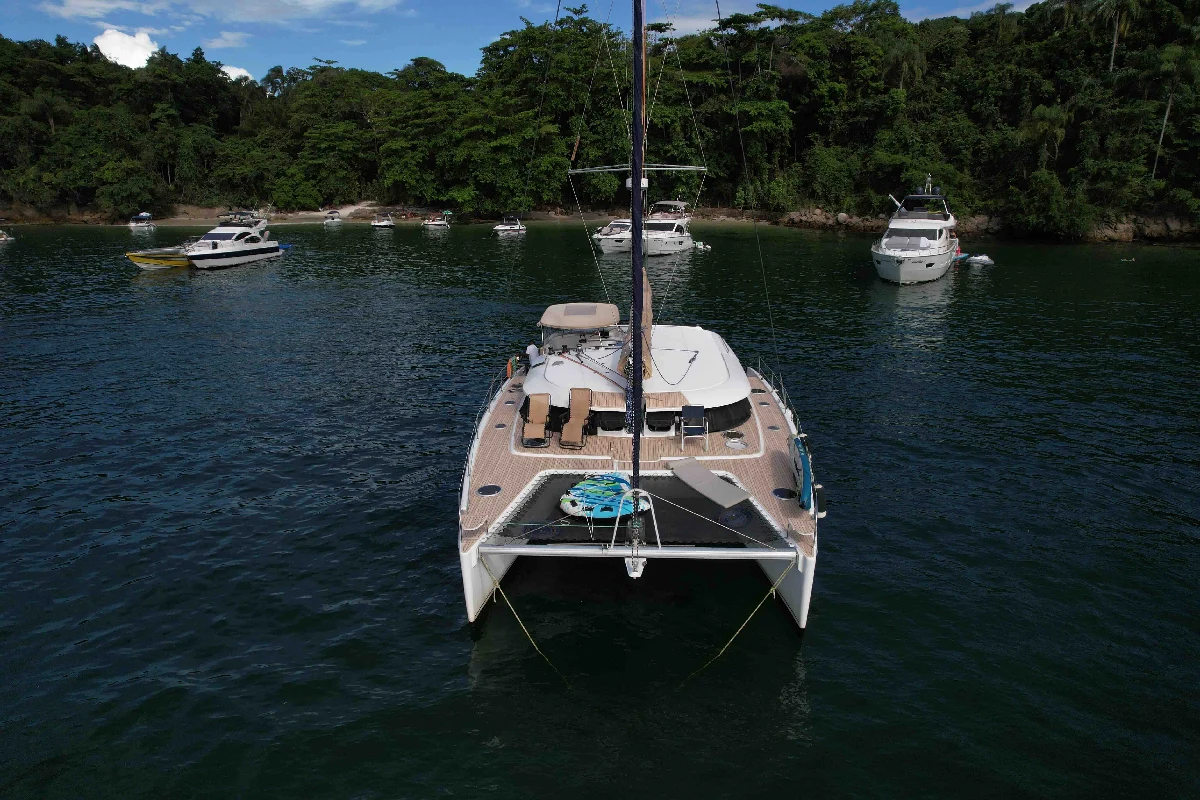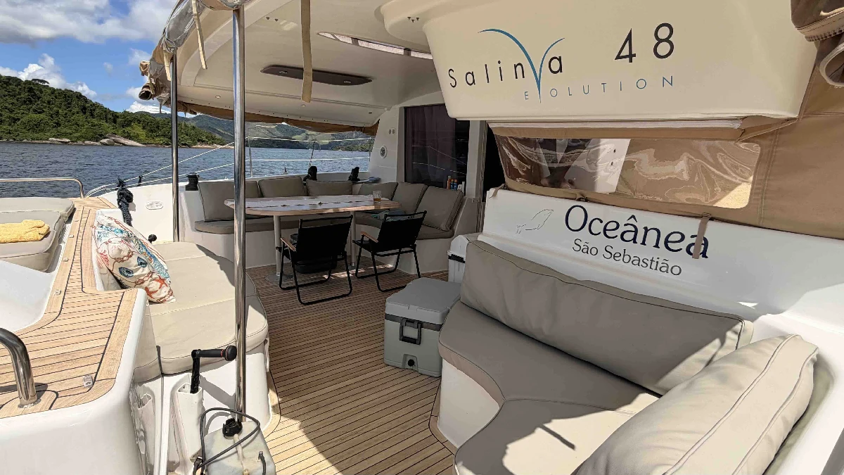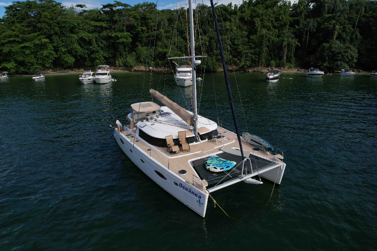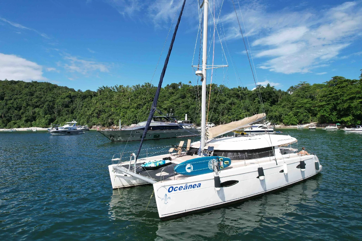 Imagine ter uma casa de praia — mas sem as limitações de uma casa. Uma casa que tem piscina em frente, que troca de vista sempre que você quiser, que te leva de Angra a Búzios, das ilhas do litoral fluminense ao arquipélago de Fernando de Noronha. Um catamarã não é apenas uma embarcação: é uma segunda residência que navega. Com quatro cabines amplas, banheiros completos, cozinha equipada, salão com vista panorâmica para o mar e espaços ao ar livre generosos, a Oceânea oferece um padrão de vida a bordo que rivaliza com os melhores apartamentos à beira-mar — com a vantagem de poder ancorar em praias desertas, enseadas paradisíacas e portos históricos ao redor do mundo. A Fountaine Pajot é hoje a maior e mais respeitada fabricante de catamarãs de vela do mundo. Com mais de 40 anos de história e presença em todos os oceanos do planeta, a marca francesa é sinônimo de engenharia de excelência e design atemporal. O Salina 48 é um dos seus maiores sucessos — um cruzeiro oceânico que conquistou prêmios internacionais e a admiração de velejadores experientes ao redor do globo. A Oceânea é um exemplar de 2011 em estado impecável. Após a aquisição, foram investidos mais de R$ 600 mil em acessórios e melhorias, renovando por completo todos os sistemas, acabamentos e equipamentos. O resultado é um barco que combina a solidez de um catamarã experiente com a modernidade de uma embarcação praticamente nova — pronto para zarpar.