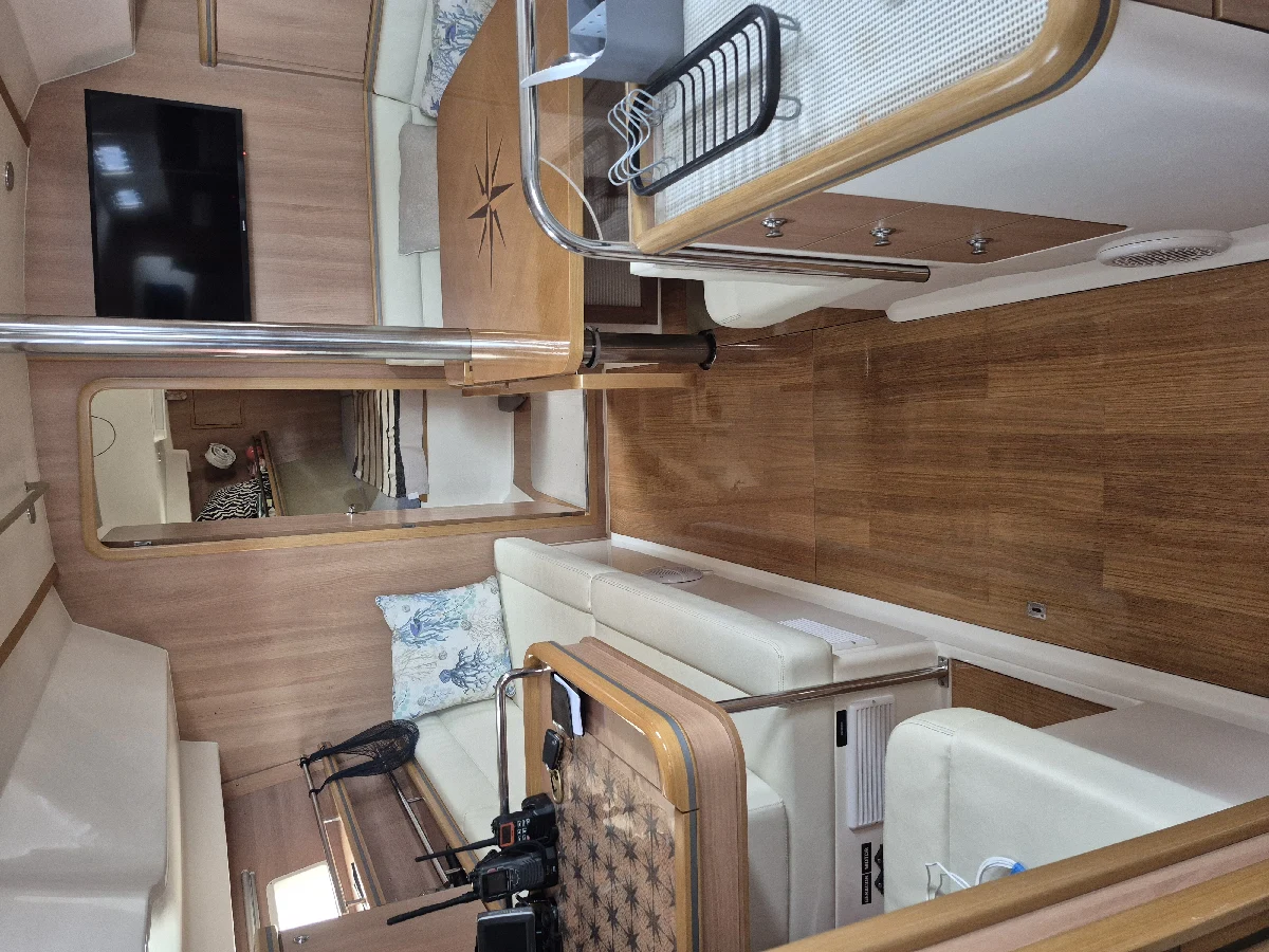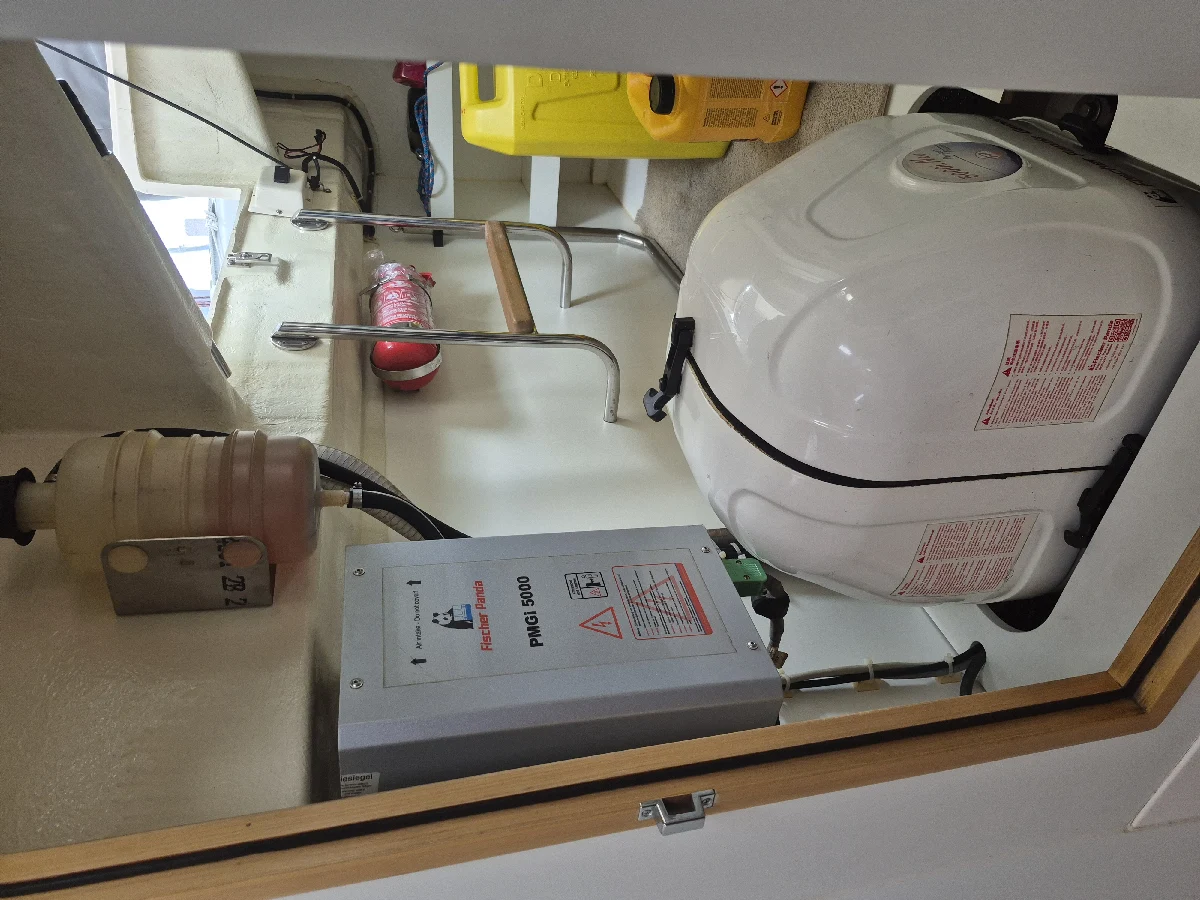 Vendo Veleiro Delta 41 versão cruzeiro Nao aceito troca por outros bens. Descritivo O barco tem: -Ancora Bruce de 15 kg de inox com 40 m de corrente e 30 de cabo -Guincho Quick 1000w com acionamento com botões na proa e botão no comando da popa -enrolador nautos número 2 -vela genoa auto cambante drakon -vela mestra triradial drakon com 2 risos -mastro versao curto anodizado -quilha versão curta calado 1.75m -4 degraus para acesso ao mastro -12 stopers no comando, 1 stoper para a esteira no mastro e 1 stoper para o enrolador de genoa -uma catraca eletrica no comando e outra self manual ambas 44. -2 catracas self na genoa número 54 -2 desviadores duplos com trava para dois cabos com apoio direcionador em inox -sistema de travel na frente do bimini -instrumentos raymarine de vento e eco repetidos, piloto raymarine e ploter Garmin atual com carta navionics plus, bluetooth -radio vhf icon com apenas receptor AIS e radio repetidor externo -radio FM -tv de 32 pol smart sansung com cabo instalado para computador na mesa de navegação -ar condicionado 16000 btu webastos -micro-ondas em inox consul -Gerador panda 5000I inverter com modificação do sistema de bomba de água salgada -3 ventiladores sendo 1 TMC com velocidade controlada e 2 grafamo com 3 velocidades -2 sanitários elétricos sendo 1 TMC e outro jabsco -bomba de poceto manual com acionamento externo e uma eletrica com automático. Alarme de nivel muito alto do poceto -4 placas solares de 95 w com controlador victron mppt 100 I 30 com bluetooth -Monitor de energia victron -transformador, carregador, inversor Tecnomaster -painel elétrico Arieltek P-03 -4 baterias 105 de chumbo para consumo e uma de 70 start stop para motor, gerador catraca em bom estado -Tq de diesel de inox 150 l com indicador de nivel -3 tanques de fibra de água com capacidade total de 470 l , com 2 visores de acrilico cada, sendo que 2 possuem indicação de nivel -motor yanmar 54 hp com rabeta SD 60 e hélice fixa de 3 pas -sistem de drenagem dos banheiros com bombas diagrama jabsco -sistema de drenagem do compartimento do motor -geladeira com compressor e placa, divisórias internas e bandejas deslizantes. Sistema de exaustor do compartimento do compressor e com circulação interna da geladeira. Controle de temperatura digital. -2 botijoes de gas de 5 kg e fogão basculante Delta com 2 bocas e forno com bloqueador de gás -Targa com iluminação, alarme (com problema de contato), suporte para as placas, pau de carga para içamento de bote e motor com redução. -bimini com tecido acrílico com fechamento laterais e de fundo. Dog house com tecido acrílico e policarbonato nos visores com capa externa. Tecidos precisando de reposição daqui ha pouco Fornecerei 12 m de tecido acrílico novo no mesmo material usado. -sistem de salvatagem e extintores completos -paiol com prateleira, suporte de cabos e armário -3 defensas laterais -boia de apoio com cabo de retinida e facho homes -2 almofadas dos assentos dos bancos externos e um apoio para o sofá de bombordo -tecido reserva para futuro reparo de parte do sofá da sala. -suporte de copos e de papel toalha na cozinha -uma manicaca com suporte plástico para o guincho, uma sem suporte para as catracas de cima e uma com 2 suportes plásticos para as catracas da genoa. -2 sacos de cabos apoiados nas catracas de cima e 1 saco para cabos no pé do mastro -bote 2.8 zefir fundo rigido -2 bússolas plastimo com tampa sanfonada Venenosa pintada ha 11 meses em bom estado Motor e gerador revisados em novembro 2025. Motor com 1100 e gerador 400 (tive que trocar o painel do gerador e consegui um de um amigo. Hoje indica mais de 1000 mas tem 400h)