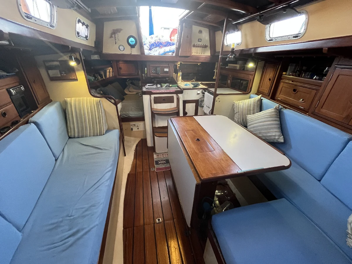 Motor Yanmar 2GM20 18Hp com 3290h de uso Troca dos bicos injetores em mar/2007 com 2530h Refrigeração água salgada direta com manopla para ligar sem bateria Transmissão com pé de galinha Eixo de 1 polegada com selo mecânico PSS e acoplamento flexível tipo Vetus Hélice Person de 3 pás 14D13 Alternador Balmar 90A com controlador inteligente ARS-III Alternador original de reserva Tanque diesel de aluminio com 90 litros Grande com 3 forras de rizo Grande reserva com 2 forras de rizo Genoa nº2 Tormentim de garruncho (com forra de riso) Genaker + Balão Mastreação Nautos com 2 pares de cruzeta Enrolador de genoa Nautos nº 2 Stay removível para tormentim Ferragens Nautos Boom preventer marca Hainson 2 catracas Wimag 40 self tailing para escotas genoa 1 catraca Wimag 16 e outra Lewmar 16 self tailing para adriças Pau de spinnaker alumínio 3,7m com trilho no mastro para altura de ponto Traveler de alumínio na cabine 2 jogos de stoppers triplos para adriças Leme de vento Navic da Plastimo Bimini, Dog house e targa em inox Guicho manual Simpsom Lawrence para corrente de 8mm (gipsy reserva para corrente 10mm) Âncora Bruce 10kg com 30m corrente calibrada + 60m cabo 16mm Âncora Bruce 7,5kg com 30m cabo 16mm Âncora Fortress (alumínio) com kit para lama e 30m de cabo com alma de chumbo Âncora Yamaha Danforth desmontável 80m de cabo de fundeio de 16mm (novo) Âncora de tempo tipo paraquedas - americana (nova) Sonda Horizon depth DS45 2 pilotos automáticos Autohelm ST-2000 Rádio VHF Horizon Explorer Standard Rádio SSB Icon IC-706 MKII com acoplador de antena AH-4 e antena long wire Placa de aterramento Dinaplate modelo 4012 Rádio portátil Aplelco VHF 510 (tem q trocar a bateria) Rádio Sony ICF-SW 7600G World Band Receiver Som automotivo Pionner 50W com 4 autofalantes 3 baterias 105Ah (última comprada em Jan-2023) Chave seletora Perko para 2 bancos Inversor West Marine Seavolt 700W 2 placas solares Kyocera 87W (cada) e controlador Conergy SCC 15 Eco Gerador eólico AirMarine (em reparo) Bomba de porão Rule 1500 Bomba de porão manual Whale no cockpit Bomba de pressurização Surflow para ducha banheiro - cockpit Bote inflável Bombard AX-2 de 2,30m WC Nautos manual Geladeira Norcolder 12V - 110V Lâmpadas em LED Fogão inox 2 bocas com forno 2 botijões de gás 2kg (pintura epoxi) 2 tanques de água incorporados ao casco em fibra Deraquene de 90l cada Pia cozinha água doce e salgada Ventilador Hella na cabine de proa e Caframo na sala