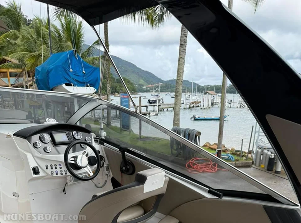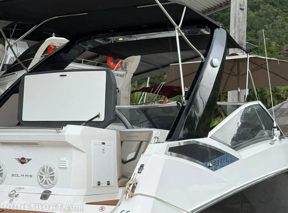 CÓD 2650 FS 265 SOLARIS: 2022, mercruiser 4.5 280hp, gasolina, 106hs de uso, 42 top e 30 cruzeiro, rabeta bravo three, âncora, antena de vhf, bateria, bomba de água doce, (2) bomba de porão, bússola, capota, carreta rodoviária galvanizada, churrasqueira, chuveiro de popa, (10) coletes, (2) defensas, direção hidráulica, farol, geleira, guincho elétrico, rádio vhf, sanitário elétrico, som, teca eva... F/c. Nunes (13)99706-0395
