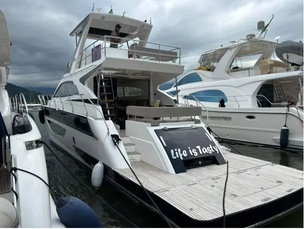 Lancha em bom estado estrutural, com casco e fibra íntegros, sem indícios de infiltração, convés firme e pintura antiencrustrante preservada. Sistemas principais sem sinais aparentes de falhas, bombas e equipamentos de segurança operantes, baterias em bom estado, rádio, geladeira, painel de comando, âncora e guincho funcionando. Pontos de atenção: motor testado porém não engatado (ausência do sistema LPS Volvo), hélice não inspecionado, luzes internas e painel geral inoperantes, freezer e gerador inoperantes e ar-condicionado desarmando. Necessita limpeza, revisão pontual e renovação de estofados.