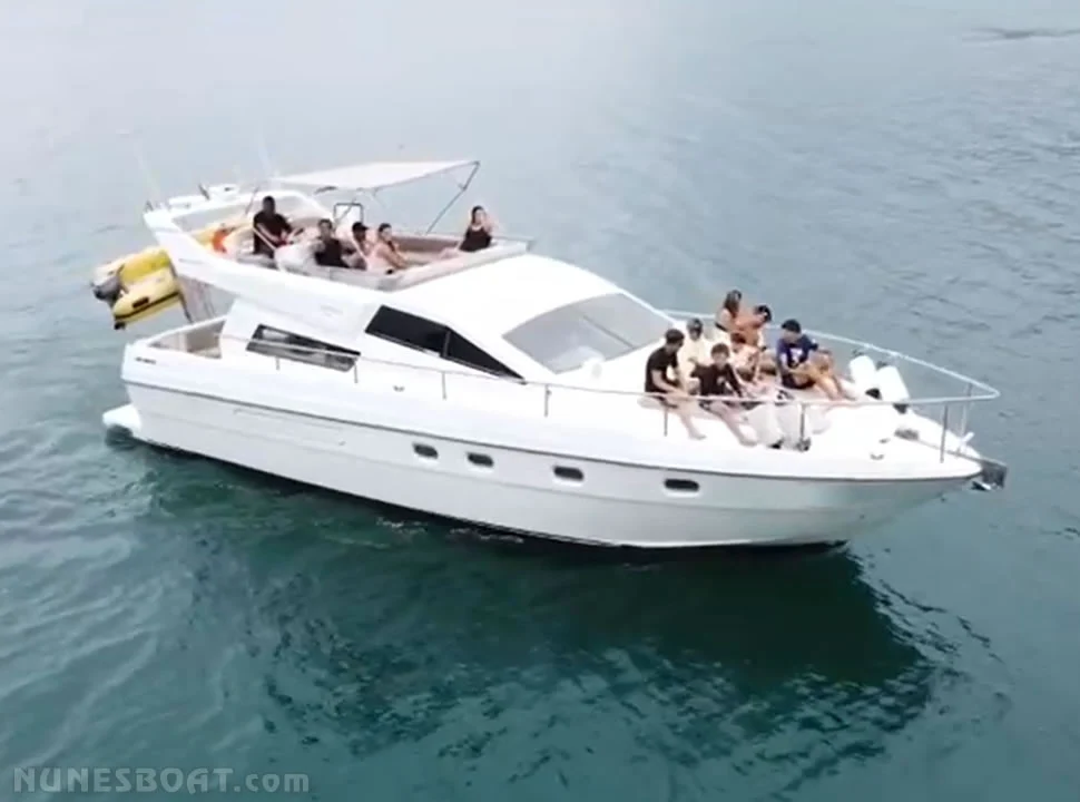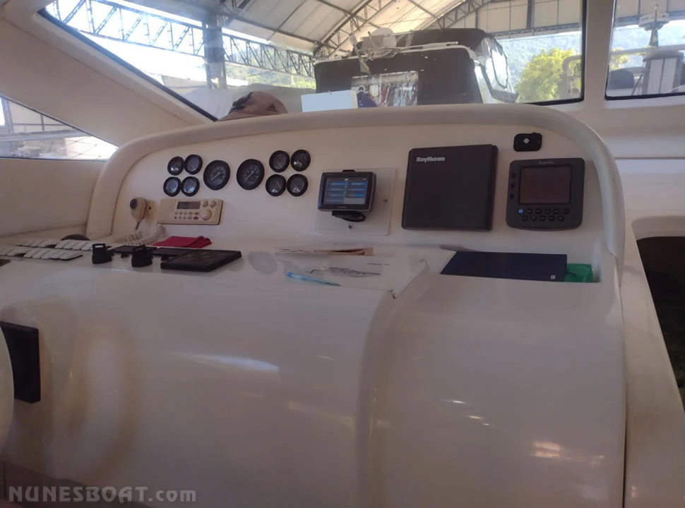 CÓD 7600 INTERMARINE 440: 1997, 2x vp tamd63 375hp, diesel, pé de galinha, 26 top e 16 cruzeiro, âncora, (2) ar condicionados, boiler, bomba de água doce, (4) bombas de porão, bote inflável, (2) bússolas, capota no fly, carregador de bateria, carreta de encalhe, churrasqueira, chuveiro de popa, (21) coletes, (4) defensas, direção hidráulica, farol, flap hidráulico, fogão elétrico, (2) geladeiras, gerador kohler, gps c/plotter, guincho elétrico, inversor, microondas, rádio vhf, sanitários elétrico, som, tv 32”, tomada de cais, (2) ventiladores... Att. Nunes (13)99706-0395 Tel/Zap