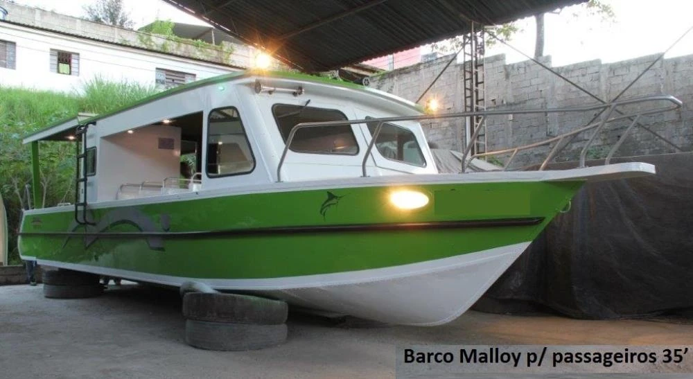 Barco Malloy p/ transporte de passageiros com 35 pés. Comprimento: 10,90 m / Boca: 3.20 m / Capacidade: 24 passageiros + 02 tripulantes. Desenvolvemos lanchas cabinadas, embarcações para patrulhamento, ambulância e outros projetos especiais. Sob encomenda. TRATAR COM MARA - MUNDONÁUTICO pelo WhatsApp 82 99153 3096. FOTOS ILUSTRATIVAS.