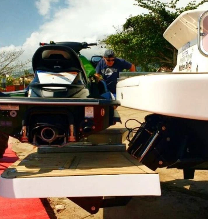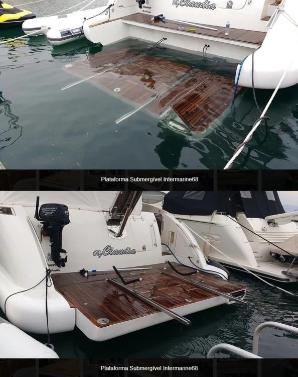Plataforma hidráulica submergível em aço inox 316 e fibra de vidro para lanchas a partir de 29 pés. Kit completo p/ seu funcionamento. Produção e assistência técnica nacional com peças de reposição. Superestrutura altamente reforçada em aço inox 316. A plataforma não pode ser instalada em embarcações com motores de popa. Atendemos todo o território nacional. TRATAR COM MARA - MUNDONÁUTICO pelo WhatsApp 82 99153 3096. FOTOS ILUSTRATIVAS.