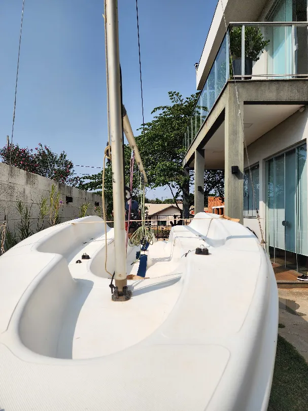 Flash 135 R$ 32.000 Categoria Veleiros Fabricante Craftec Condição Ano 2007 Comprimento 4,1 m | 13,4 pés Localização Brasil - Paraná - Sertaneja Publicado em 05/10/2025 Vendedor Leonardo Celular +55 43 99 106 7660 Entre em Contato Descrição O Flash 135 é um veleiro monocasco produzido pela Craftec. Ele é um veleiro super fácil de montar e desmontar, uma pessoa consegue facilmente erguer o mastro e o estaimento é bem simples. A vela buja serve de estai de proa e quando se ergue o mastro o veleiro fica estaiado de forma rápida. É um barco muito seguro, com flutuador de topo, enrolador da buja e suporte para motor de até 5hp. Fizemos muitas aventuras com esse barco nos rios e represas da região. Tem um valor afetivo muito grande para a família. Ciclo se encerrando, filhas crescendo, eu ficando velho, está na hora de servir outras pessoas. O barco esta guardado no seco, na garagem de nossa casa na beira do rio. DOCUMENTAÇÃO DO VELEIRO – Tudo em dia e registrado na marinha. Documento de transferência OK. CARRETA RODOVIÁRIA – Feita de ferro com documentação em dia. Foi feita uma adaptação que permite alongar a carreta cerca de 2m para facilitar a entrada em locais com pouca profundidade com beiras de rios. Dois pneus novos e um estepe. Sinaleiras de led a prova d’água e elétrica perfeita. MOTOR – Mercury 5hp. Super confiável, bateu pegou. Manutenções regulares para a segurança da família. CASCO – Não faz água, não tem osmose. Gel coat OK. O suporte do motor foi reforçado com duas chapas de aço inox por dentro e por fora do casco para evitar qualquer tipo de problema na integridade da fibra do veleiro. VELAS – Em muito bom estado, compradas novas a cerca de 3 anos atras. Escotas e moitões Nautos em bom estado. Enrolador da buja Nautos. LEME E BOLINA – em perfeito estado. Dois prolongadores da cana do leme, um 0km nunca usado, outro em uso. Enviar para um amigo Avaliar vendedor Download PDF Denunciar abuso Anúncios que você pode gostar BV 36 2016 R$ 927.000 Albatroz 27 +20 anos R$ 115.000 Sun Odyssey 409 2012 R$ 1.650.000 Catamarã BORA BORA 28 2000 R$ 120.000 Trinidad 37 +20 anos R$ 447.000 Microtonner 19 2006 R$ 37.000 BV 36 2016 R$ 927.000