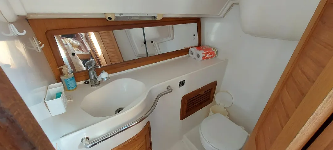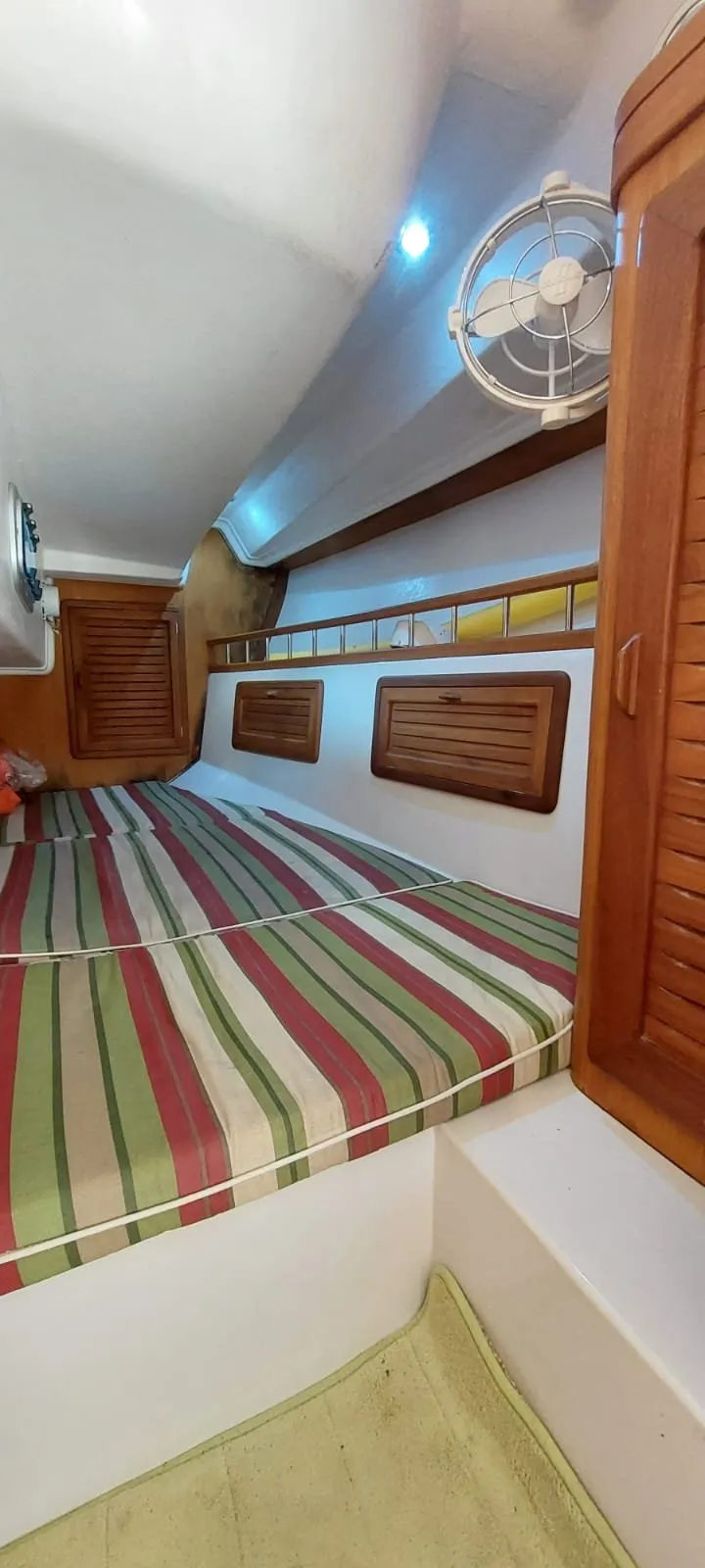 Skipper 30 R$ 435.000 Categoria Veleiros Fabricante Skipper Condição Ano 2010 Comprimento 9,1 m | 30,0 pés Localização Brasil - Rio de Janeiro - Rio de Janeiro Publicado em 04/10/2025 Vendedor Clovis Celular +55 21 99 818 9896 Telefone +55 21 99 818 9896 Entre em Contato Descrição Modelo: Skipper 30 Projeto : Nestor Volker Ano: 2010 Boca: 3,21m Calado: 1,60m Altura máxima da cabine: 1,85 m Tanque de agua: 230L Motorização Marca: Yanmar Modelo: 3YM20 (revisado com troca de óleo lub e filtros em julho/24); Transmissão: Rabeta Yanmar SD20 Velas: 01 mestra Elvstrom e 01 genoa de prolan 01 jogo de velas de kevlar (mestra e genoa) 01 balão simétrico (todas velas em bom estado) Eletrônicos / Instrumentos: Charter Plotter C90W Raymarine Bússola Tridata Raymarine I50 (profundidade, velocidade, temperatura água do mar) Estação de vento ST60 Piloto automático ST6002 / ST 4000 Rádio VHF Raymarine com DSC VHF Portátil com carregador Som marinizado com 4 alto falantes triaxiais Carregador de bateria inteligente 2024 Inversor 12V 1000W com tomadas por todo o barco Painel solar de 400W e controlador Epever mppt Comutador automático entre carregador de bateria e painel solar Banco de baterias com 02 estacionárias Moura de 105 AH e 01 Moura de 70AH para partida do motor Divisor de carga para os dois bancos de baterias Geladeira Italiana Boiler de água quente inox com água quente no banheiro e cozinha TV Led com suporte móvel para salão e camarote de proa e google TV Outros: Água doce pressurizada Ventiladores Cafrano nos camarotes e salão 03 extintores de incêndio na validade 02 bombas de porão sendo uma automática e outra manual Lazyjack, Bimini e Doghouse e emenda entre ambos Enrolador de genoa Gurupés aço inox retrátil para uso de balão assimétrico Burro telescópico Lançador de ancora em inox, com âncora Rocna e corrente de 50 metros Guincho elétrico Ancora adicional Danforth 10kg 04 catracas Harken com self tailing sendo as duas da genoa com duas velocidades Fogão aço inox com duas bocas e forno Roda de leme dobrável Mesa de cockpit dobrável Chuveirinho de água doce no cockpit Churrasqueira redonda grande em aço inox Salvatagem completa Estofados em bom estado Targa com suporte para bote Pintura de fundo com antiincrustante realizada em out/2024 Reservatórios: 02 tanques de água doce em inox com 230L Tanque de diesel inox com 80L Enviar para um amigo Avaliar vendedor Download PDF Denunciar abuso Anúncios que você pode gostar BV 36 2016 R$ 927.000 Albatroz 27 +20 anos R$ 115.000 Sun Odyssey 409 2012 R$ 1.650.000 Catamarã BORA BORA 28 2000 R$ 120.000 Trinidad 37 +20 anos R$ 447.000 Microtonner 19 2006 R$ 37.000 BV 36 2016 R$ 927.000