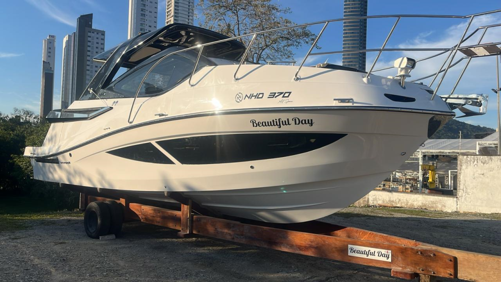NHD 370 ALL SPACE R$ 1.550.000 Categoria Lanchas e Iates Fabricante NHD Boats Condição Ano 2024 Comprimento 11,3 m | 37,0 pés Localização Brasil - Santa Catarina - Balneario Camboriu Publicado em 24/07/2025 Revenda Márcio Celular +55 47 99 982 4169 Entre em Contato Descrição Lancha NHD 370 All SPACE ano 2024 equipada com: Parelha Mercruiser 300 hp AXIUS (Joystick) com apenas 41 horas, Carreta rodo encalhe, Ombrellone, Mesa de cabine, Mesa de teka no cockpit, Microondas com inversor, Som com alto falantes marinizados, GPS com sonda 9 polegadas, Piso em teka sintética, Fechamento total do teto rígido, Rádio VHF, Farol c/ controle remoto, Flaps, Guincho elétrico com âncora e corrente, Placa na geleira, Refrigerador, Enxoval, TV, Carregador de bateria com cabo de cais, Sistema de extinção de incêndio á distância, Boiler (água quente) Gerador, Ar condicionado, Enviar para um amigo Avaliar vendedor Download PDF Denunciar abuso Anúncios que você pode gostar Cougar Intermarine 42 +20 anos R$ 370.000 Magnum 230 2008 R$ 110.000 SEDNA 335 2006 R$ 540.000 Ferretti 380 2003 R$ 900.000 Singular 290 2012 R$ 280.000 Hawk 32 1997 R$ 220.000 Skipper 30 2010 R$ 435.000