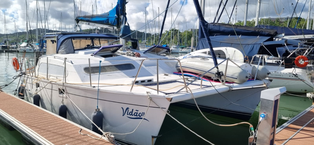 Catamarã Jacaré 28 R$ 500.000 Categoria Veleiros Fabricante Vela Oceânica Condição Ano 2008 Comprimento 8,5 m | 28,0 pés Localização Brasil - Bahia - Salvador Publicado em 17/07/2025 Revenda Claudio Celular +55 71 99 105 6391 Telefone +55 71 99 139 1691 Entre em Contato Descrição Projeto do Australiano Roger Simpson. Comprimento 28 pés ( 8,30 m) - Boca: 4,95 m Calado: 0,75 m Deslocamento: 2.370 kg - Peso: 2.100 kg Área Vélica: 50,42 m - Altura da Cabine: 1,90 m Reservatório de água doce: 160 Lt - Reservatório Diesel: 40 Lt Estaleiro: Jacaré Marine - Cabedelo - Paraíba Material do casco: Fiberglass e Divinycell Motor de Centro Yanhmar 2 YM15 - dois cilindros - 15 hp - Diesel (instalado a boreste) Pé de Galinha - Eixo 1 Hélice - 14 x 14 DVL - três pás Revisões do motor, desde 2016, feitas pela REFRIAUTOS - Autorizada Yanhmar em Salvador Seguro Total 26/04/2025 a 26/04/2026 feito pela Essor Seguros S.A. Velas e acessórios: - Mestra North Sails Brasil - Área 23,66 - Genoa - North Sails Brasil - Área 26,76 m2- Furling Genoa NPC Radian NorDac NDR 5.2 - Capa de proteção para vela mestra - Enrolador de Genoa - ALADO - Catraca Nautos = duas unidades Motor de popa Mercury 3.3 hp - 2 T - Bote inflável Renar 2.4 F Fundo fibra de vidro Detalhes completos no link abaixo: file:///G:/Meu%20Drive/___Capta%C3%A7%C3%A3o%20de%20Embarca%C3%A7%C3%B5es/Cat%20Vidao/Vid%C3%A3o%20-%2004%202025.pdf Enviar para um amigo Avaliar vendedor Download PDF Denunciar abuso Anúncios que você pode gostar Skipper 30 2010 R$ 435.000 Skipper 30 2010 R$ 435.000 Cougar Intermarine 42 +20 anos R$ 370.000 Magnum 230 2008 R$ 110.000 SEDNA 335 2006 R$ 540.000 Ferretti 380 2003 R$ 900.000 Singular 290 2012 R$ 280.000